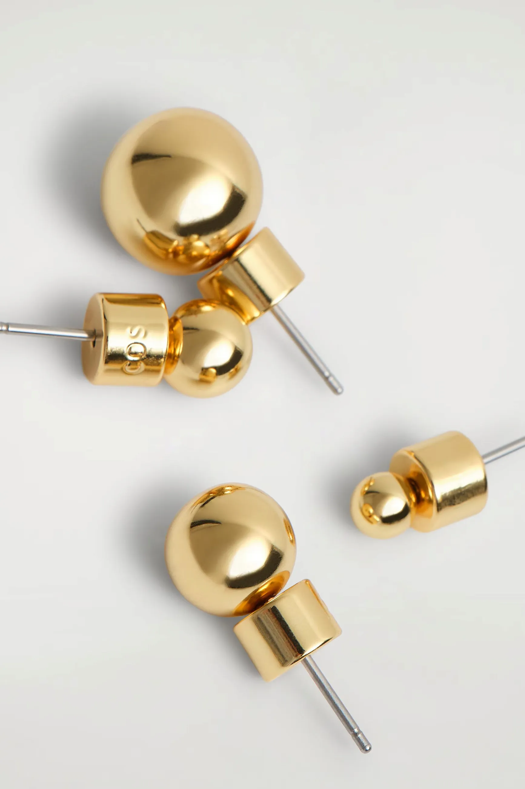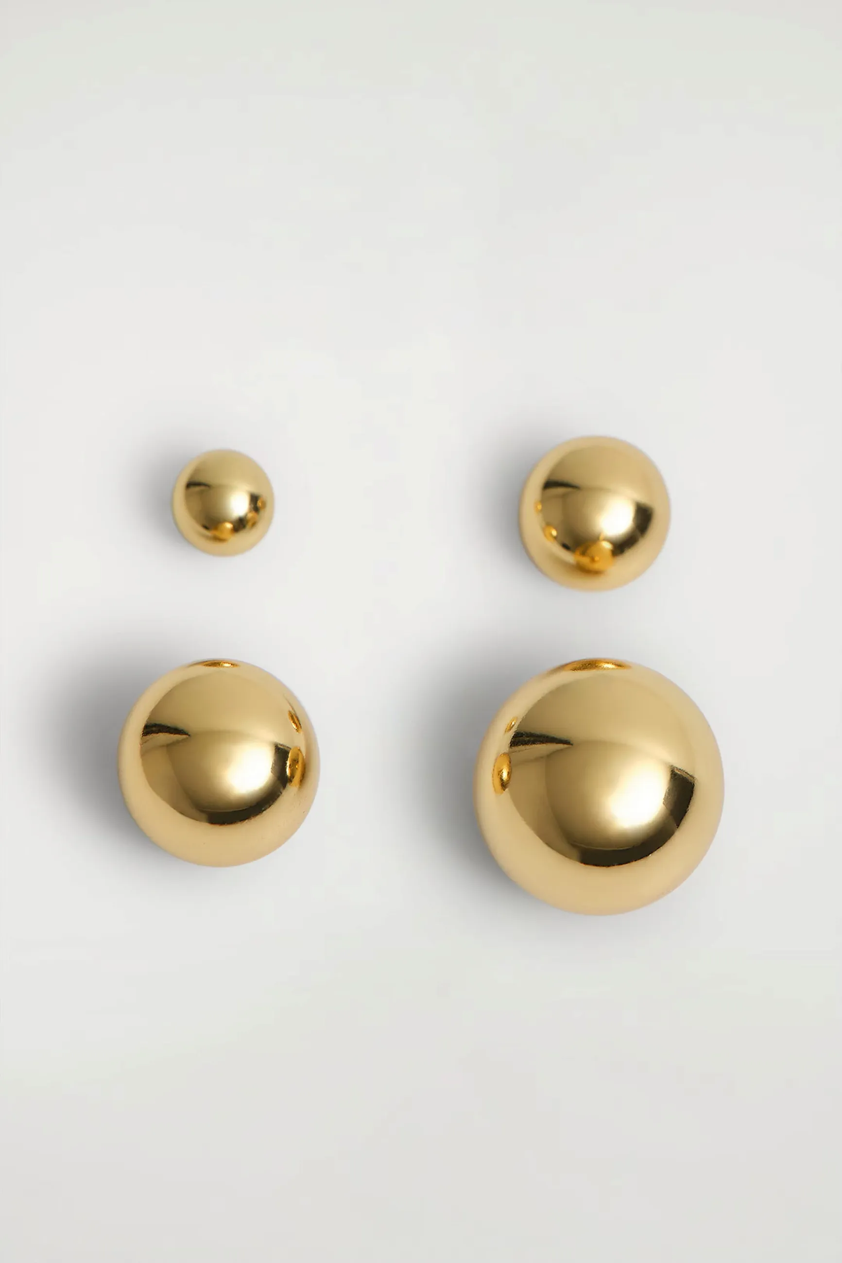 В этом сезоне команда ювелирных домов COS представляет динамичный подход к дизайну аксессуаров. Серьги в этом комплекте изготовлены из переработанной латуни с позолотой. Он включает четыре круглые серьги-гвоздика разных размеров.
