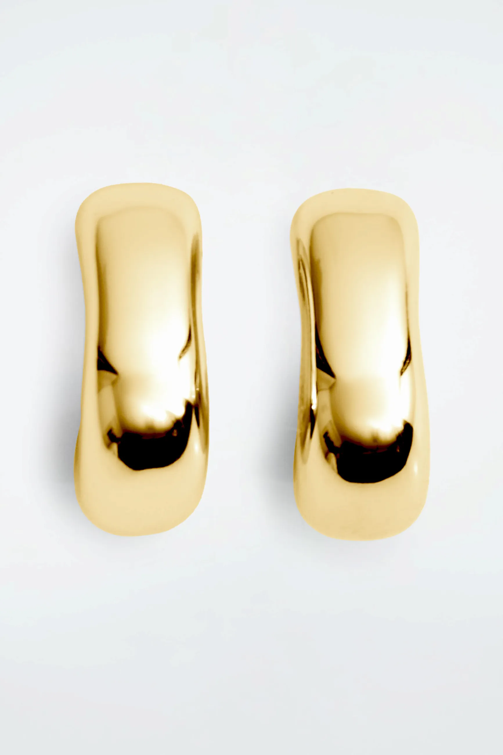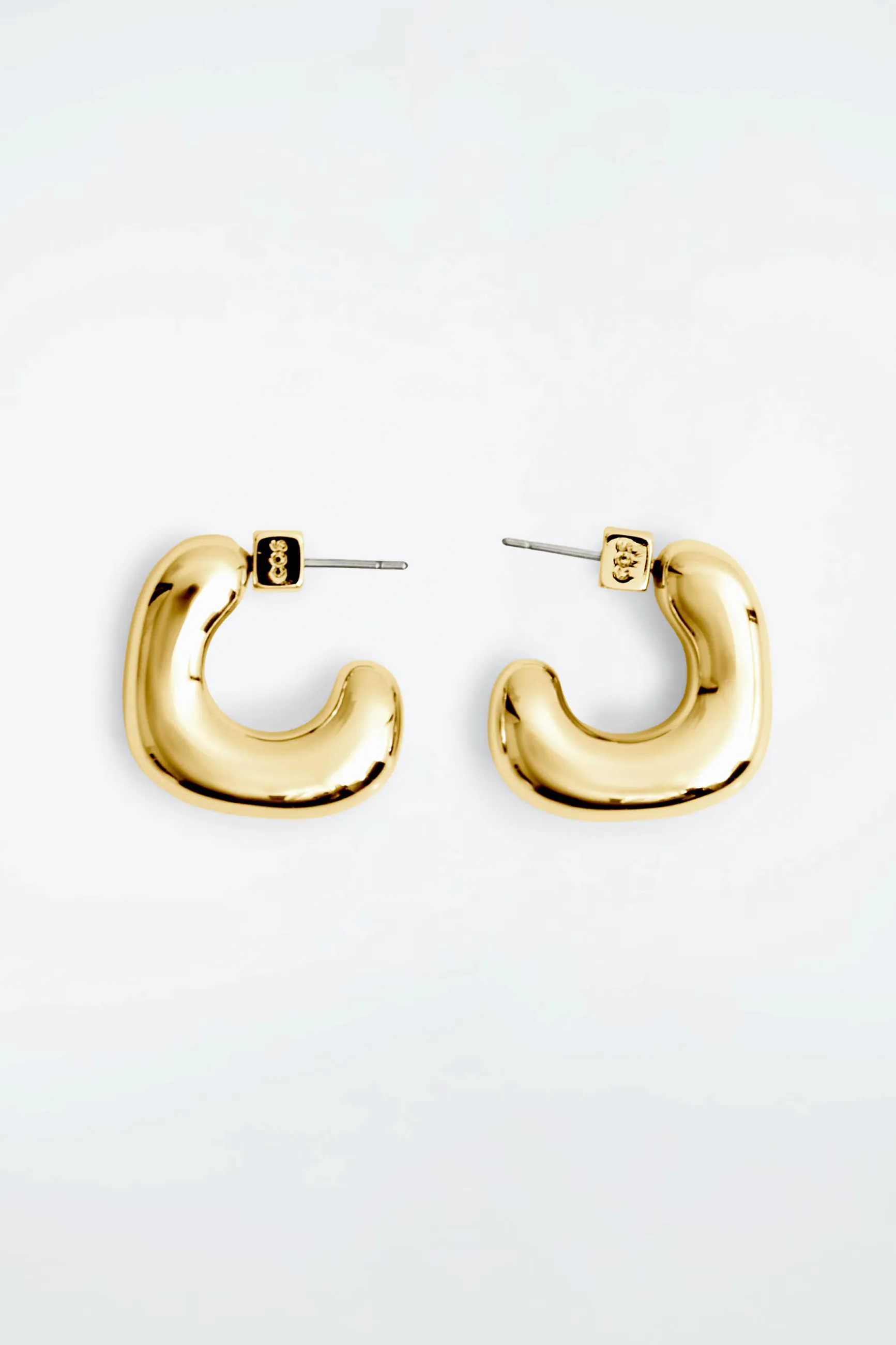 Эти простые, но яркие серьги-кольца изготовлены из позолоченной переработанной латуни, отполированной до блеска и имеющей форму квадрата. Они станут изысканным завершающим штрихом любого образа.
