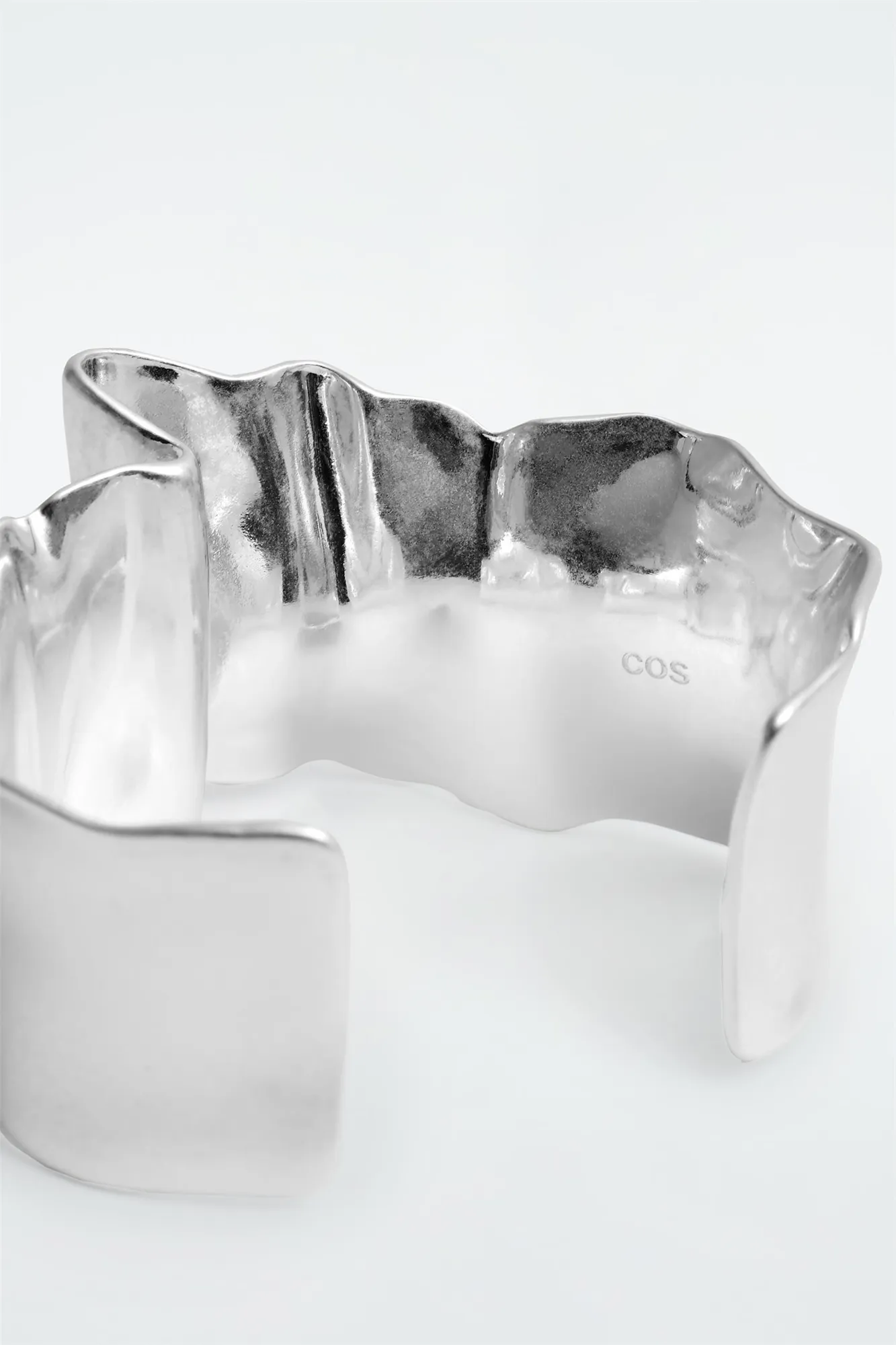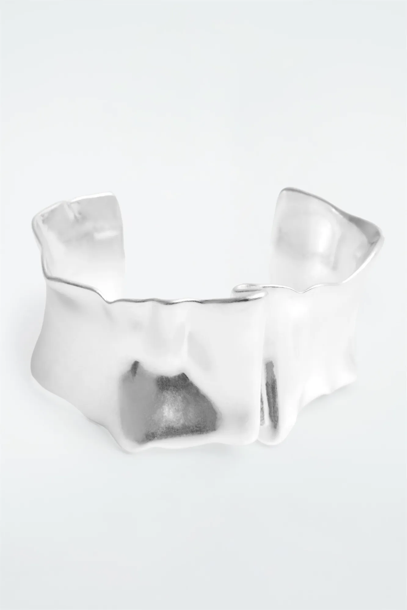 В коллекции украшений этого сезона преобладают органические формы и современные фактуры. Этот браслет из переработанной латуни серебристого цвета искусно выполнен в волнообразной форме и удобно обхватывает запястье. Также имеет легкий матовый эффект.