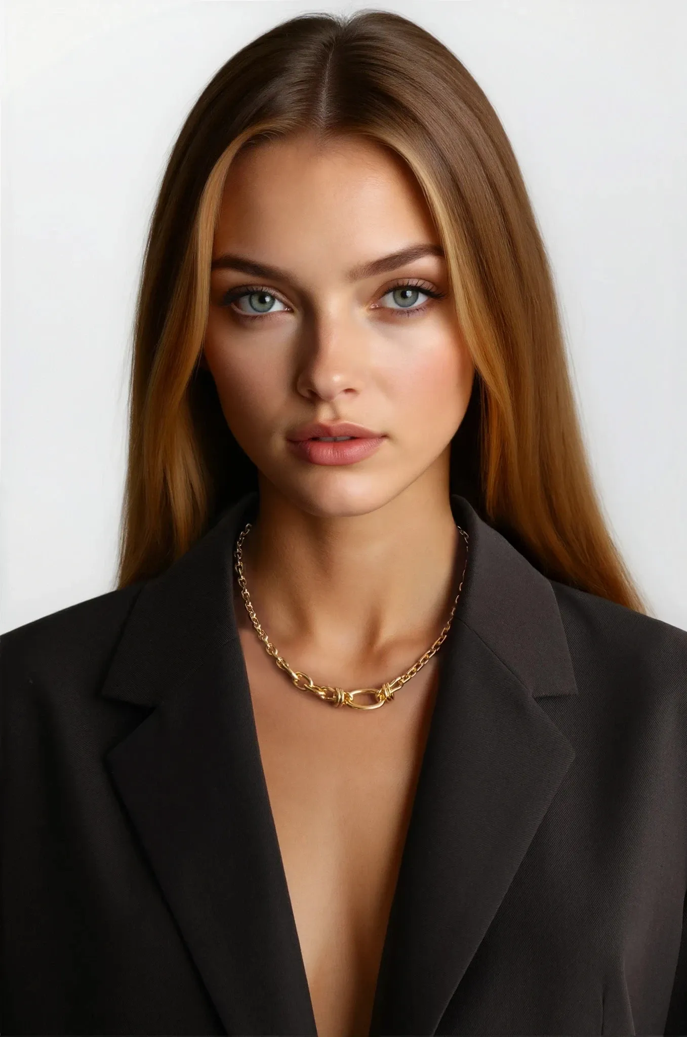 Это современное ожерелье добавит изюминку вашему повседневному гардеробу. Изготовлено из переработанной латуни с позолотой и асимметричными звеньями.