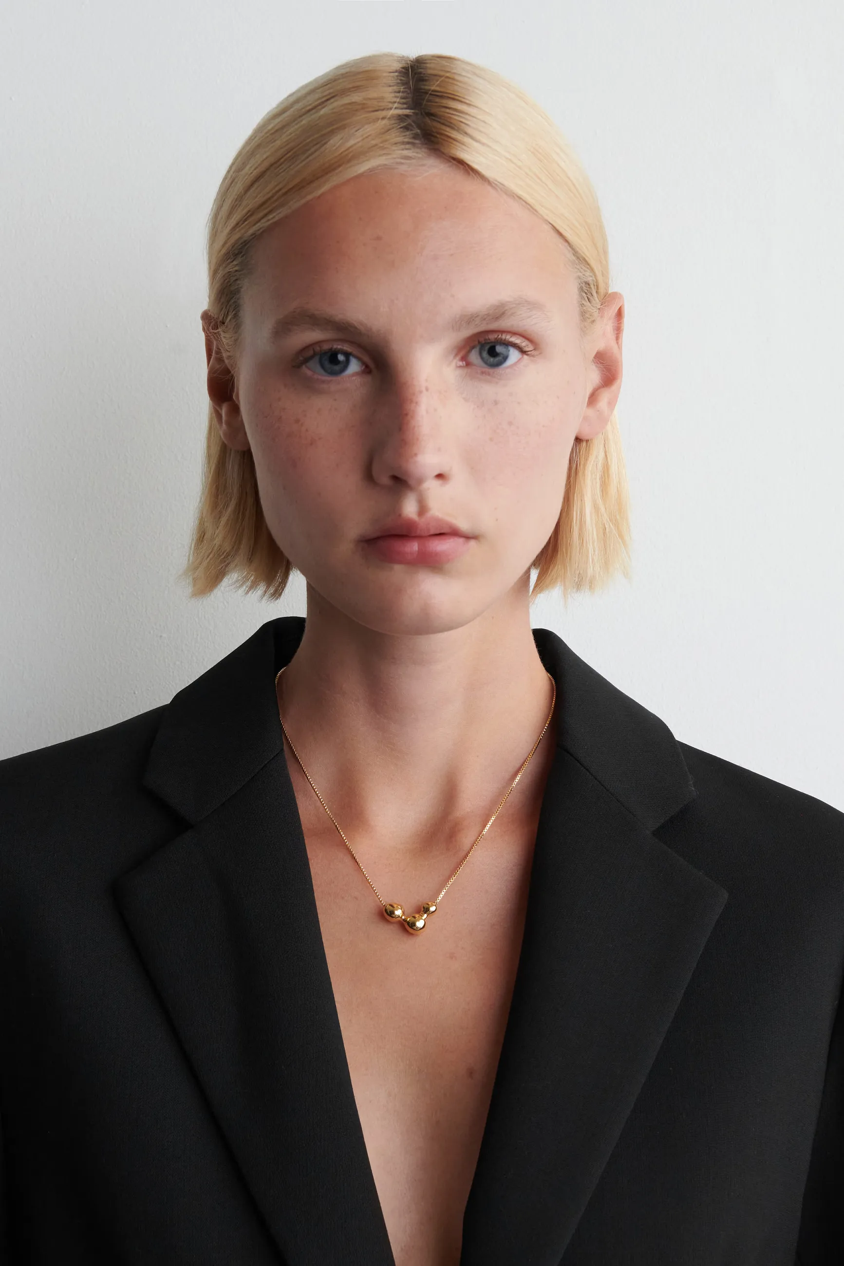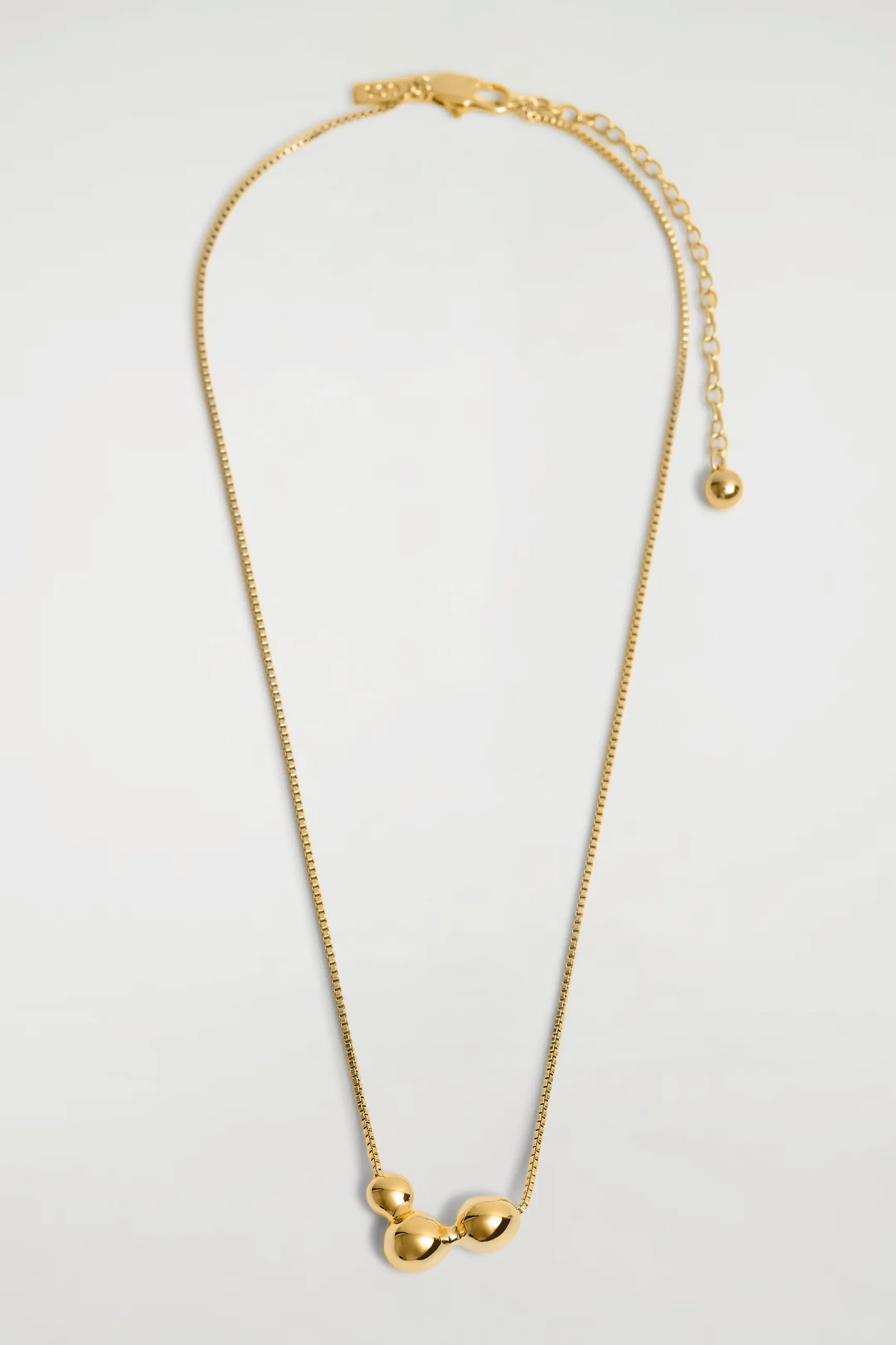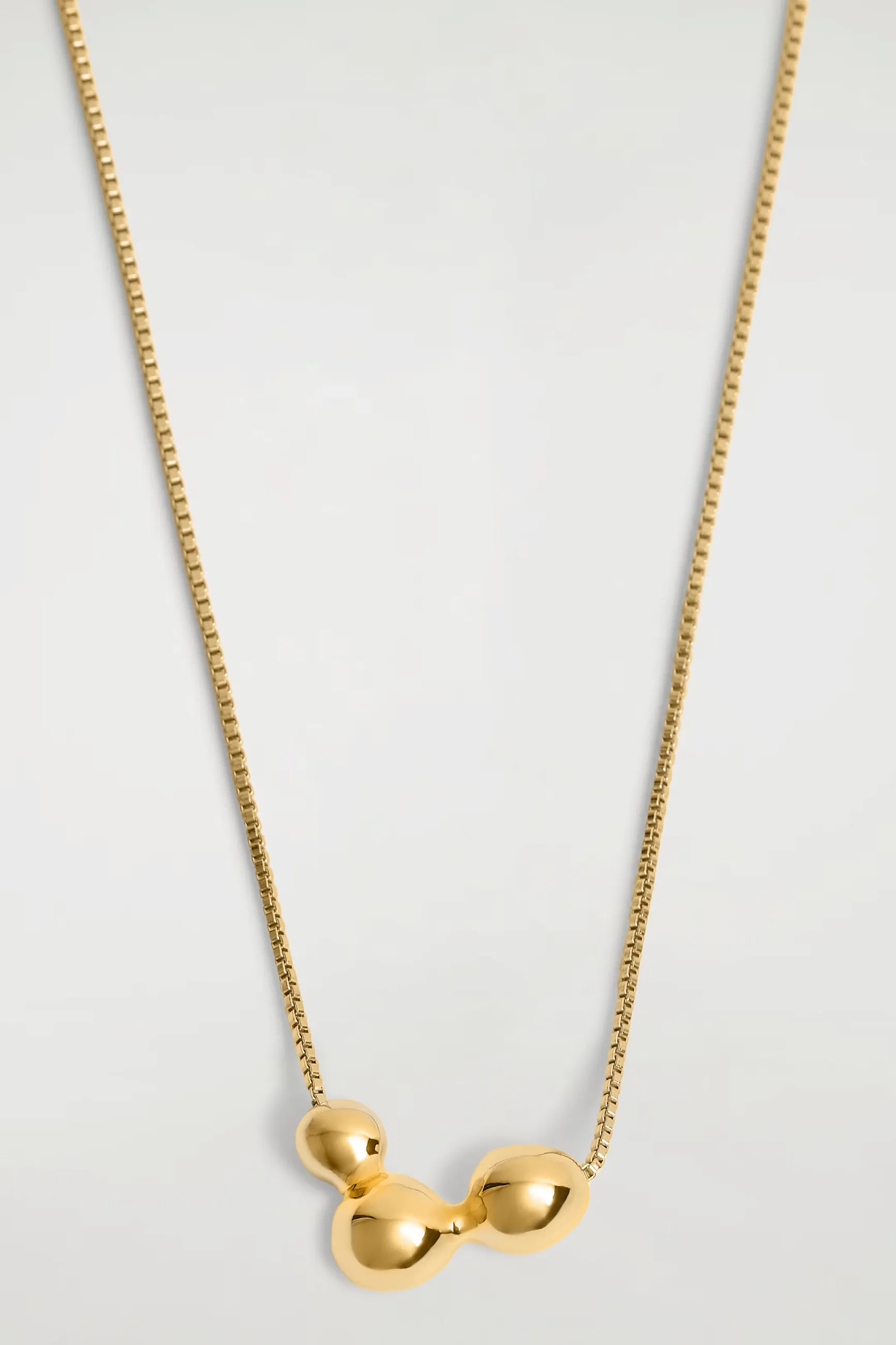 Это ожерелье, вдохновлённое органическими формами, украшено подвеской, напоминающей расплавленные пузырьки воздуха. Позолота придаёт аксессуару стойкий блеск. Благодаря регулируемой длине его можно сочетать с другими украшениями.