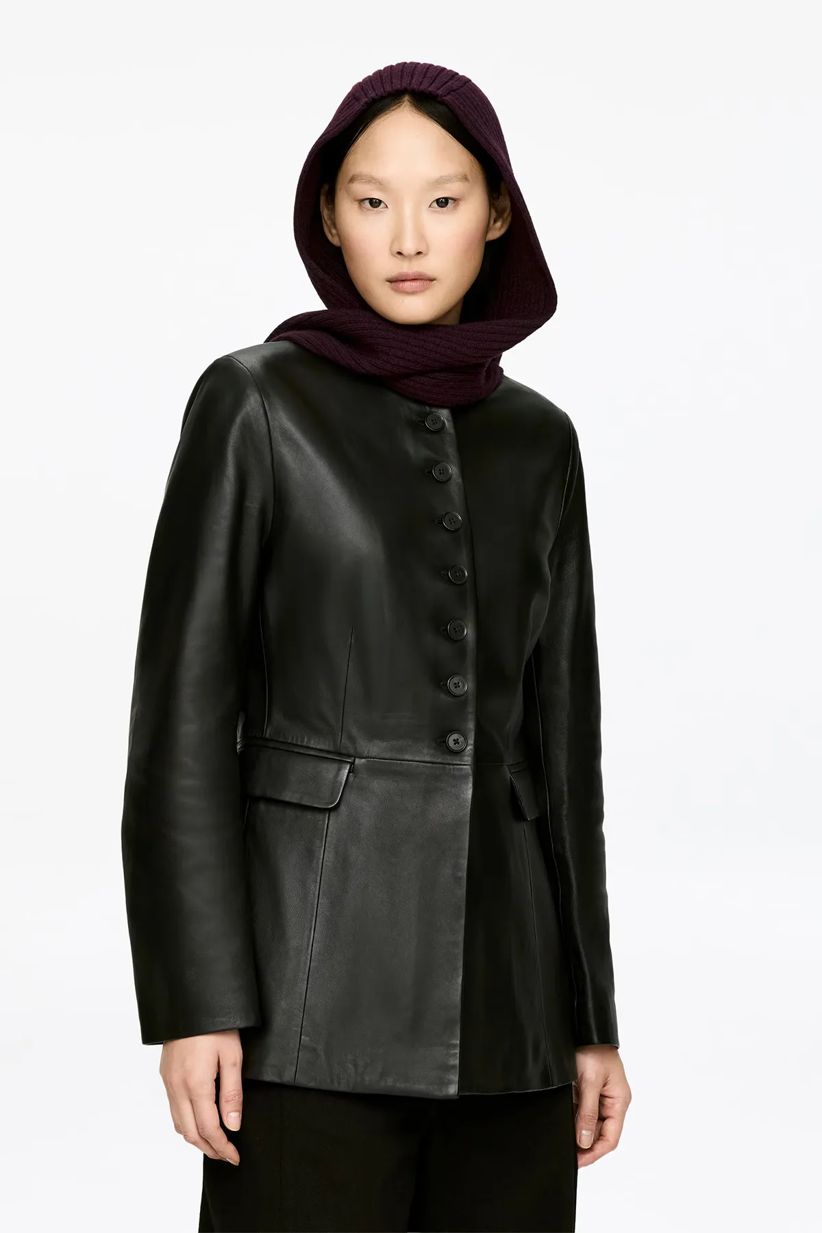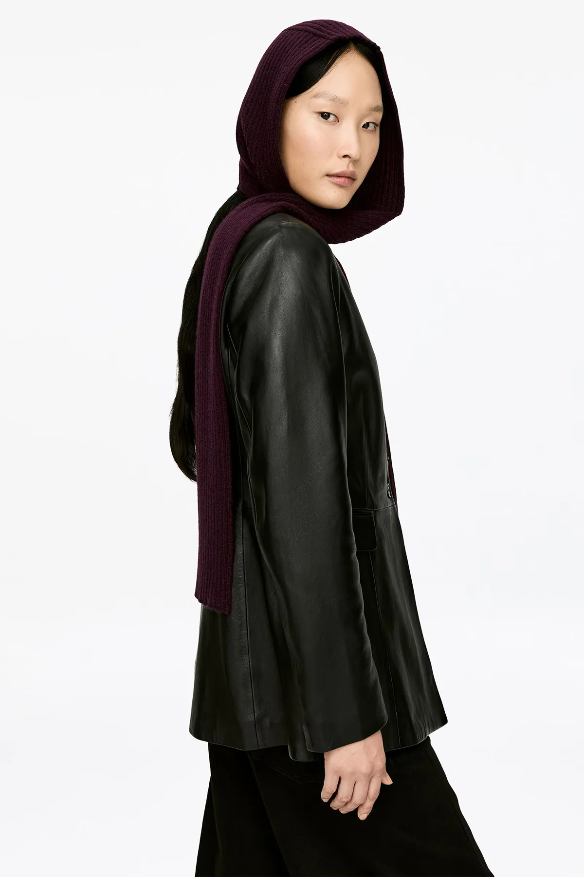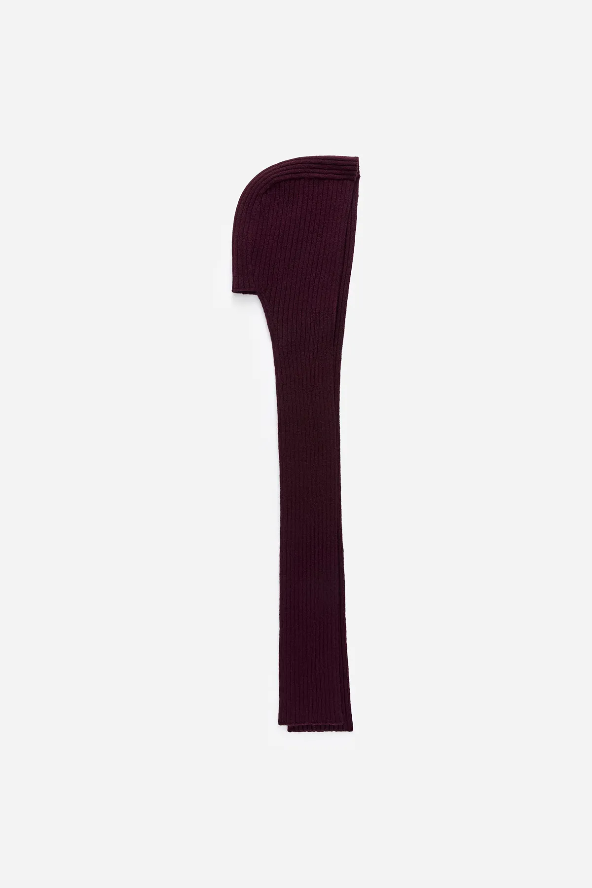 Вязаный шерстяной капор в рубчик с длинными завязками, обеспечивающими дополнительное тепло и возможности для создания различных образов.