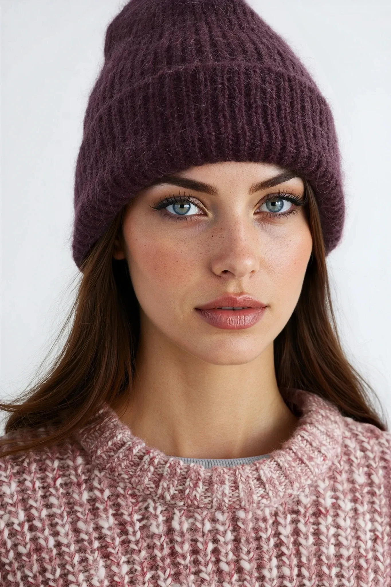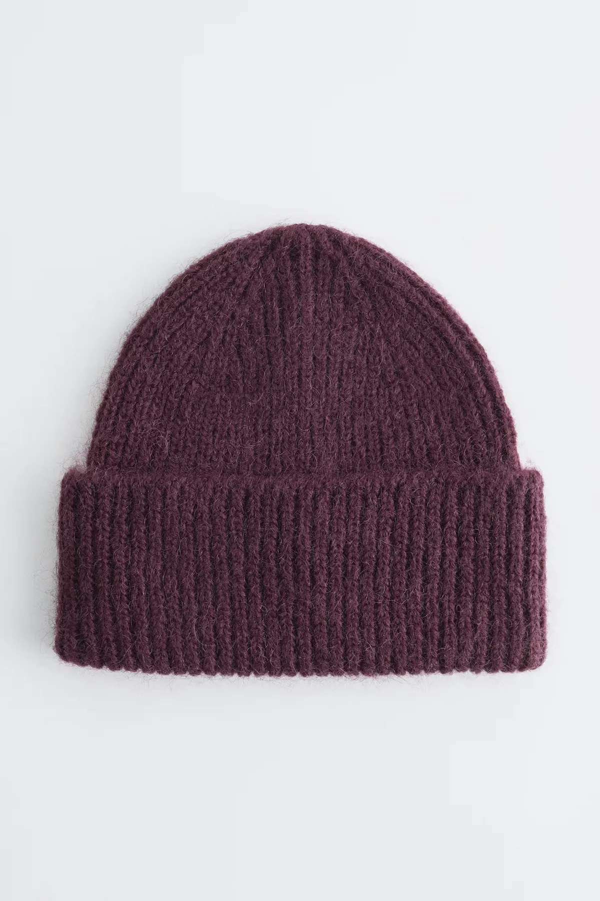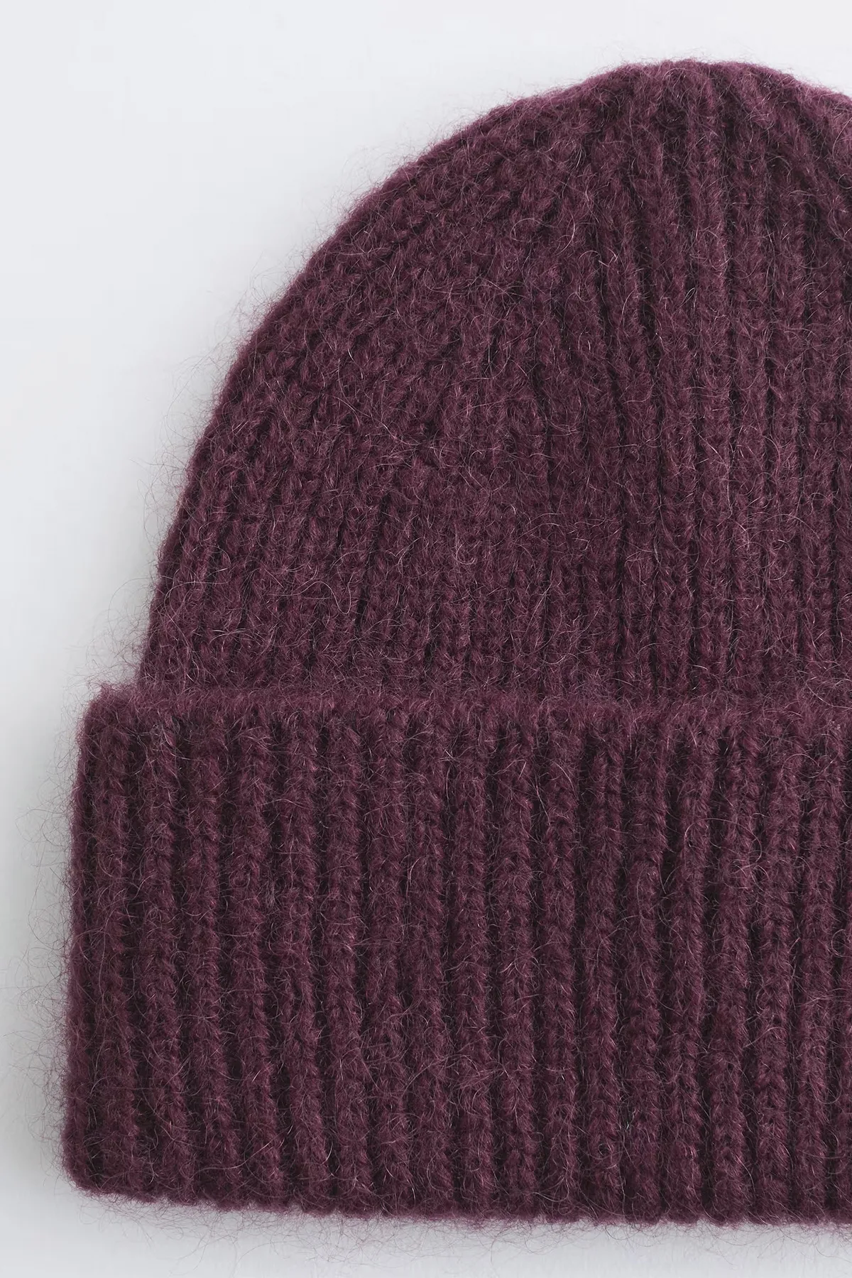 Эта шапка-бини из смеси мягчайшего мохера и шерсти, связанная в рубчик, отличается классическим дизайном. Широкие поля можно носить как сложенными, так и расправленными.