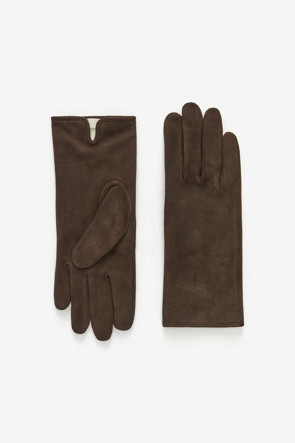 Перчатки изготовлены из замши с мягкой шерстяной подкладкой.