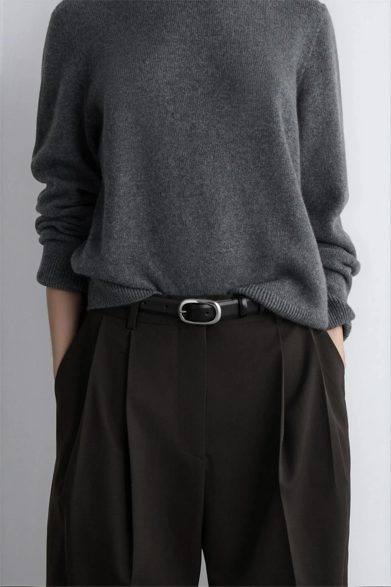 Этот ремень из мягкой чёрной кожи без хрома украшен скульптурной овальной серебристой пряжкой. Сочетайте его с одеждой повседневного покроя или джинсами.