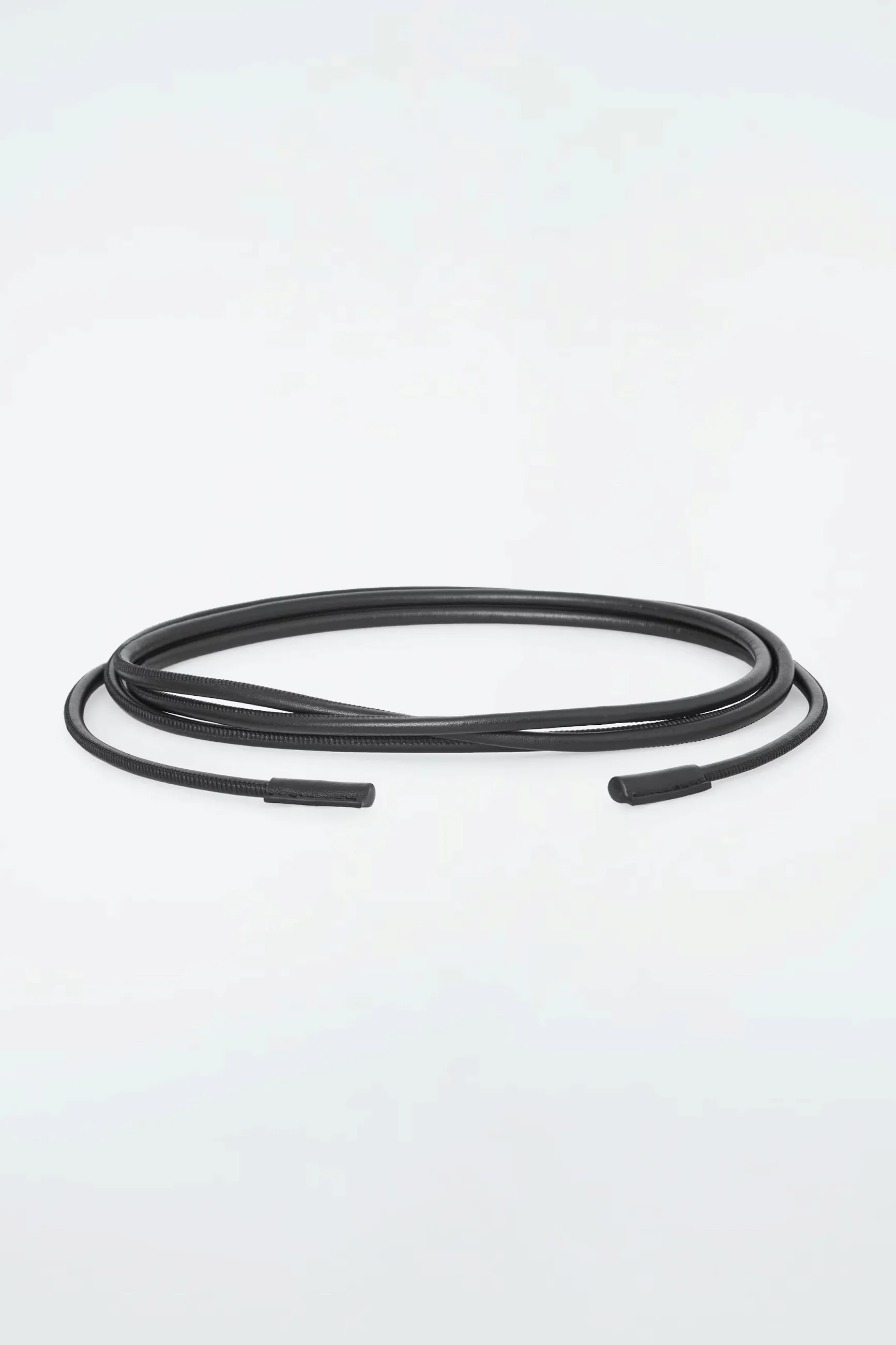 Этот трубчатый ремень в виде веревки изготовлен из мягкой черной кожи. Стежки придают ему эффект цепочки. Используйте его, чтобы затянуть талию вашего любимого пальто или блейзера.