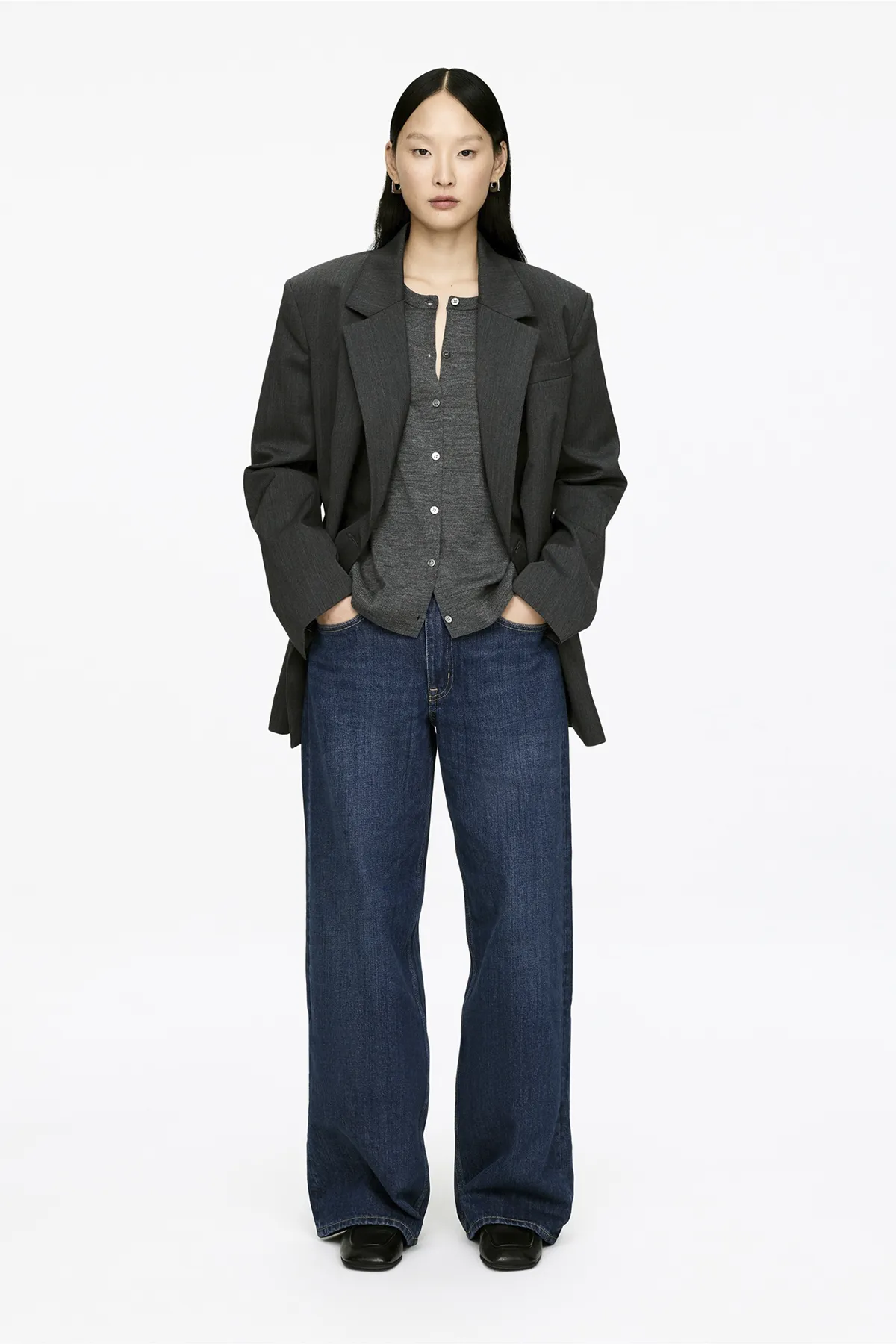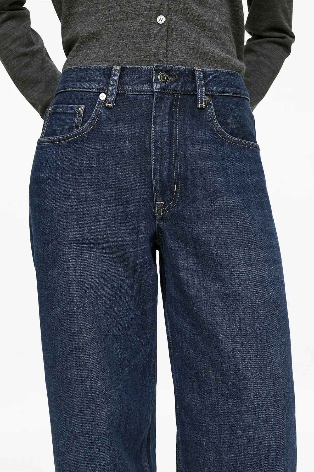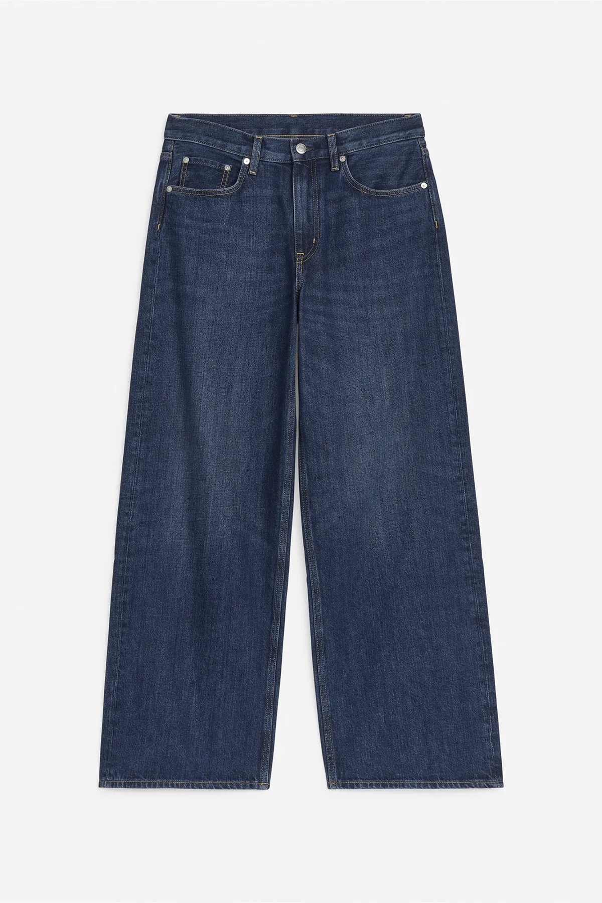 Модель CLOUD из неэластичного денима имеет заниженную талию, свободный крой и широкие штанины. Застёжка на молнию.