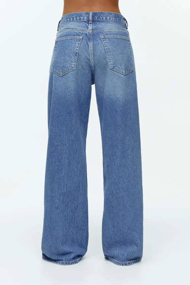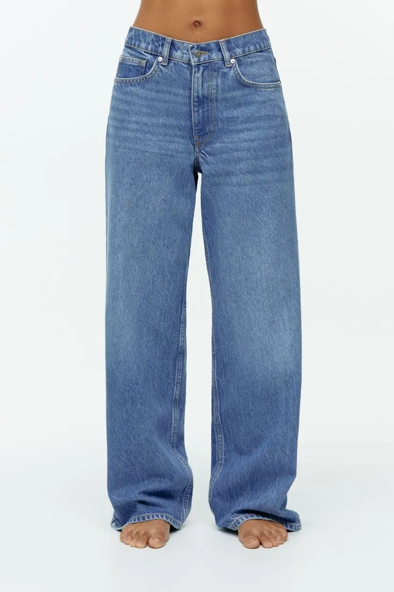 Модель CLOUD с низкой посадкой изготовлена из неэластичного денима. Характерная особенность – свободный крой с широкими штанинами.