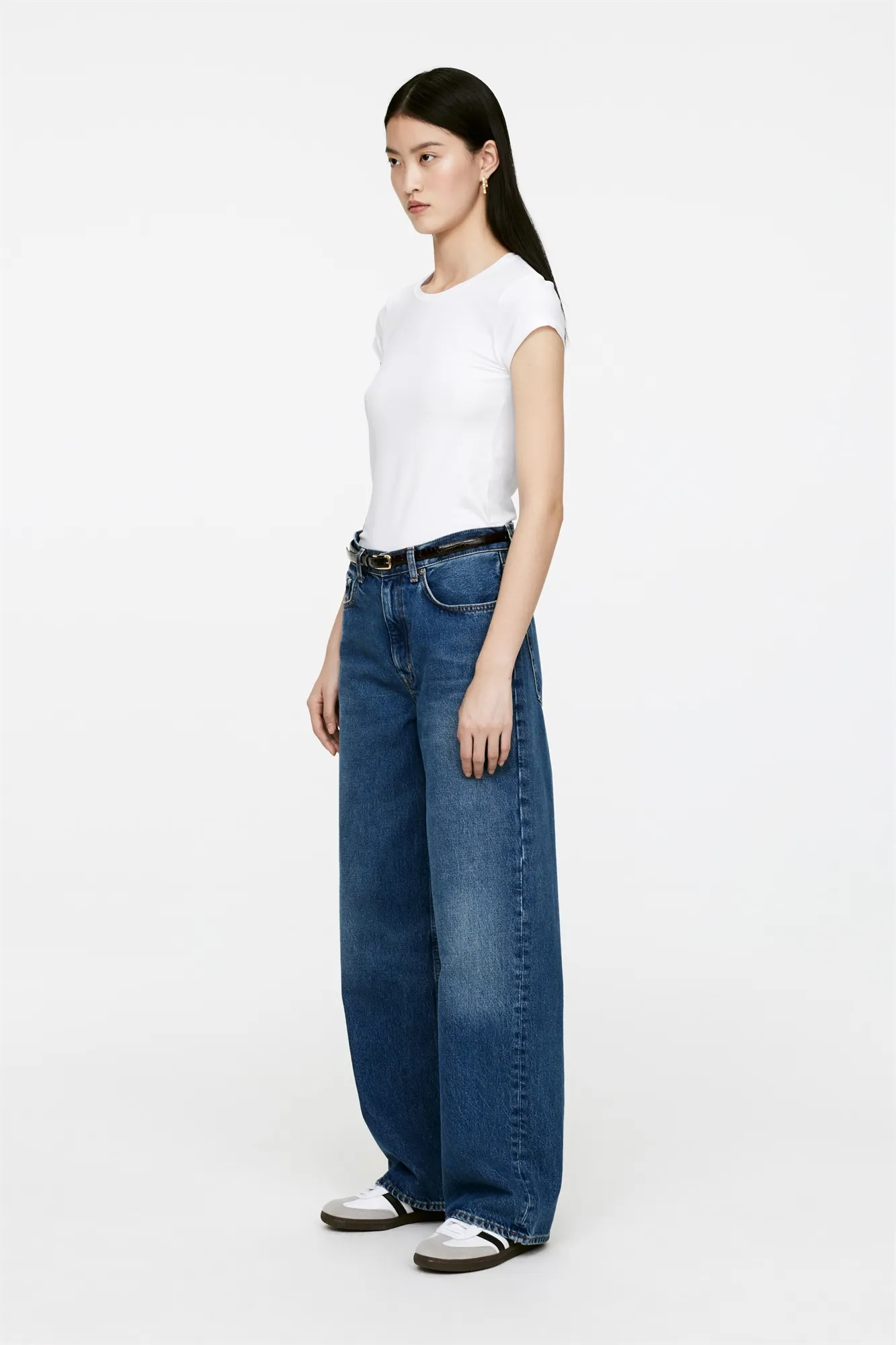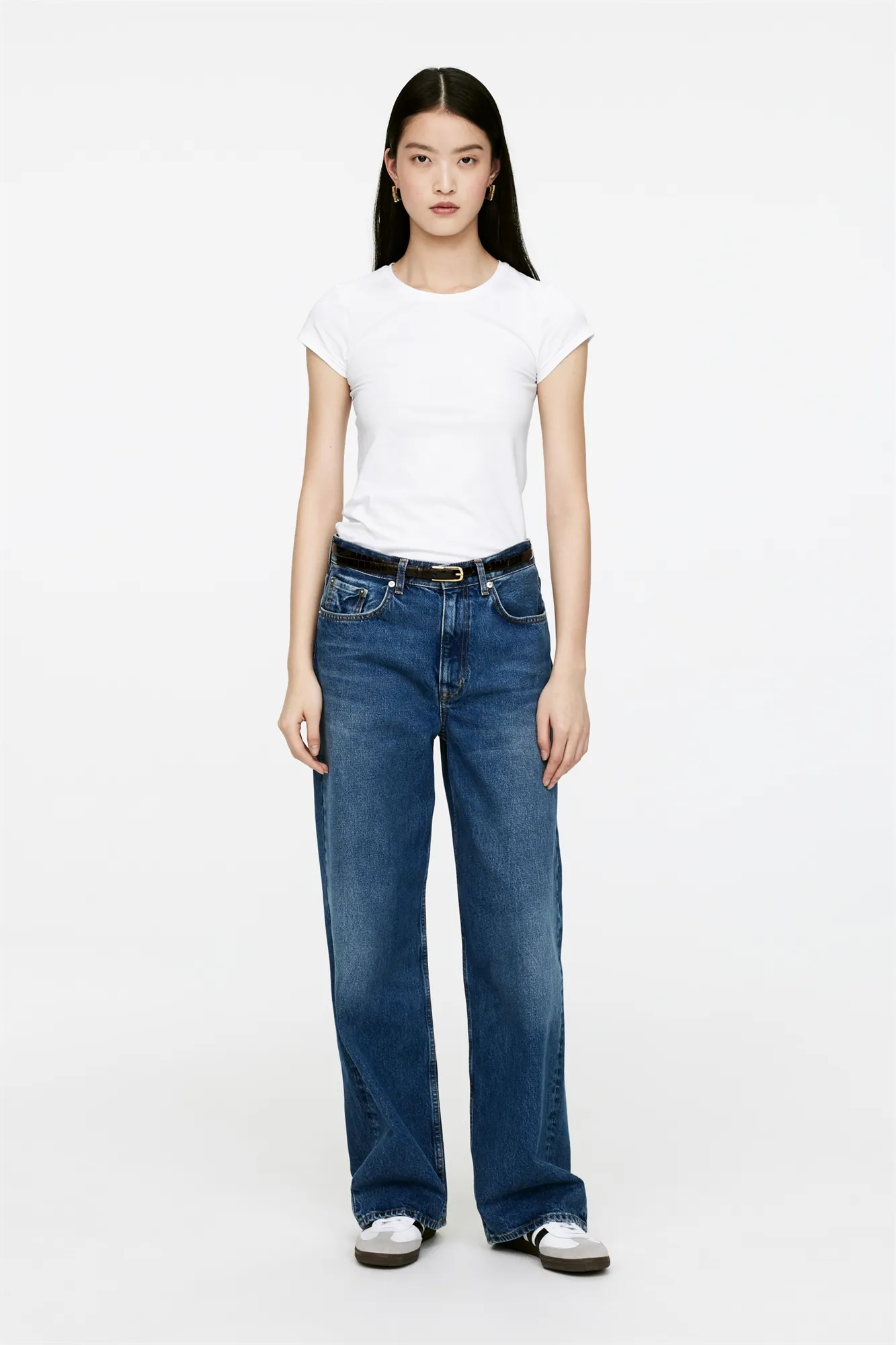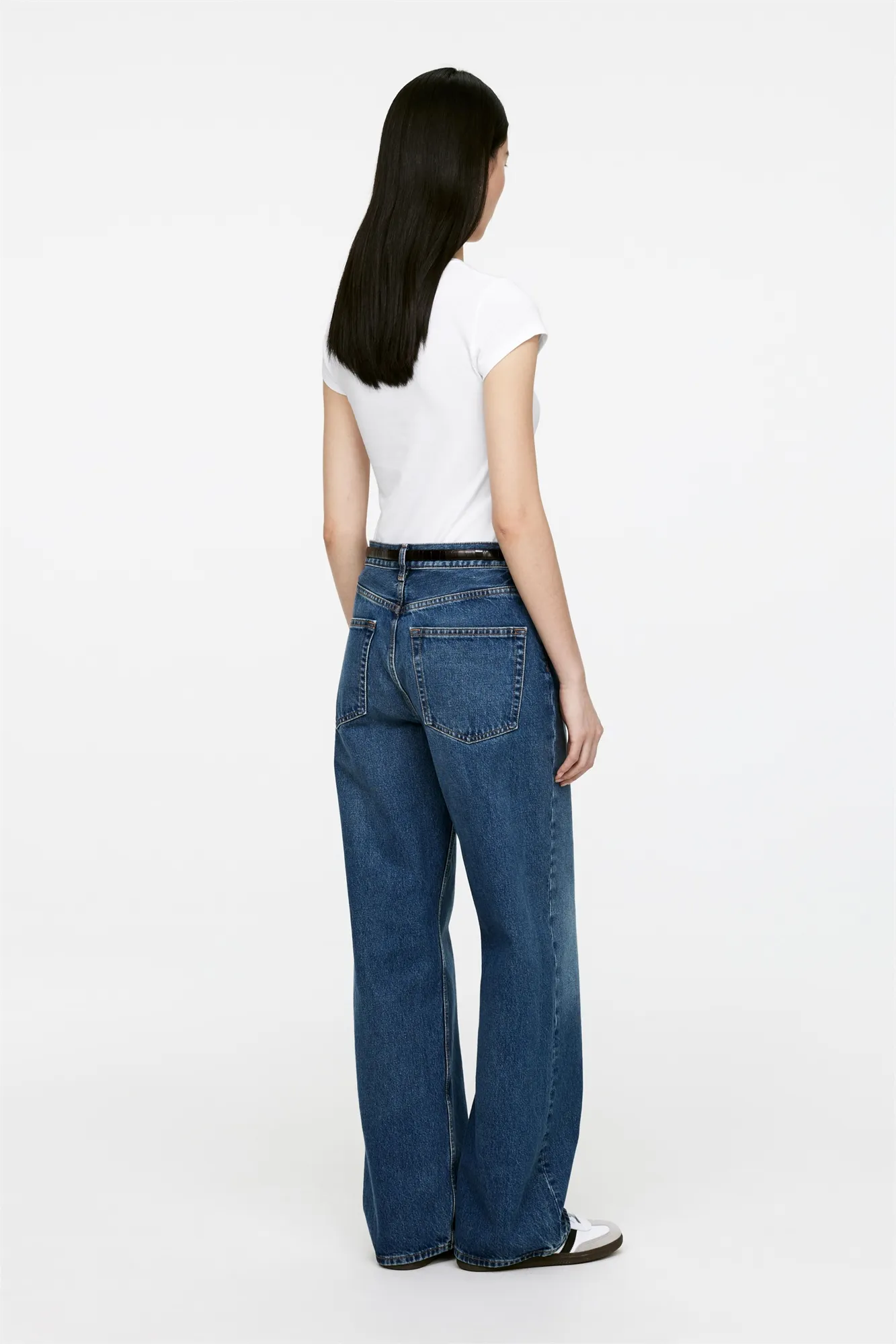 Модель CORAL с высокой талией выполнена из неэластичного денима. Характерный свободный крой с широкими штанинами.