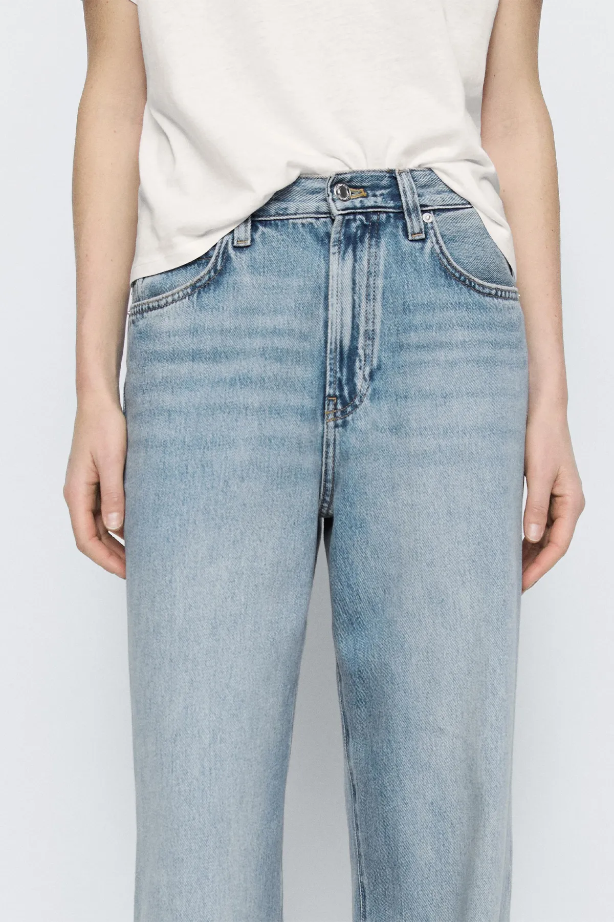 Джинсы с широкими штанинами: эта модель имеет широкий и свободный крой от бедра до щиколотки, что обеспечивает комфорт. Высокая посадка. Пояс со шлевками для ремня. Модель с пятью карманами. Изготовлены из хлопчатобумажной ткани.