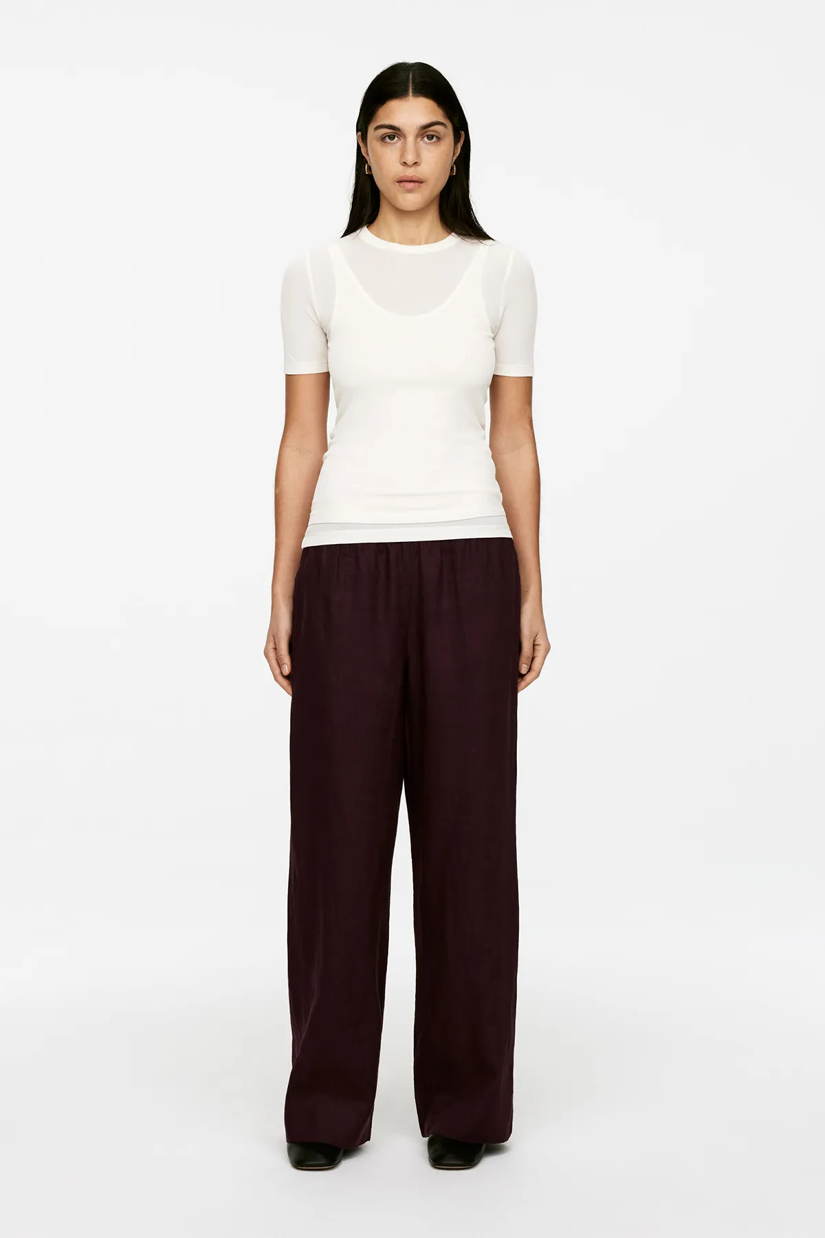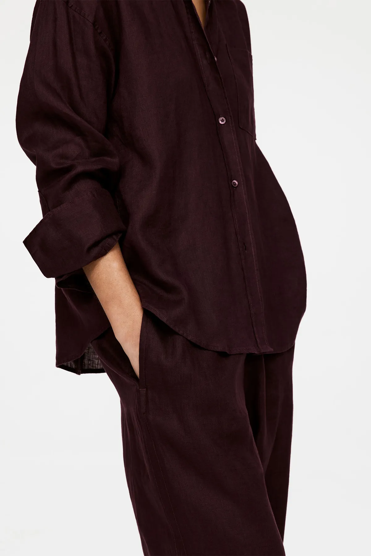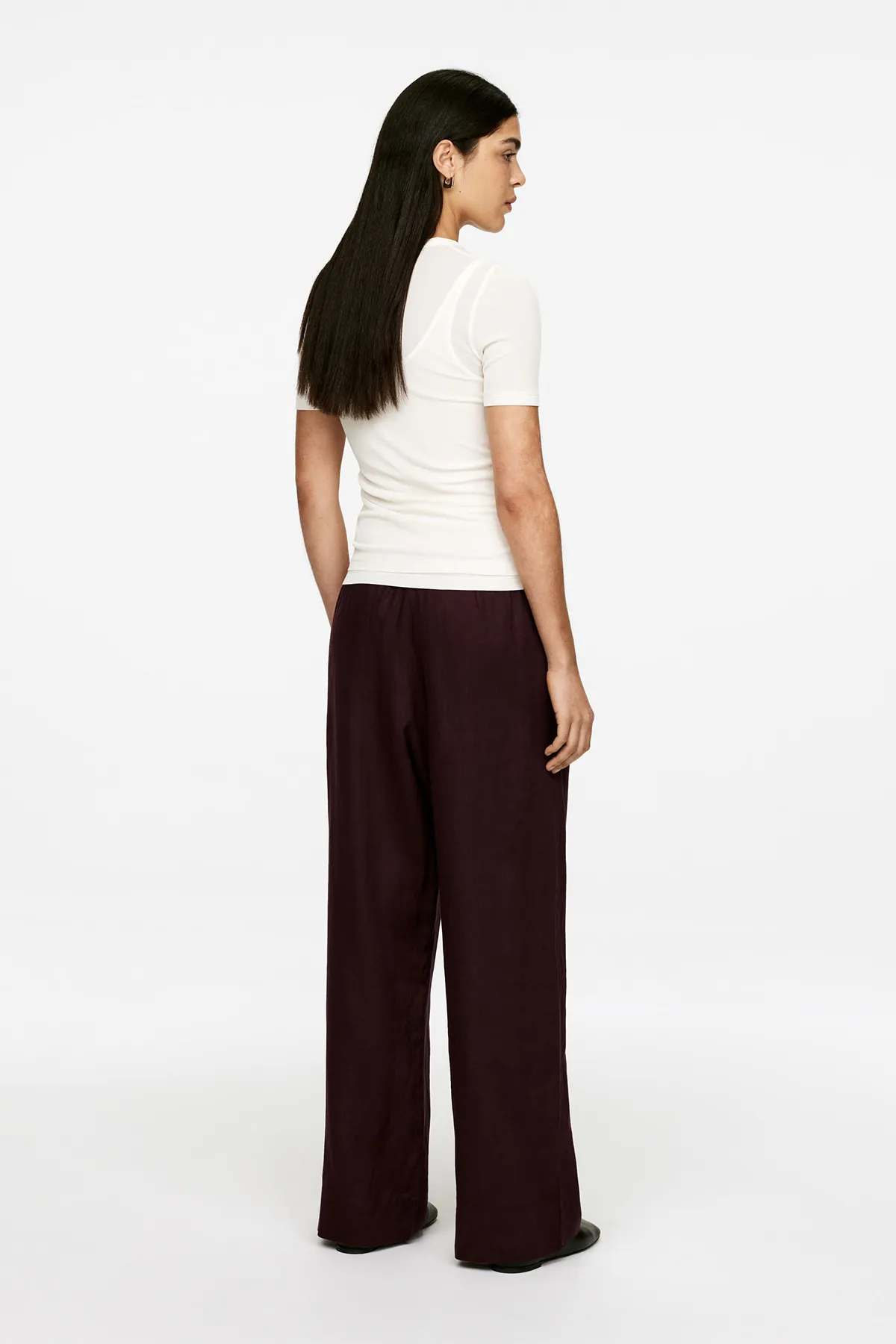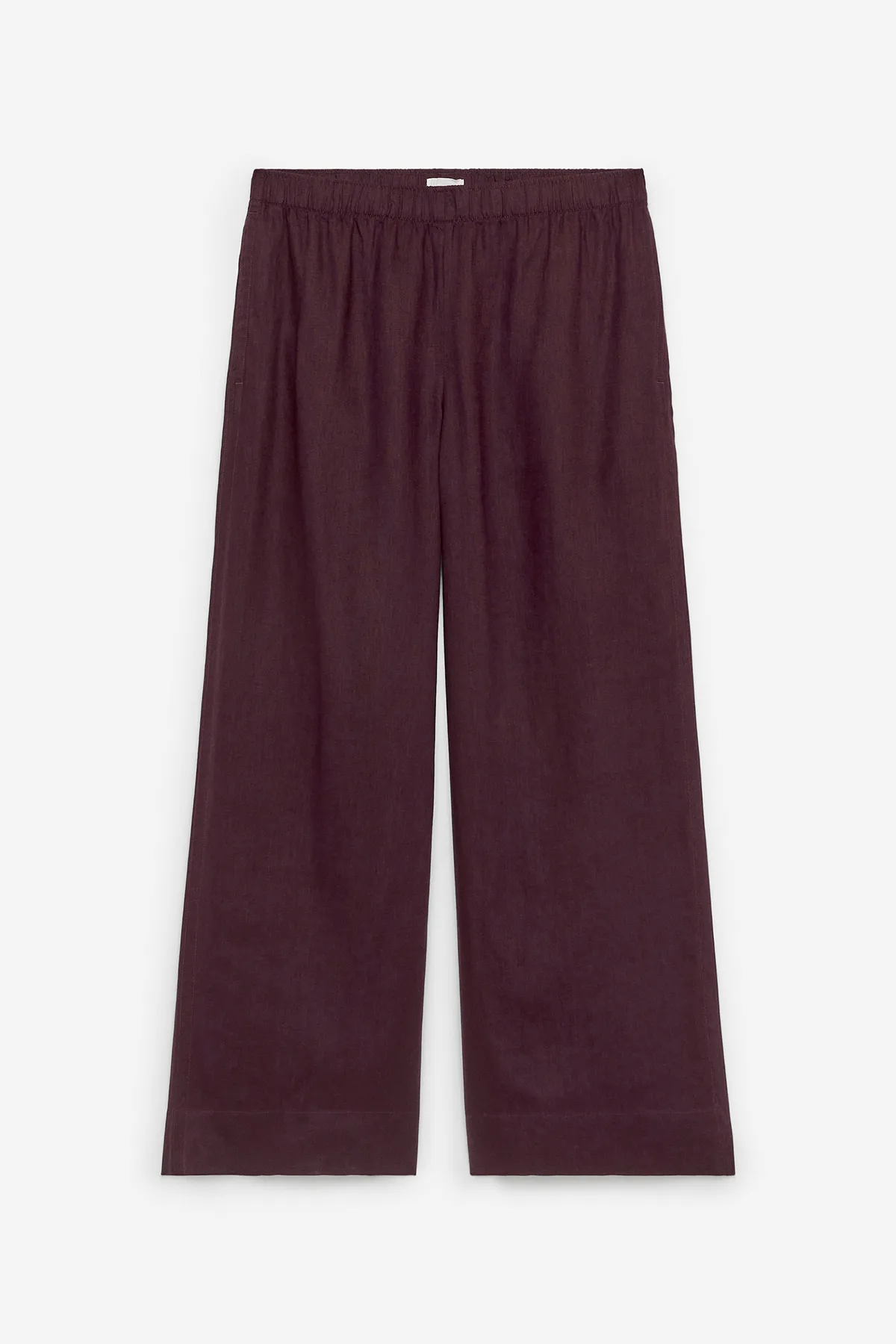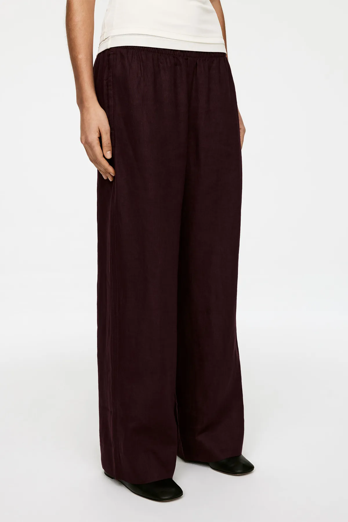 Свободные льняные брюки со средней посадкой на талии и боковыми карманами. Эластичный пояс. Собери образ с рубашкой.