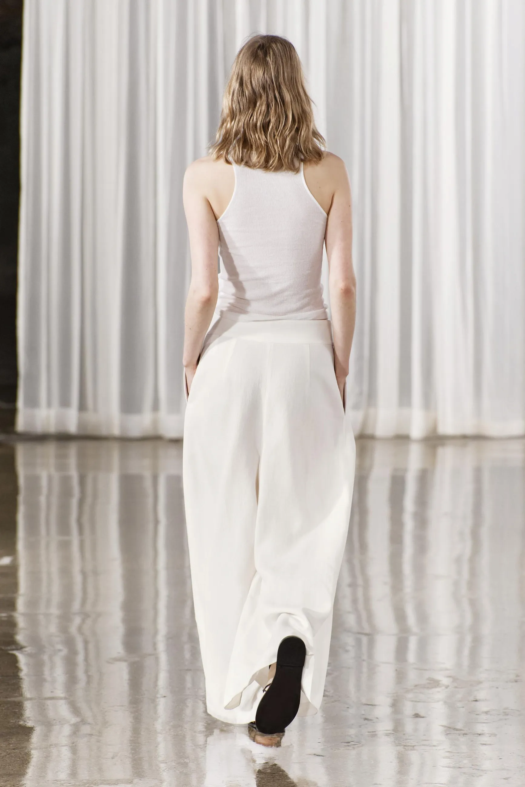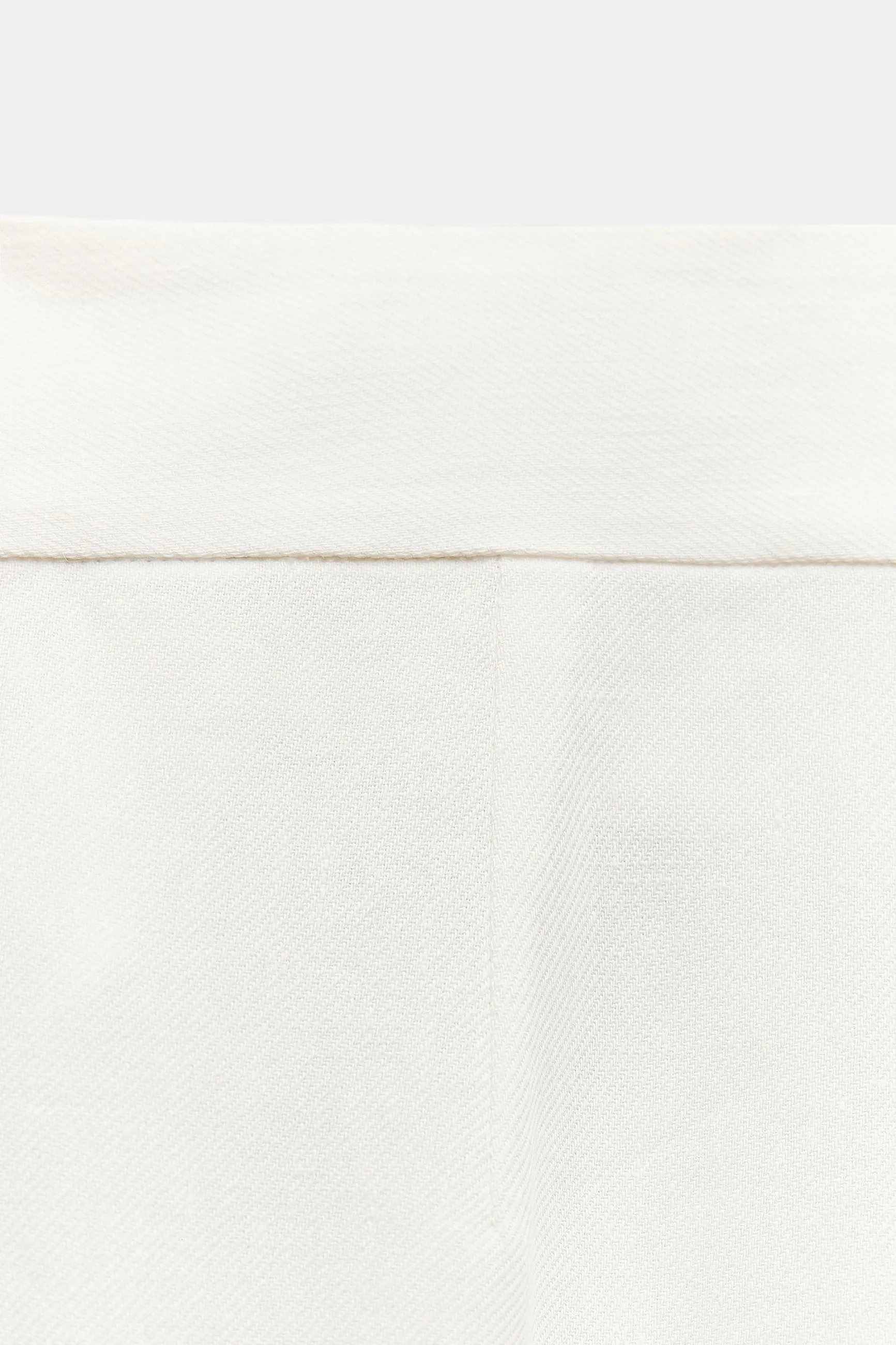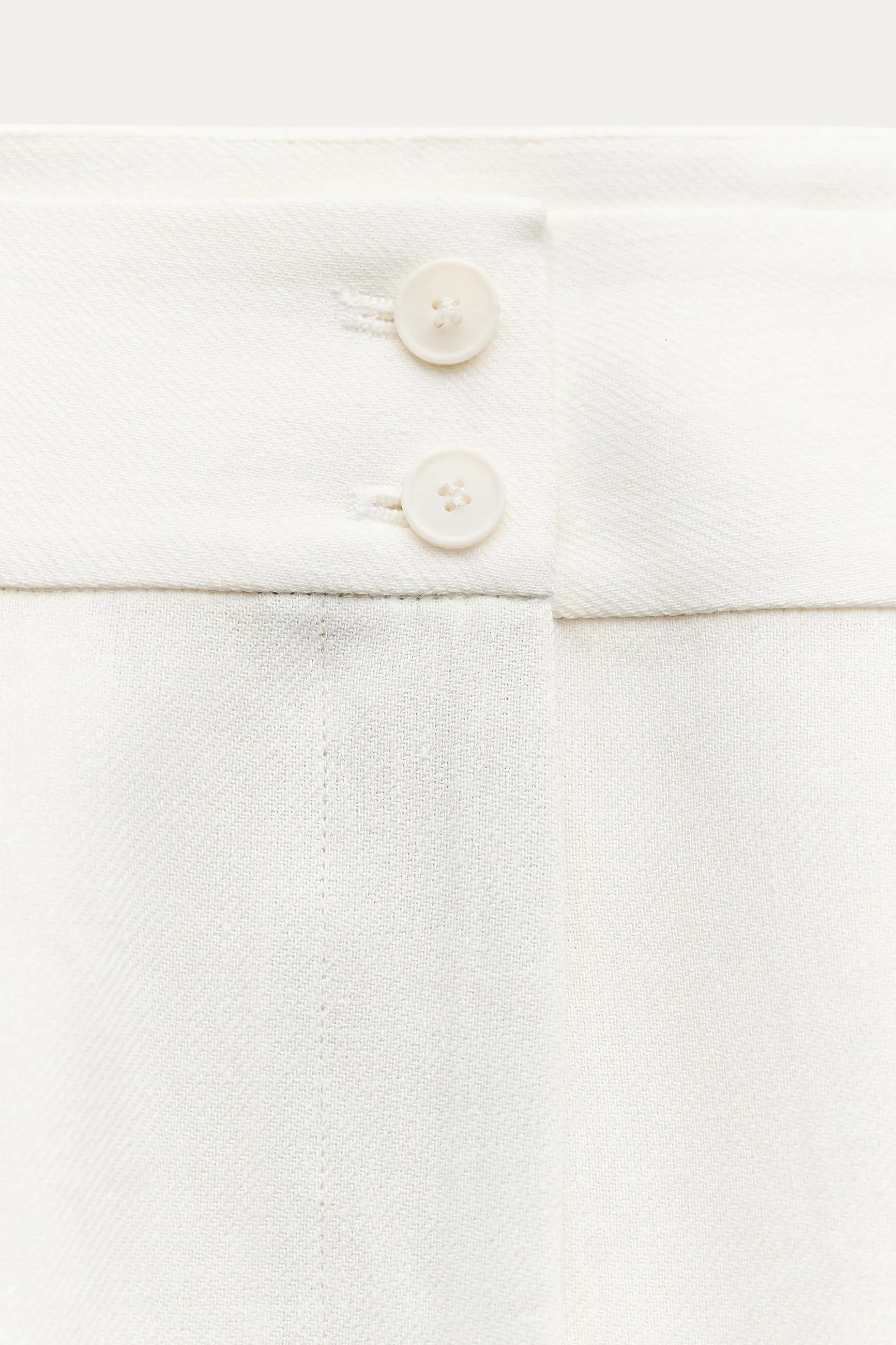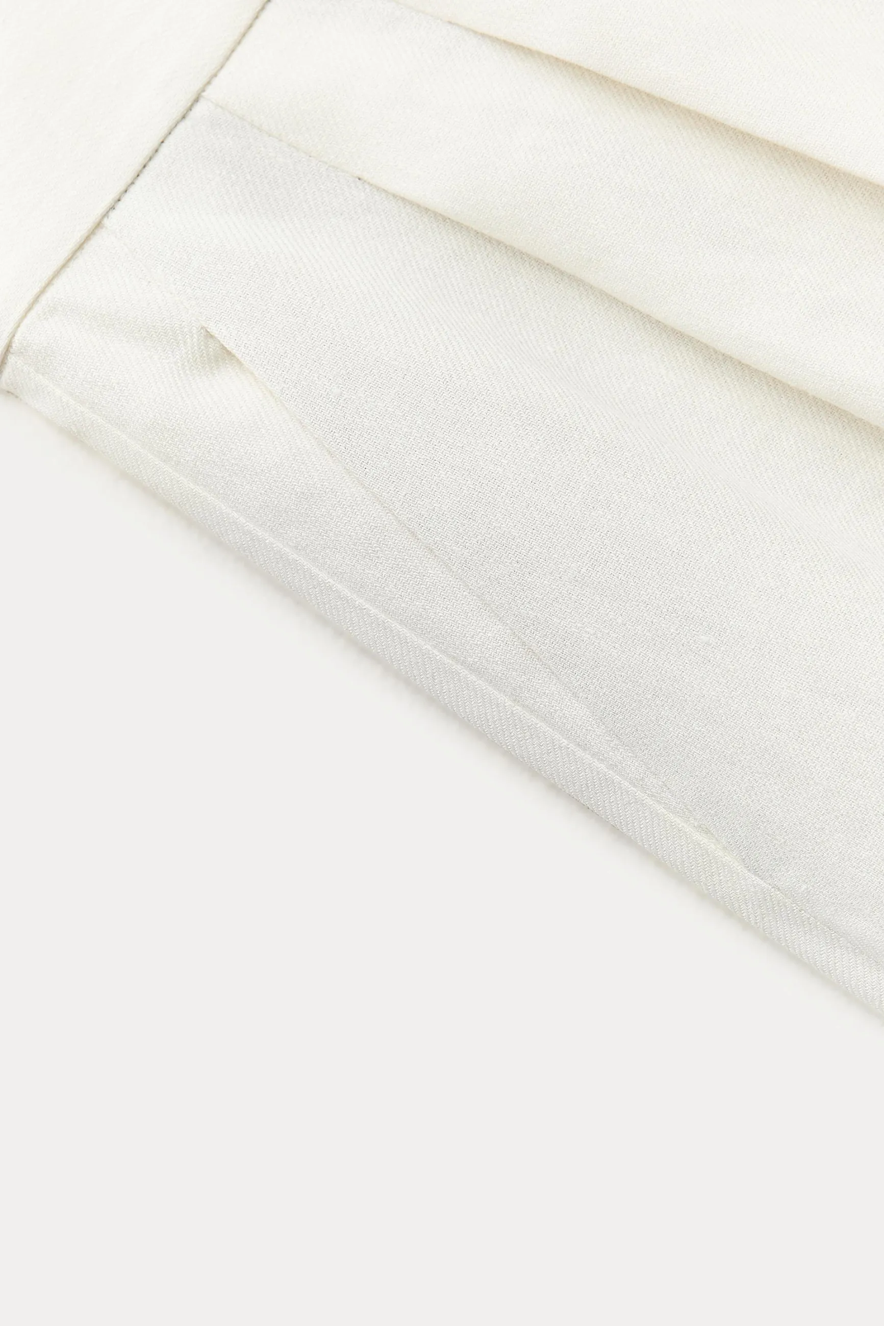 Брюки средней посадки из смесового льна. Боковые карманы. Вытачки спереди. Модель с широкими штанинами. Застежка на молнию и пуговицу спереди.