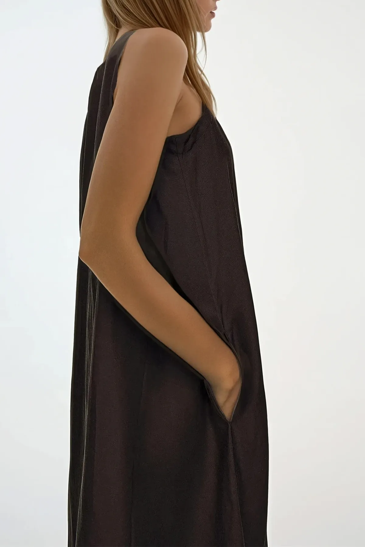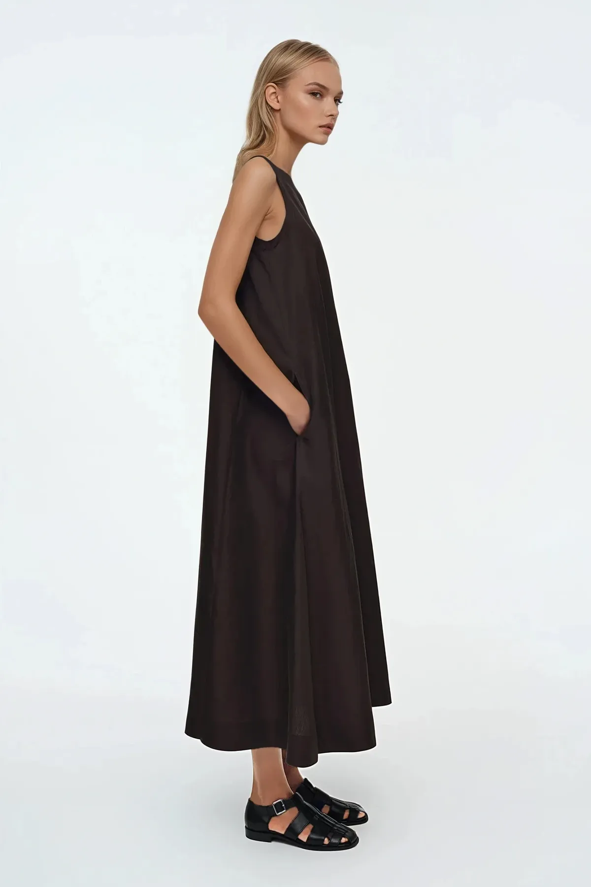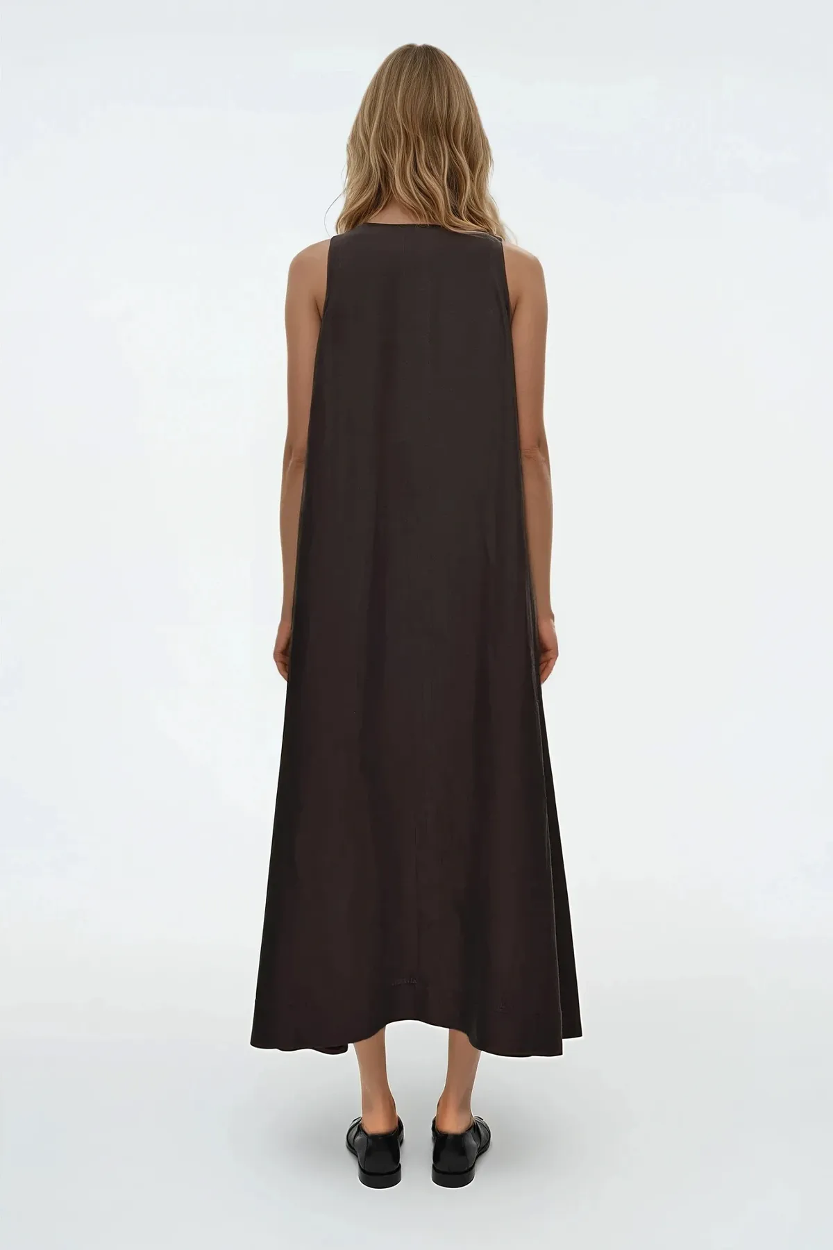 Это простое макси-платье выполнено из легкой, струящейся смеси лиоцелла TENCEL™ и льна, которая красиво драпируется. Модель А-силуэта имеет V-образный вырез и плиссировку, придающую ей объем.