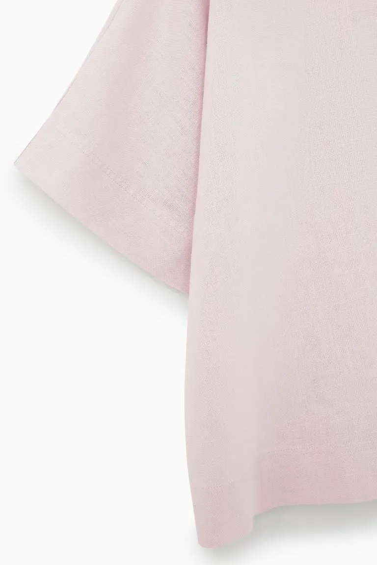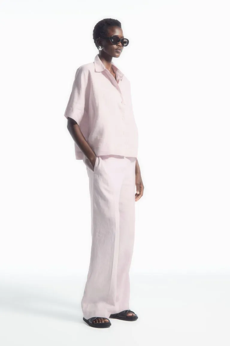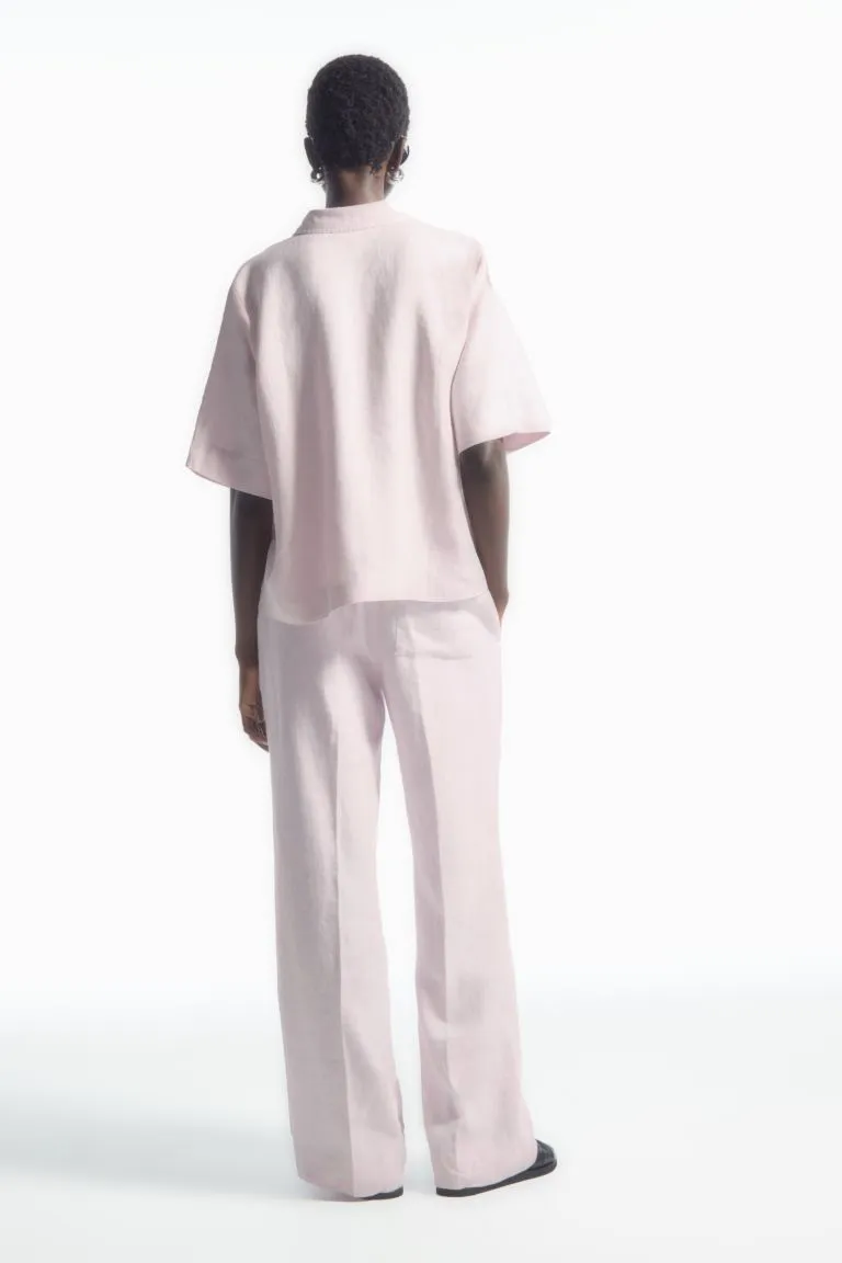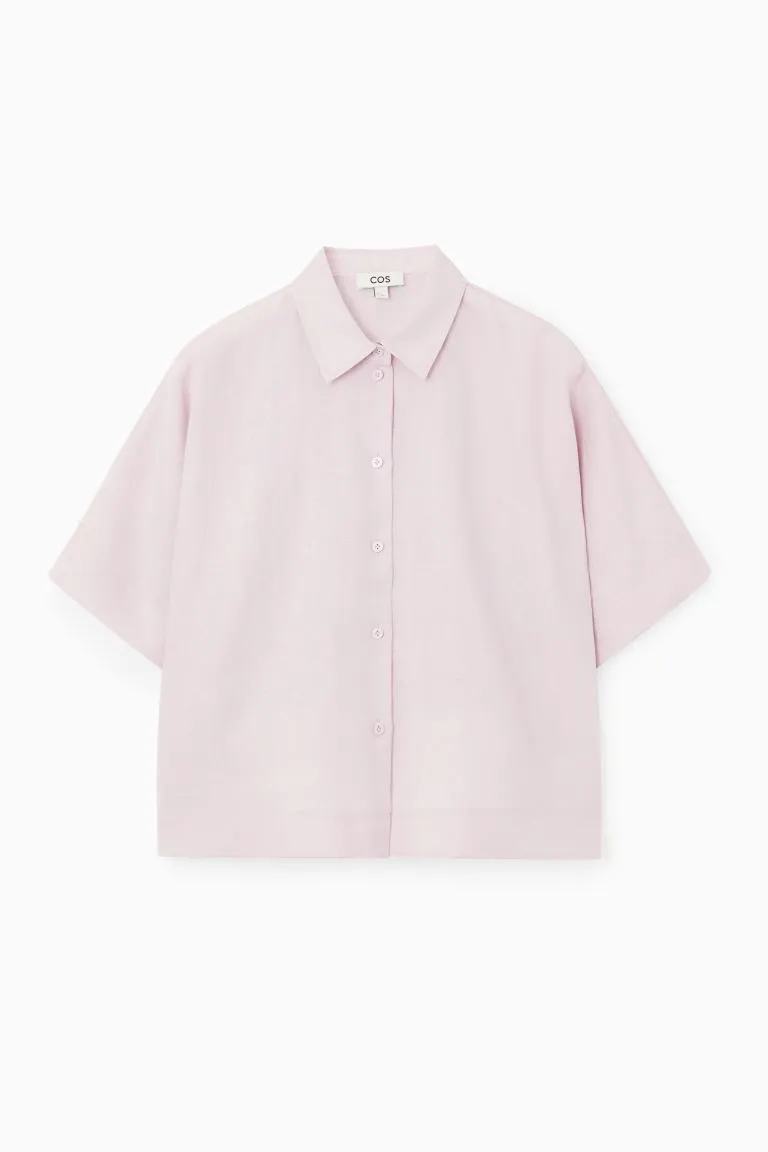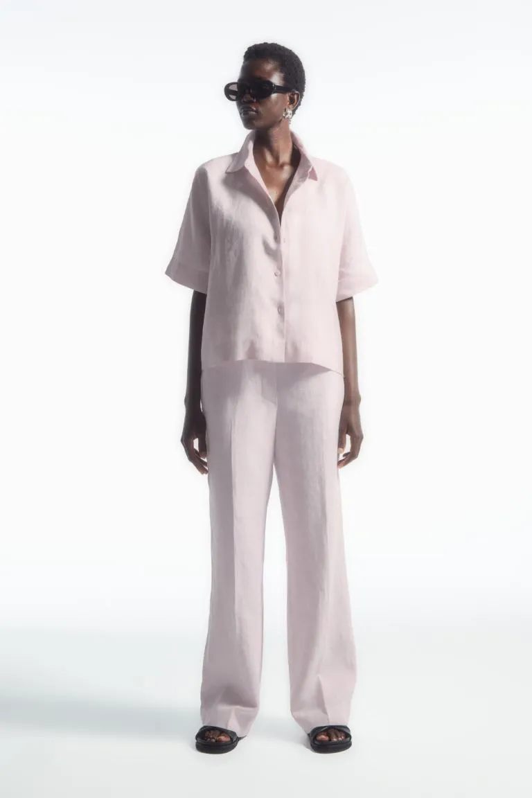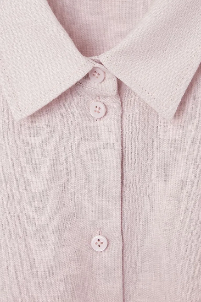 Эта непринужденная рубашка из коллекции женской одежды COS перенесет вас в самые теплые месяцы года. Представлена в бледно-сиреневом оттенке, она изготовлена из чистого, дышащего и легкого льна, имеет аккуратный остроконечный воротник и короткие рукава. Создайте комплект с соответствующими брюками или выберите рубашку с длинными рукавами, если хотите большей защиты.