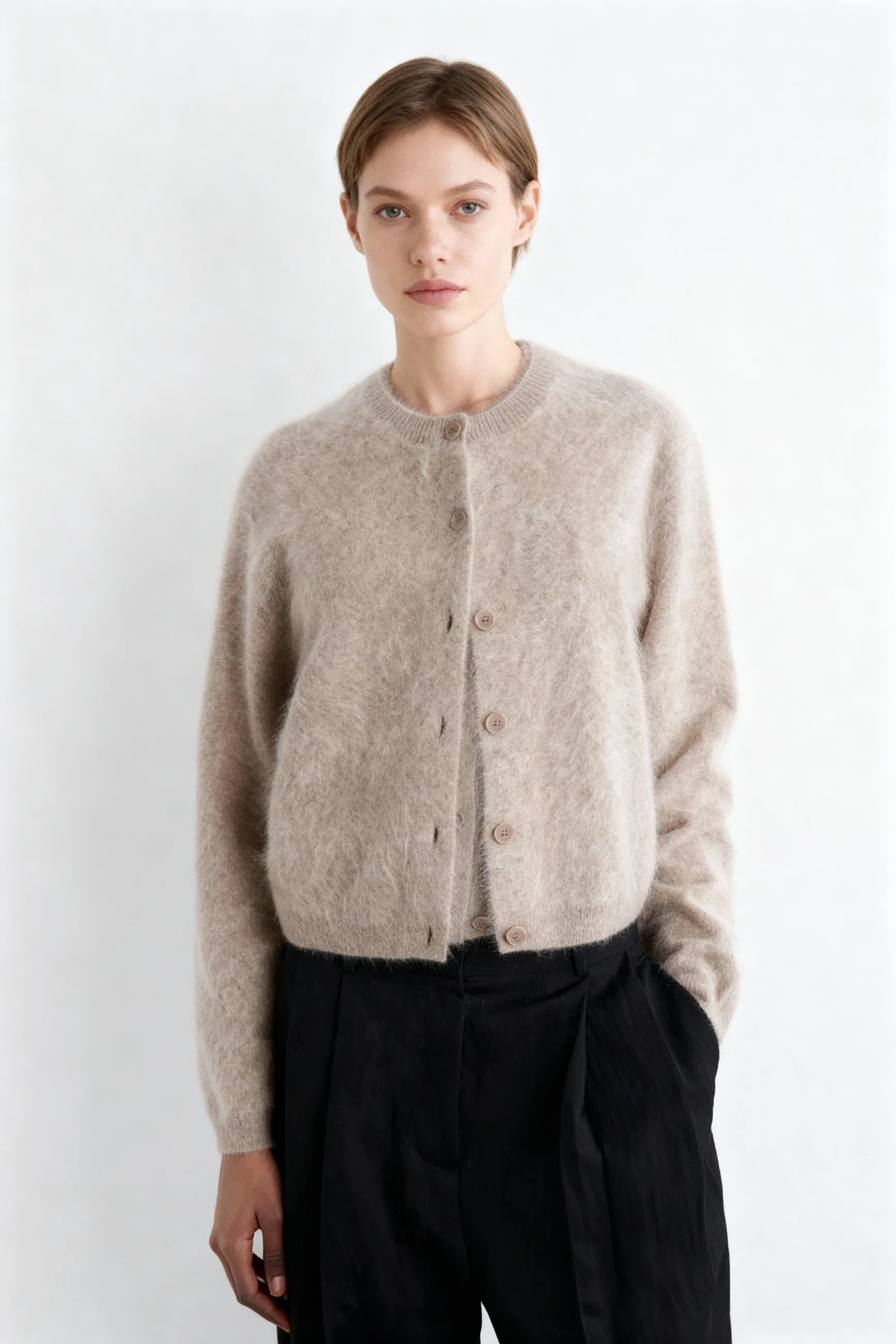 Классический кардиган с круглым вырезом обновлён в коллекции Pre-Fall 2025. Эта модель выполнена из кашемира, сертифицированного GCS, с начёсом, обеспечивающим мягкость и свежесть. Светло-коричневый оттенок позволяет сочетать его с множеством образов в вашем гардеробе. Носите кардиган отдельно или с подходящим жилетом .