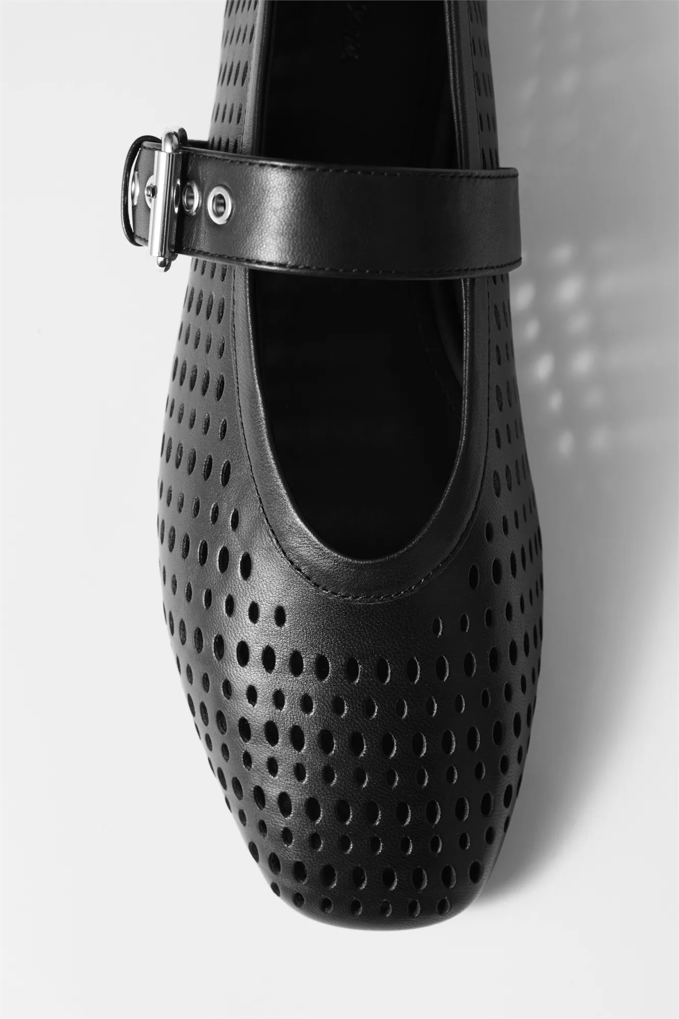 Это элегантная интерпретация классических балеток Мэри Джейн. Они изготовлены из мягкой кожи и имеют широкие регулируемые ремешки с пряжками и современный миндалевидный носок. Их можно сочетать с чем угодно — от джинсов до платьев и костюмов.