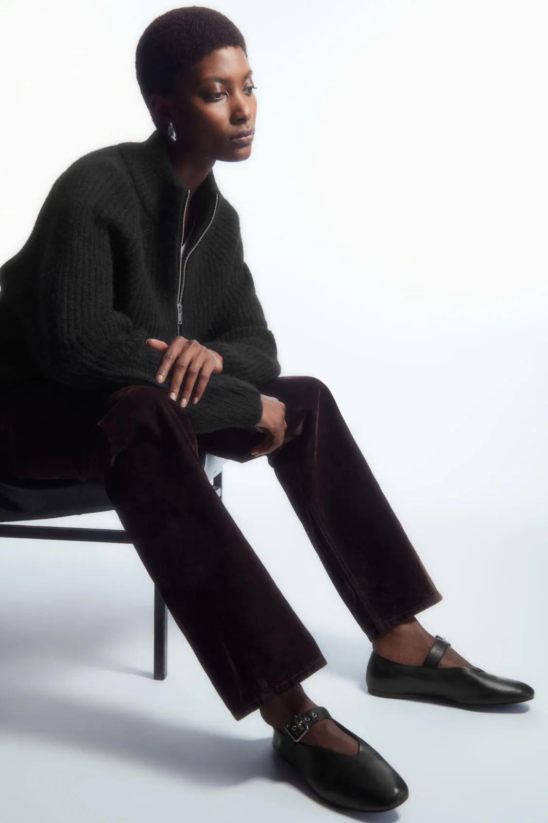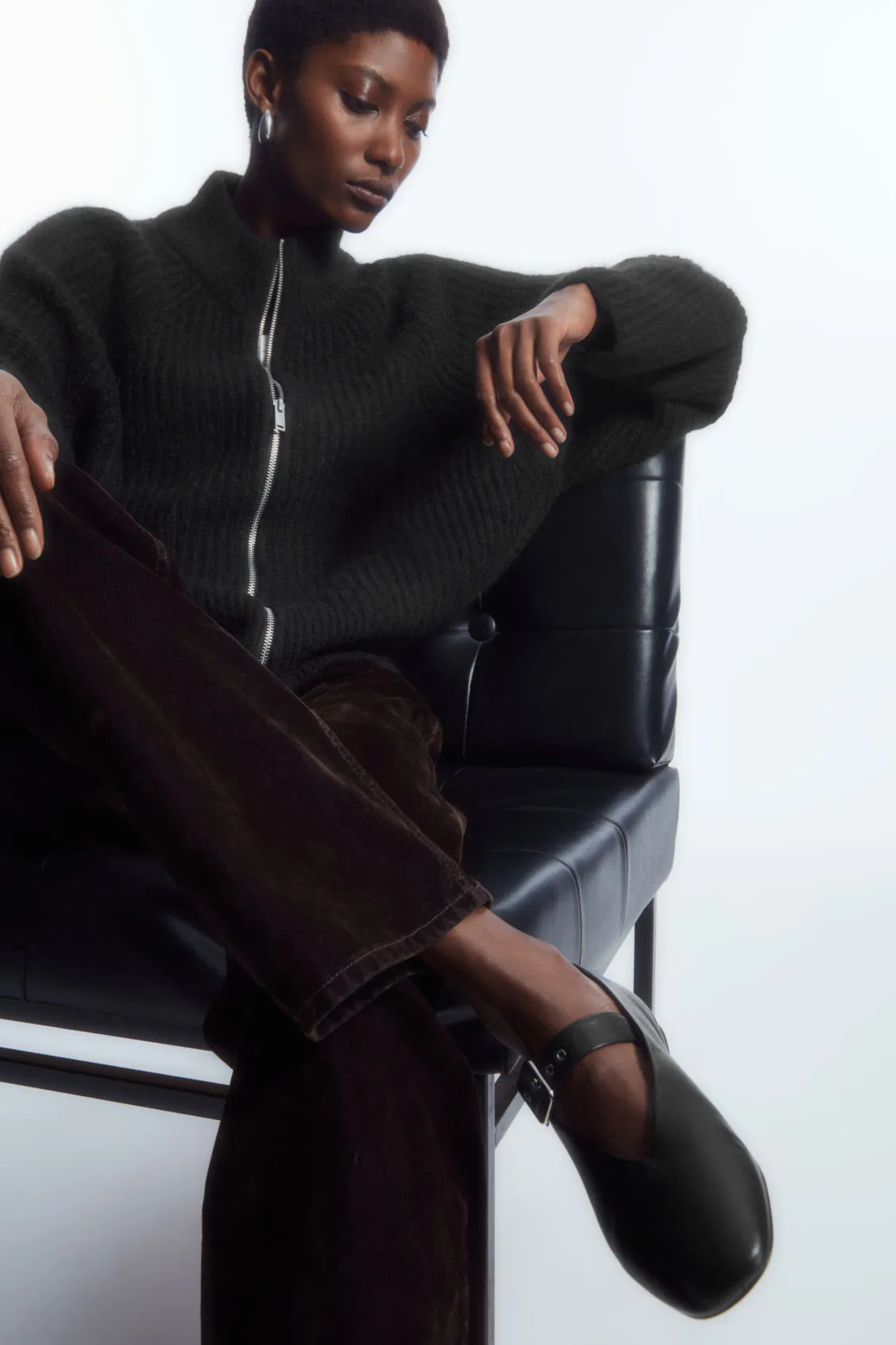 Основываясь на дизайне из архивов COS, команда женской моды по-новому интерпретировала легендарную Мэри Джейн для предстоящего сезона. Эти современные балетки, изготовленные из мягкой кожи без содержания хрома, имеют современный миндалевидный носок и мягкие стельки для удобной посадки. Серебристые люверсы и пряжки создают тонкий визуальный контраст.
