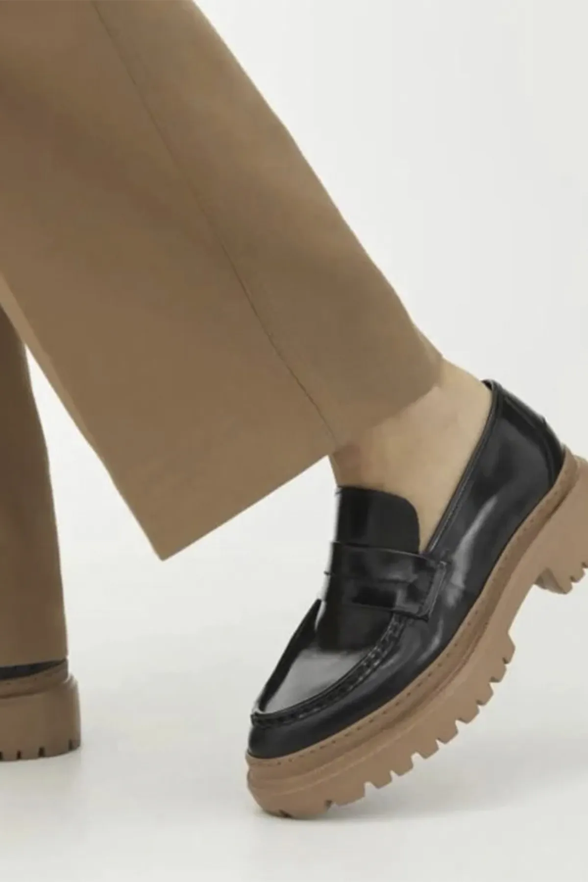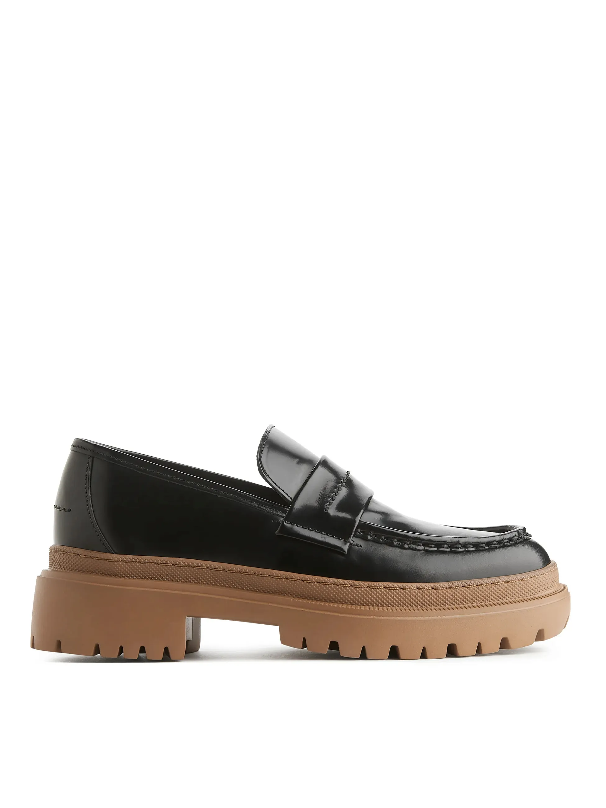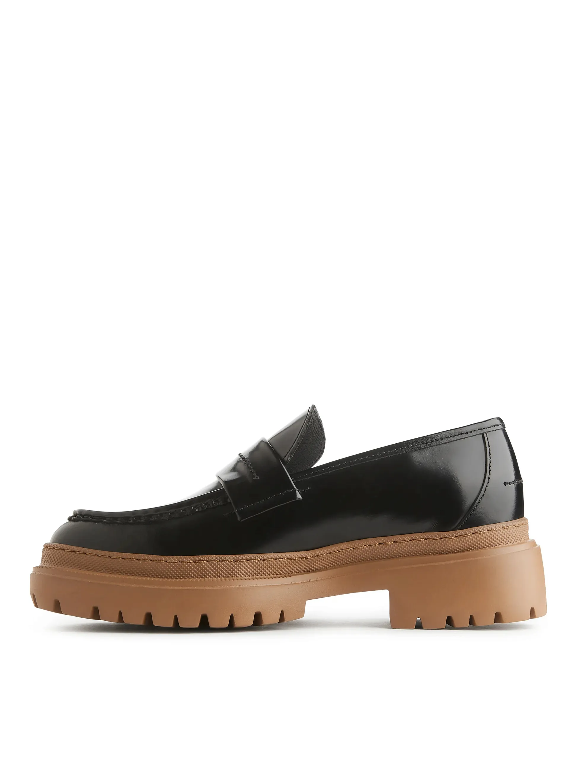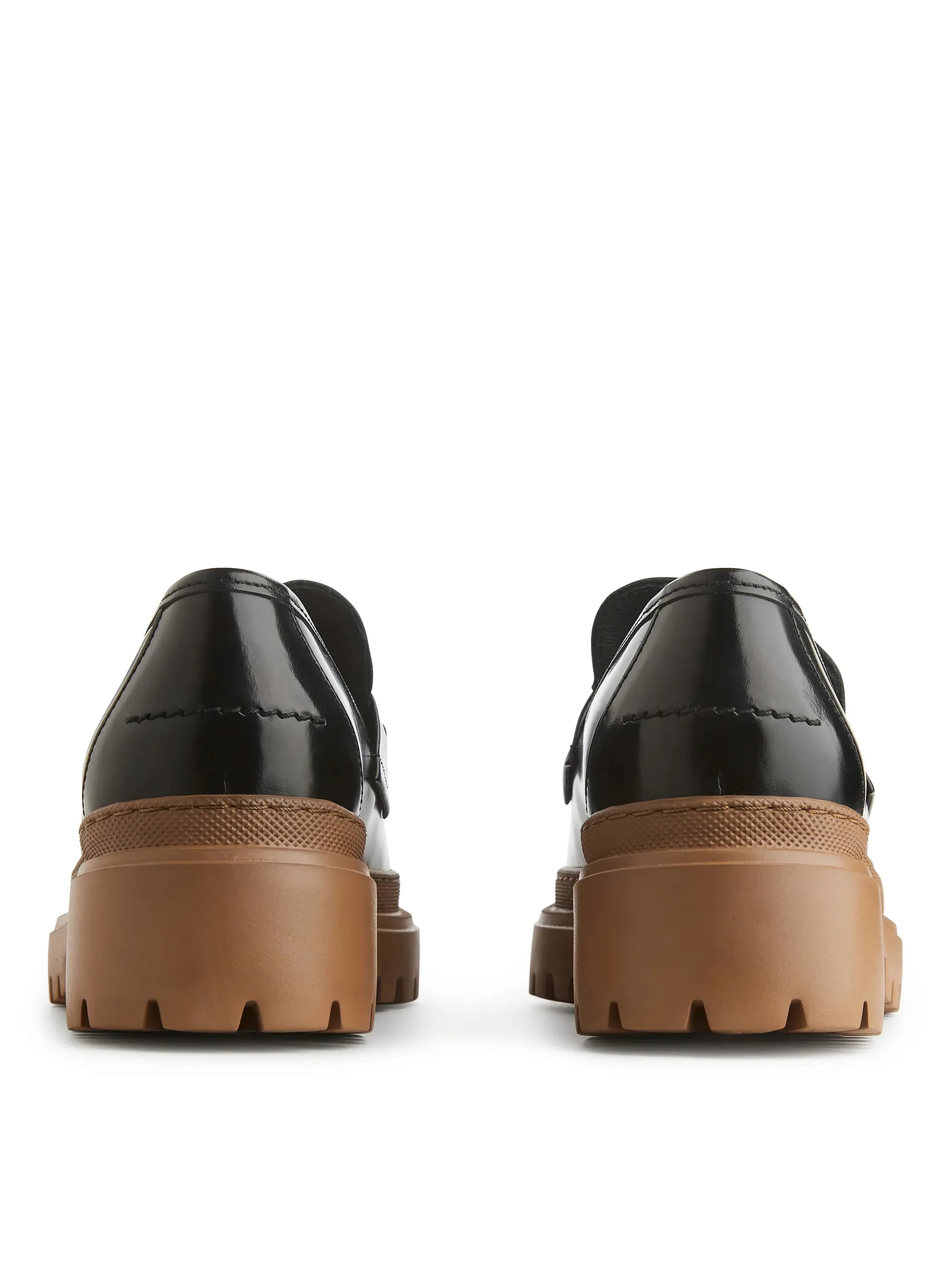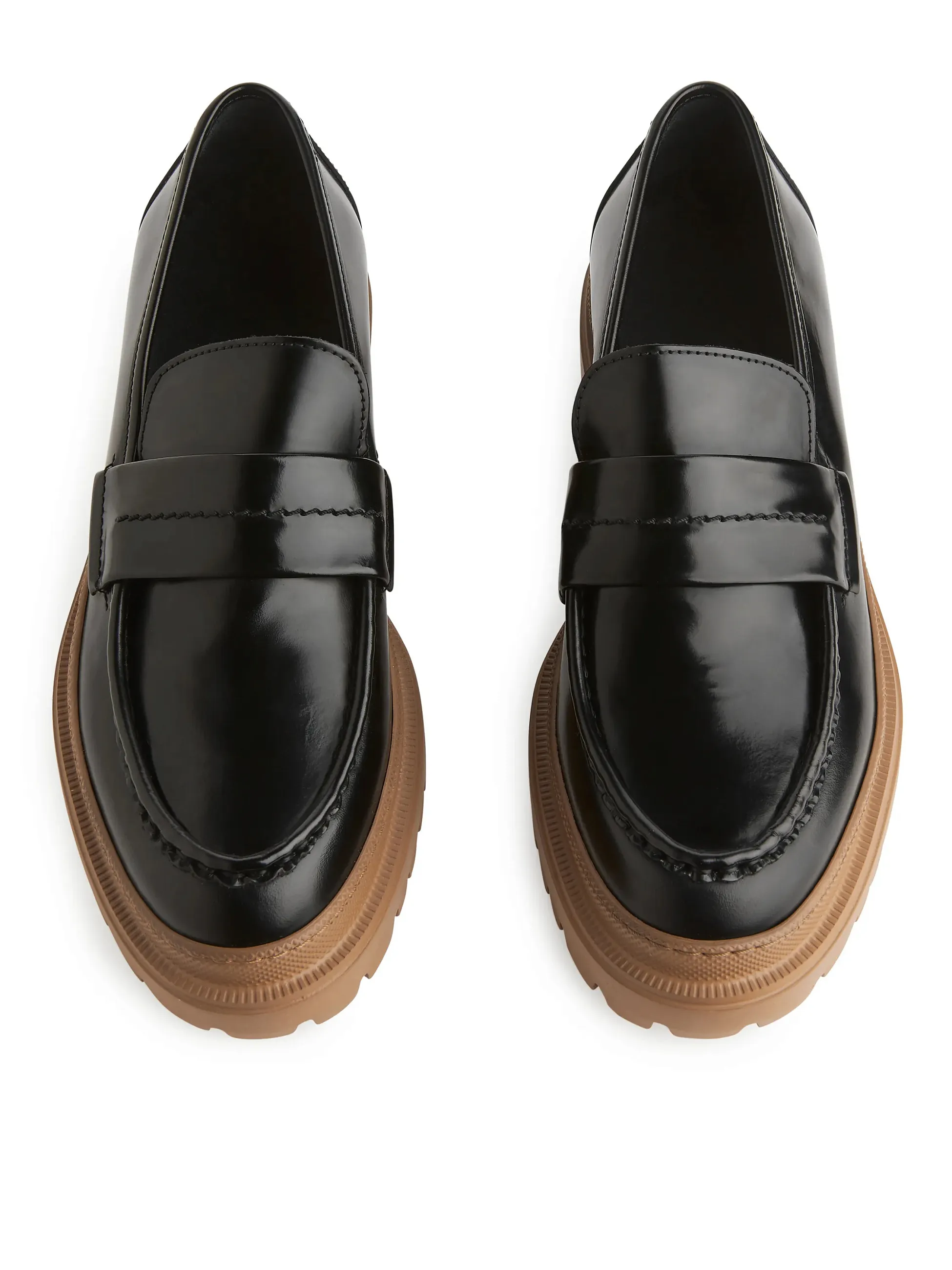 Эффектная резиновая подошва контрастного цвета придает этим кожаным лоферам обновленный вид. Изготовленные в Португалии из 100% натуральной кожи, прошедшей процесс дубления без использования хрома