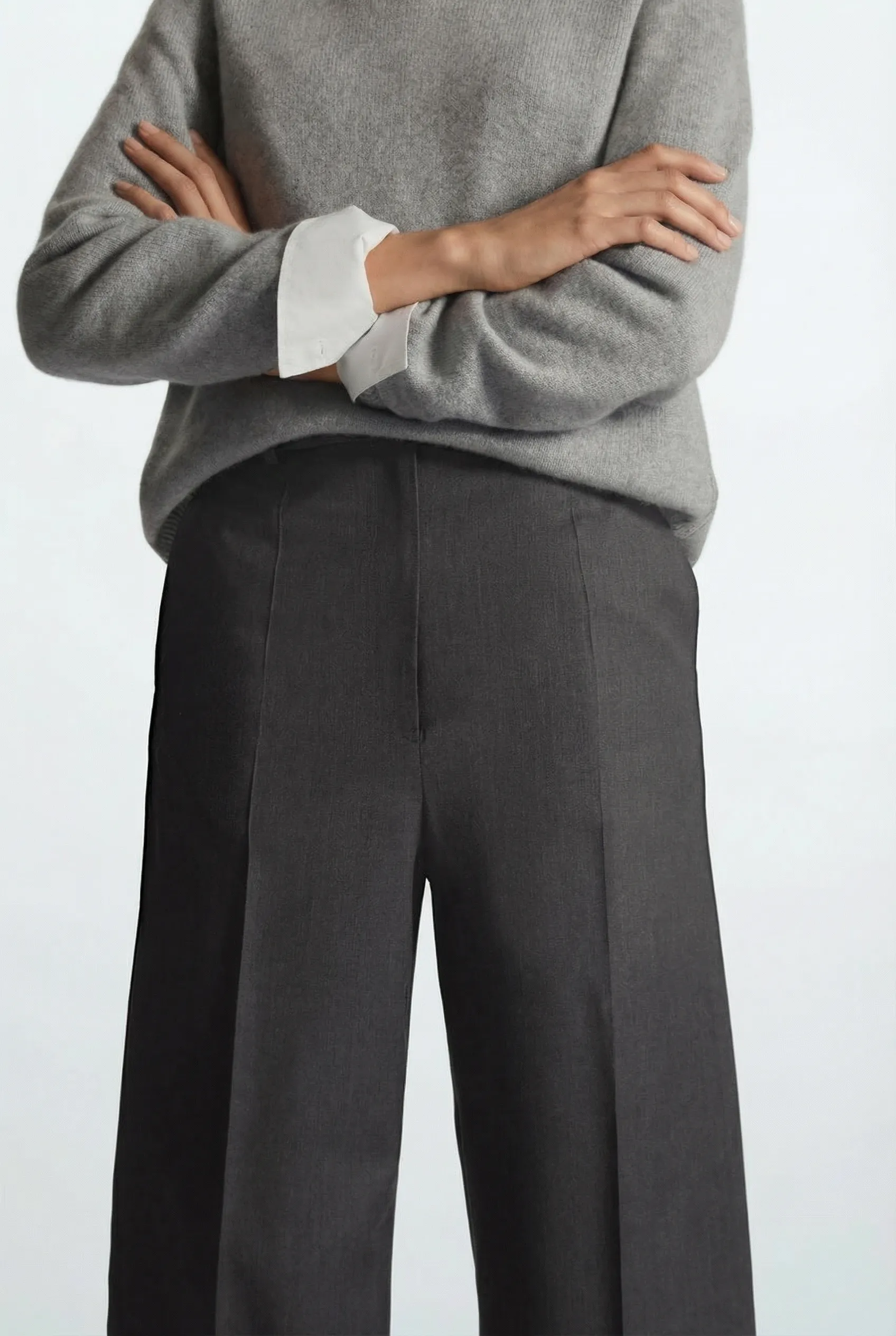 Эти современные брюки, изготовленные из шерсти, имеют длину выше талии. У них прямые полноразмерные штанины, что делает их идеальным выбором для ношения с вашими любимыми зимними ботинками.