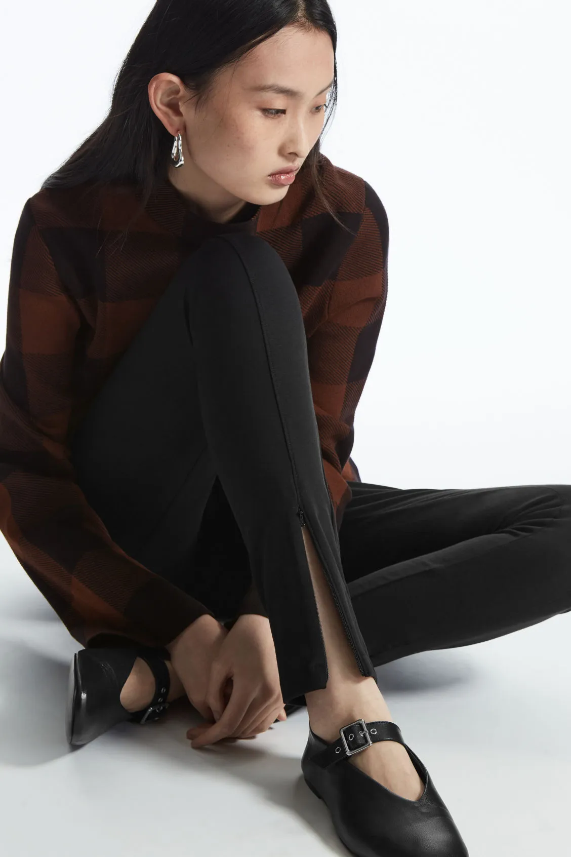 Изготовленные из более устойчивой смеси TENCEL™ Lyocell, эти леггинсы имеют удлиняющие центральные швы и потайные молнии на подоле, позволяющие регулировать силуэт. Широкий эластичный пояс обеспечивает комфорт в течение всего дня.