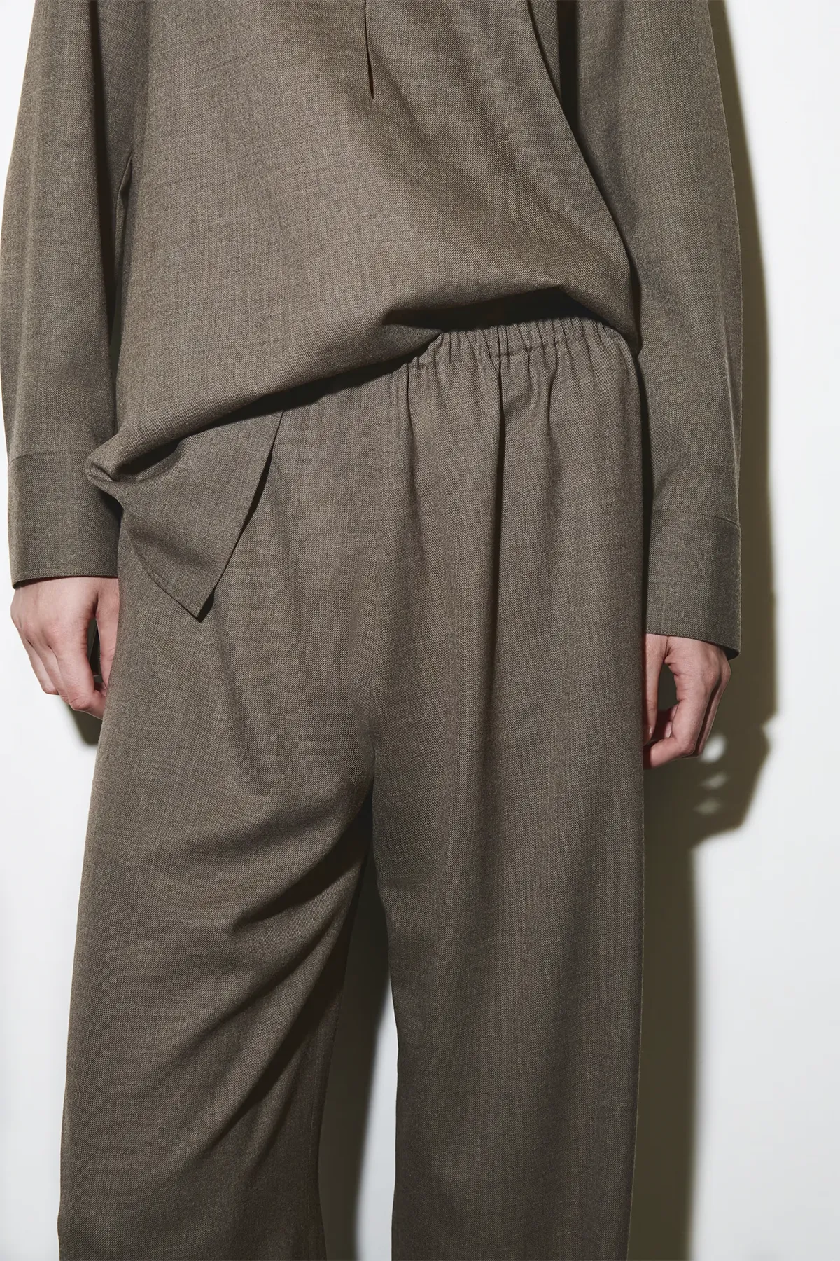 Непринуждённые силуэты — основа гардероба для выходного дня. Эти струящиеся брюки широкого кроя из шерстяной смеси RWS с эластичным поясом — идеальный пример. Сочетайте их с подходящим пиджаком или рубашкой .