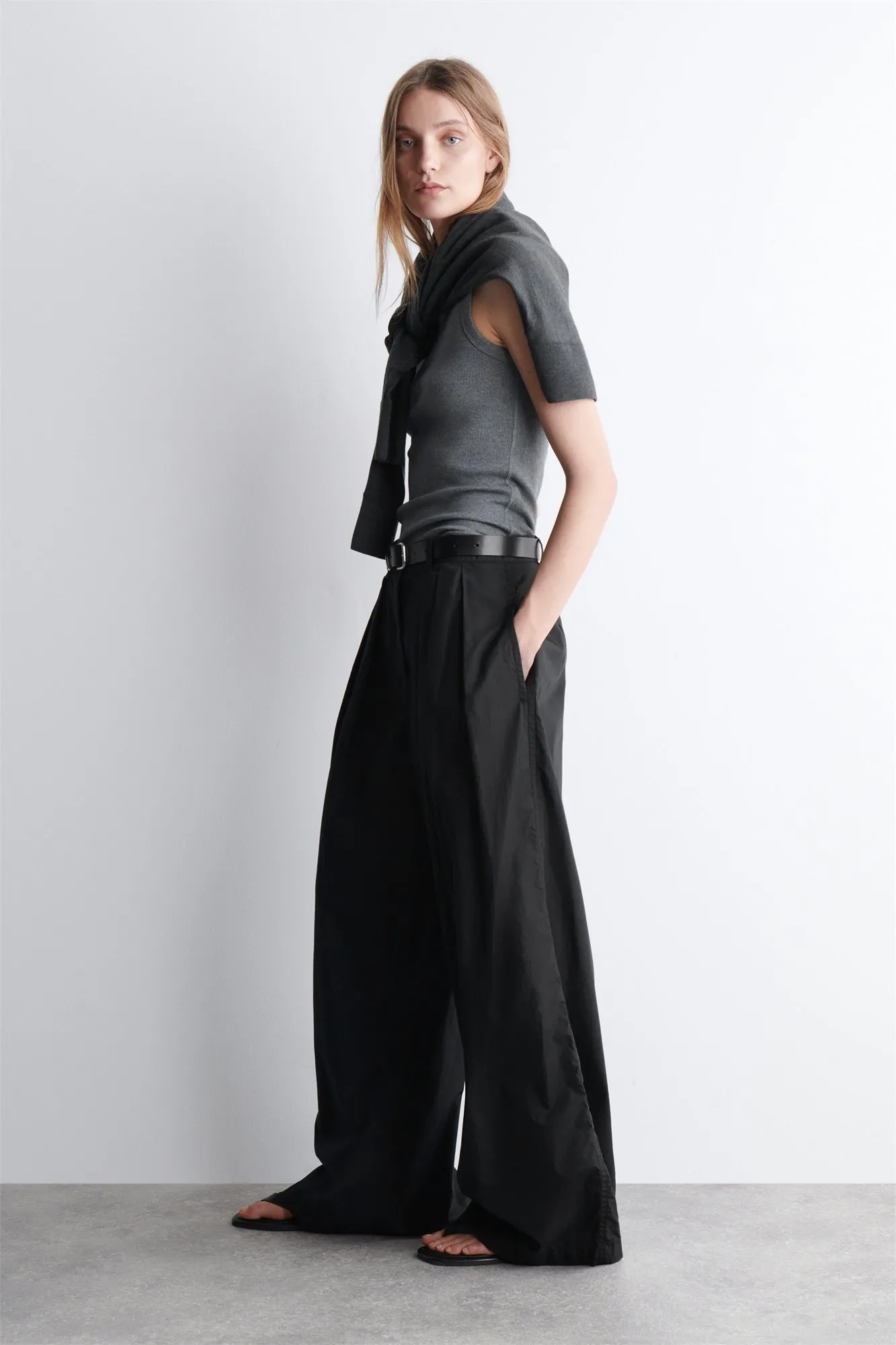 Широкие брюки — настоящая классика гардероба COS. Эта модель, выполненная из легкого хлопка пима, имеет складки спереди для дополнительного объема. Сочетайте их с рубашкой и мюлями.