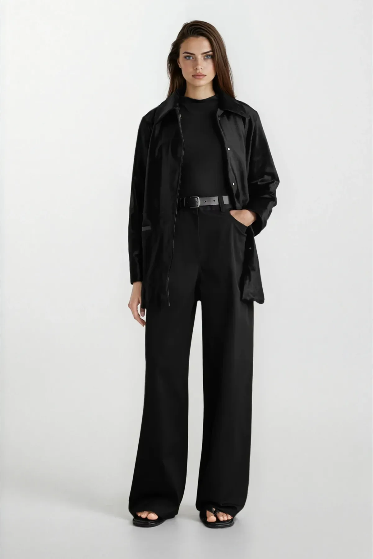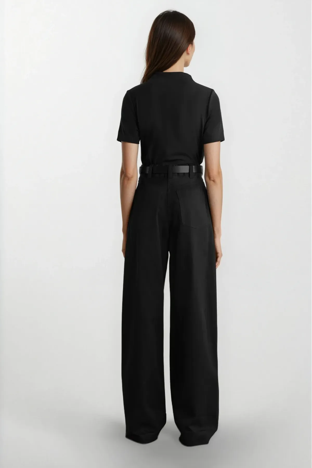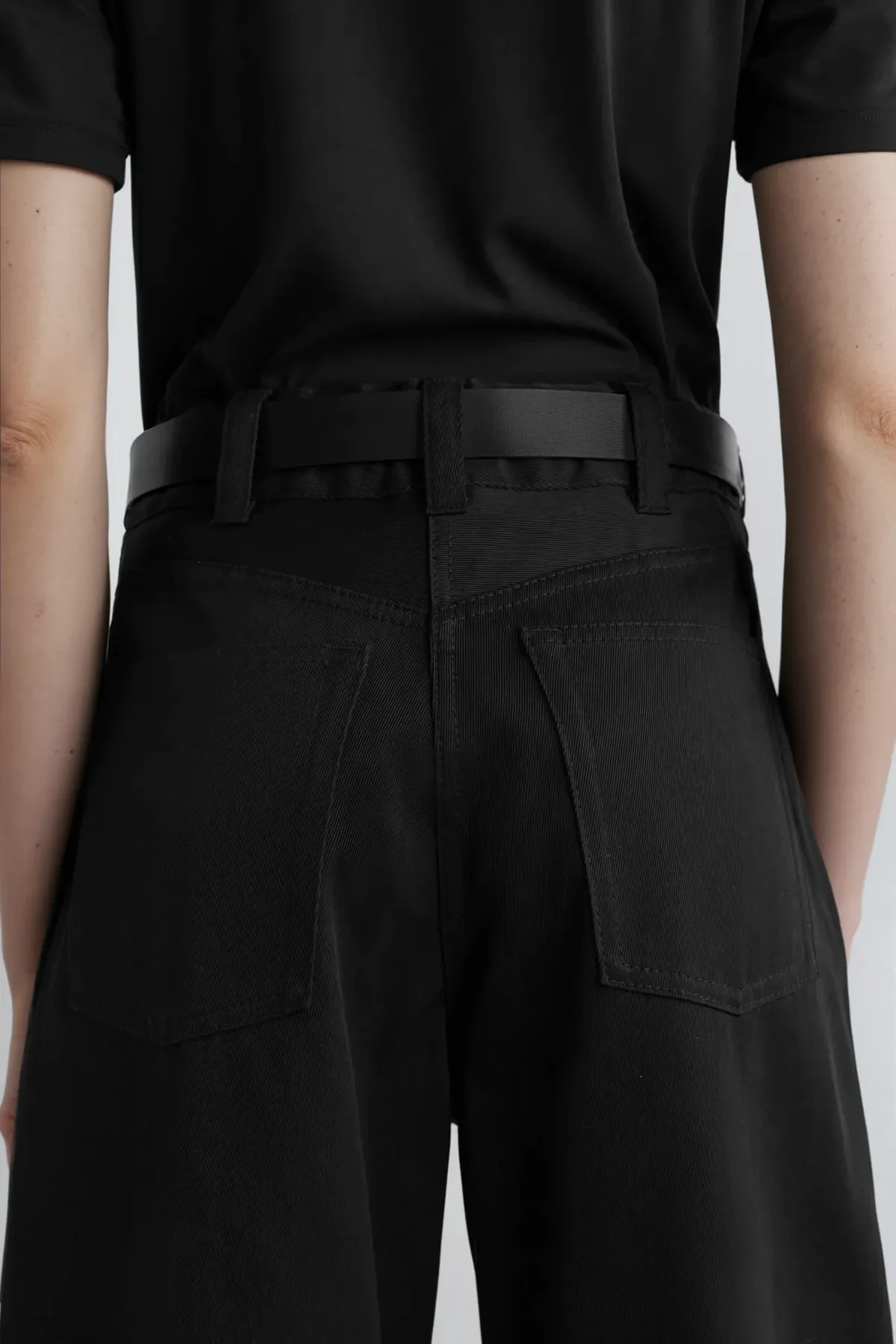 Эти брюки представляют собой идеальный баланс между изысканностью и легкостью. Модель с пятью карманами выполнена из чистого хлопка, имеет широкие штанины, шлевки для ремня и отделочную строчку в тон. Пояс застегивается на крючок и молнию.