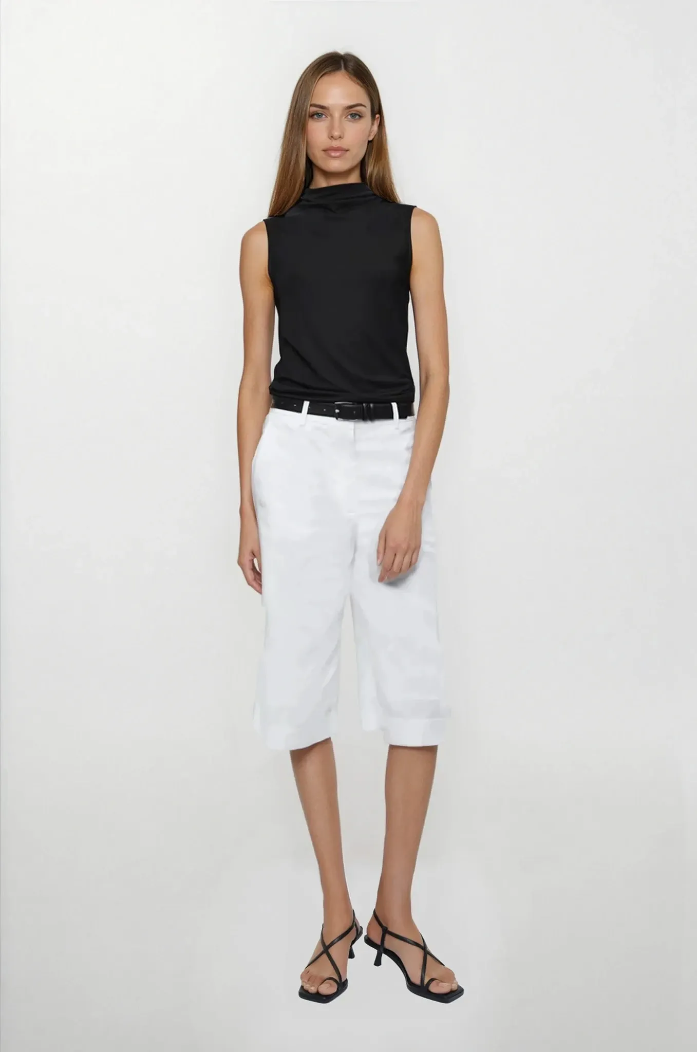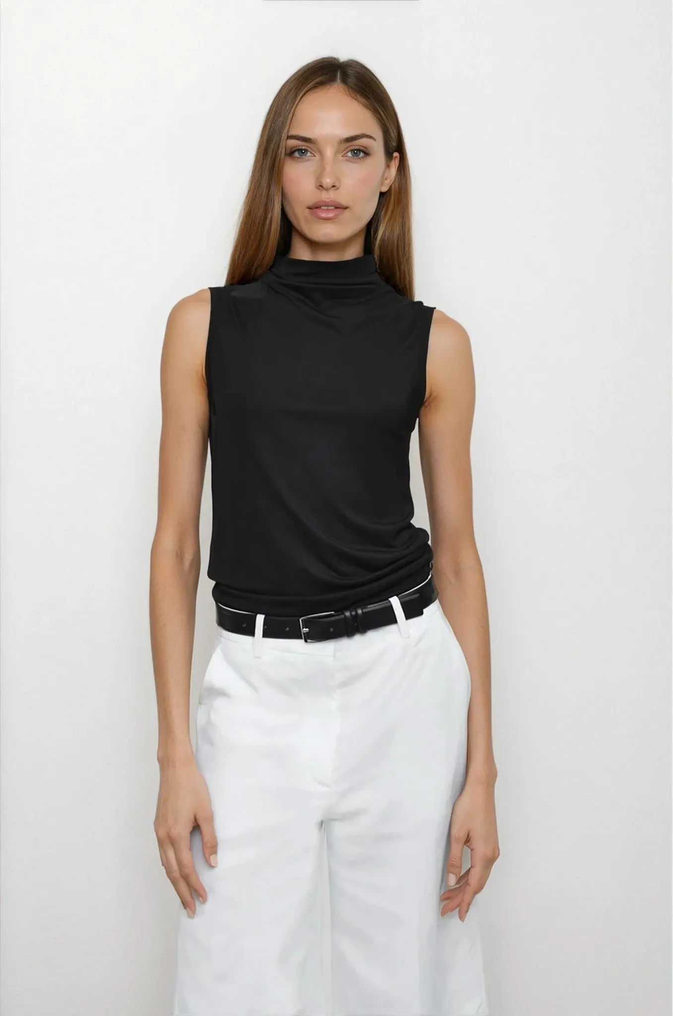 Изысканные базовые модели — это простой способ добавить интереса к наряду. Этот топ изготовлен из лиоцелла TENCEL™ и имеет облегающий крой, подчеркивающий стройный силуэт. Он выполнен в стойком черном цвете и имеет слегка драпированный высокий вырез.