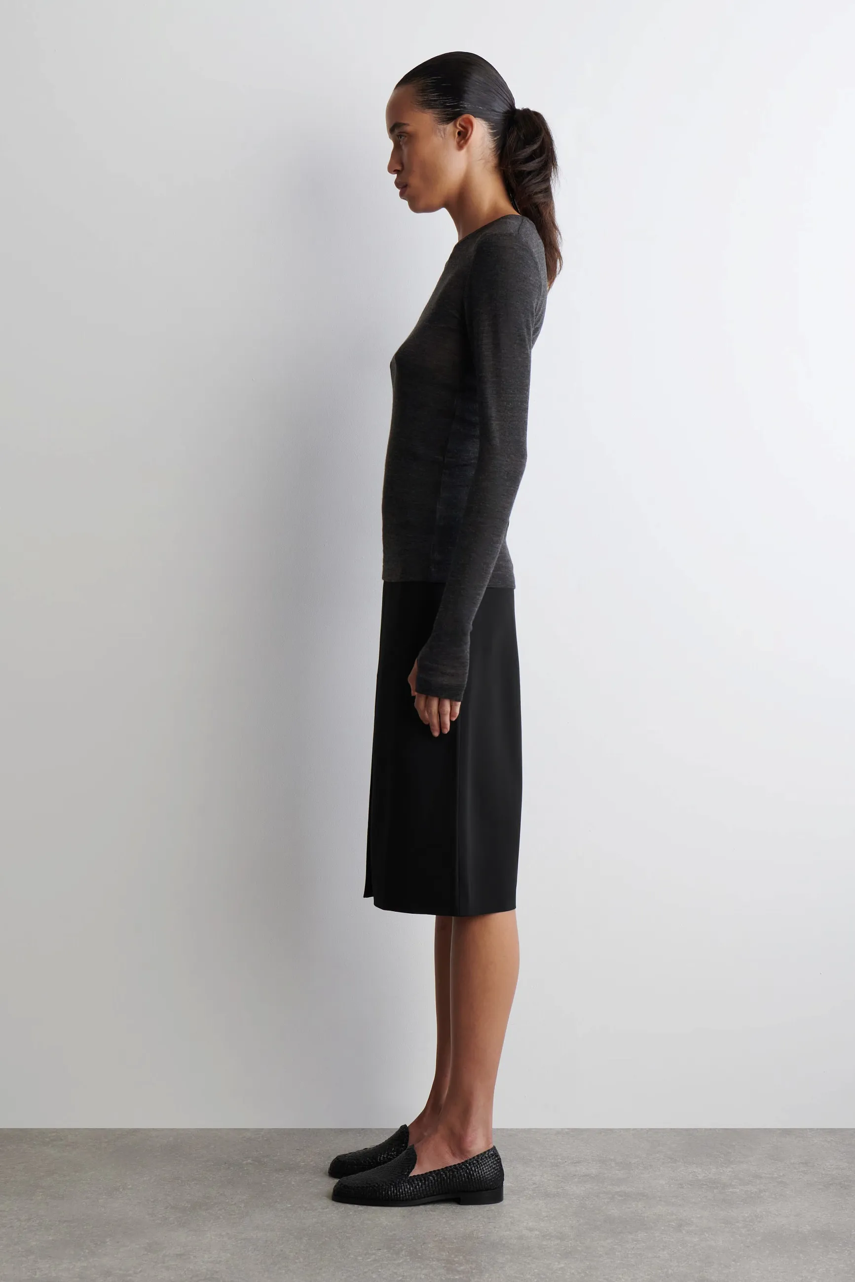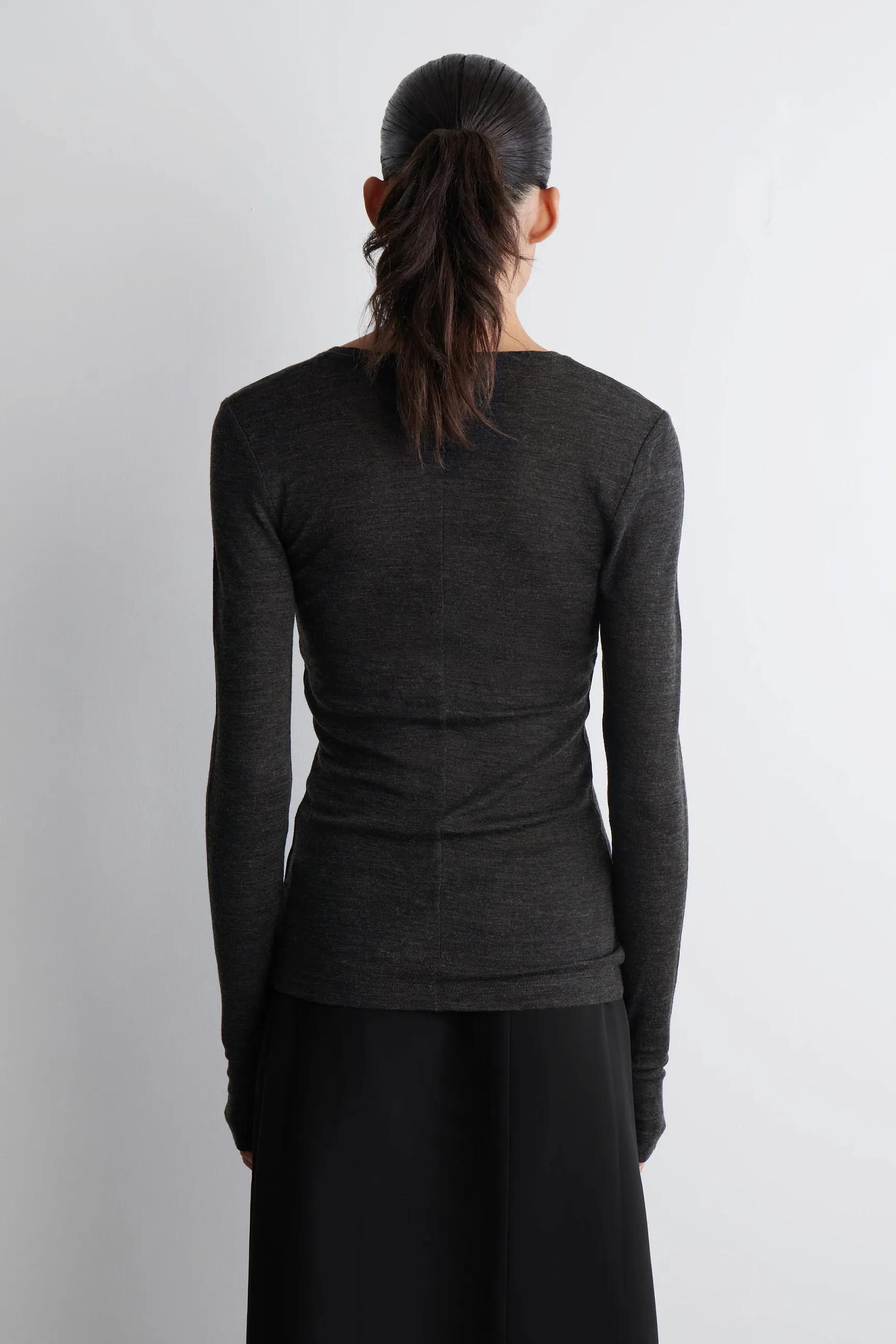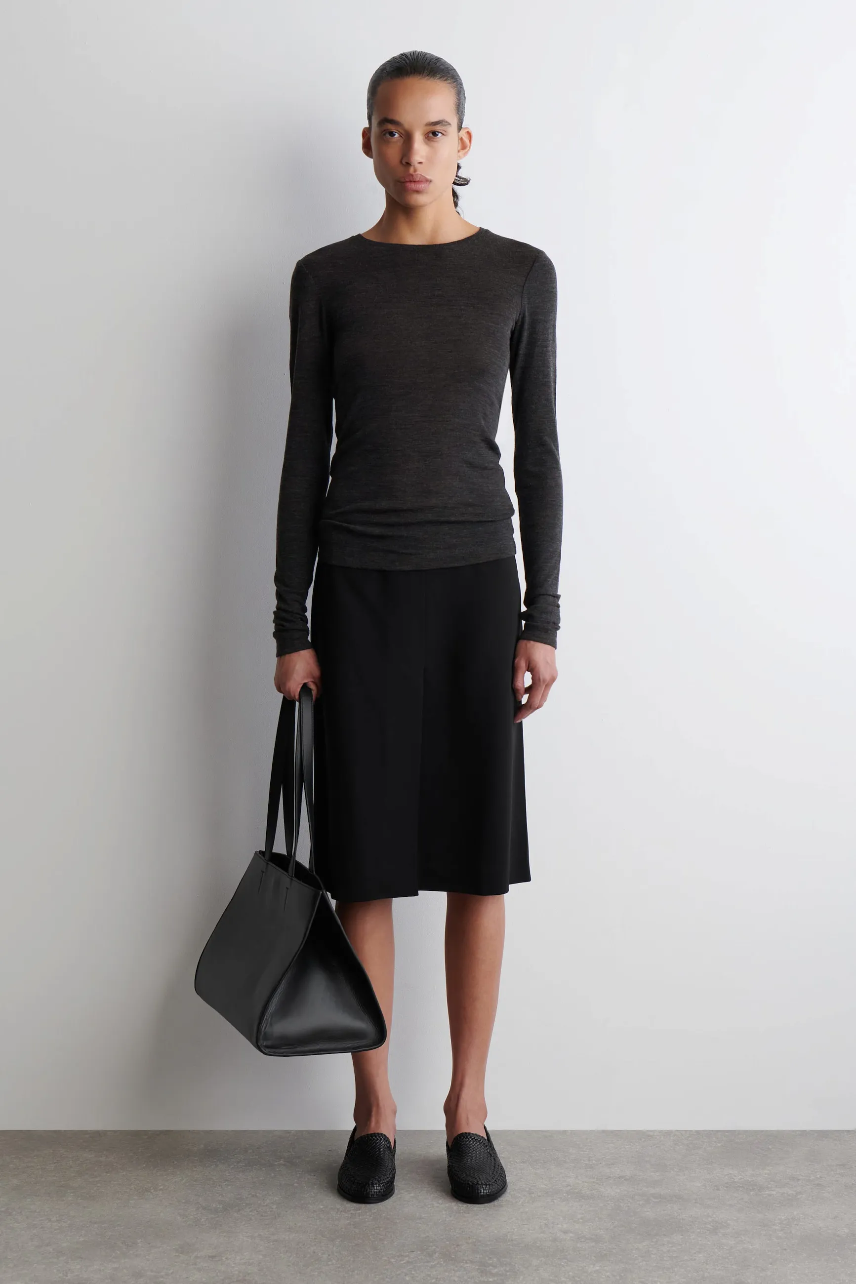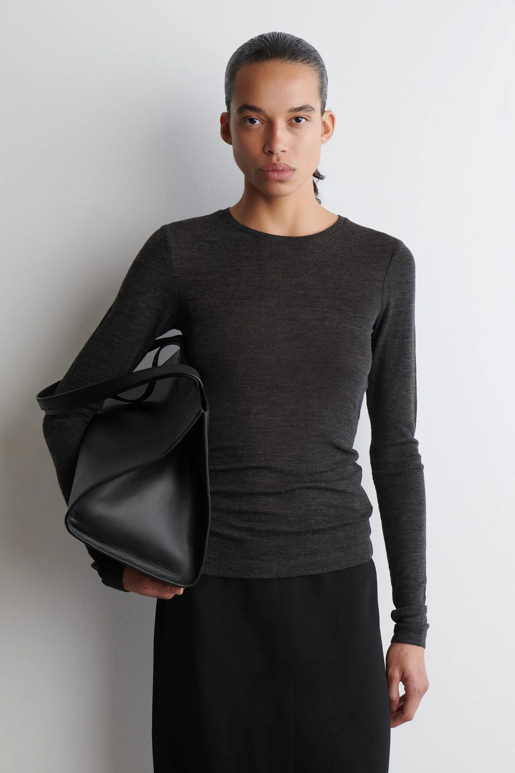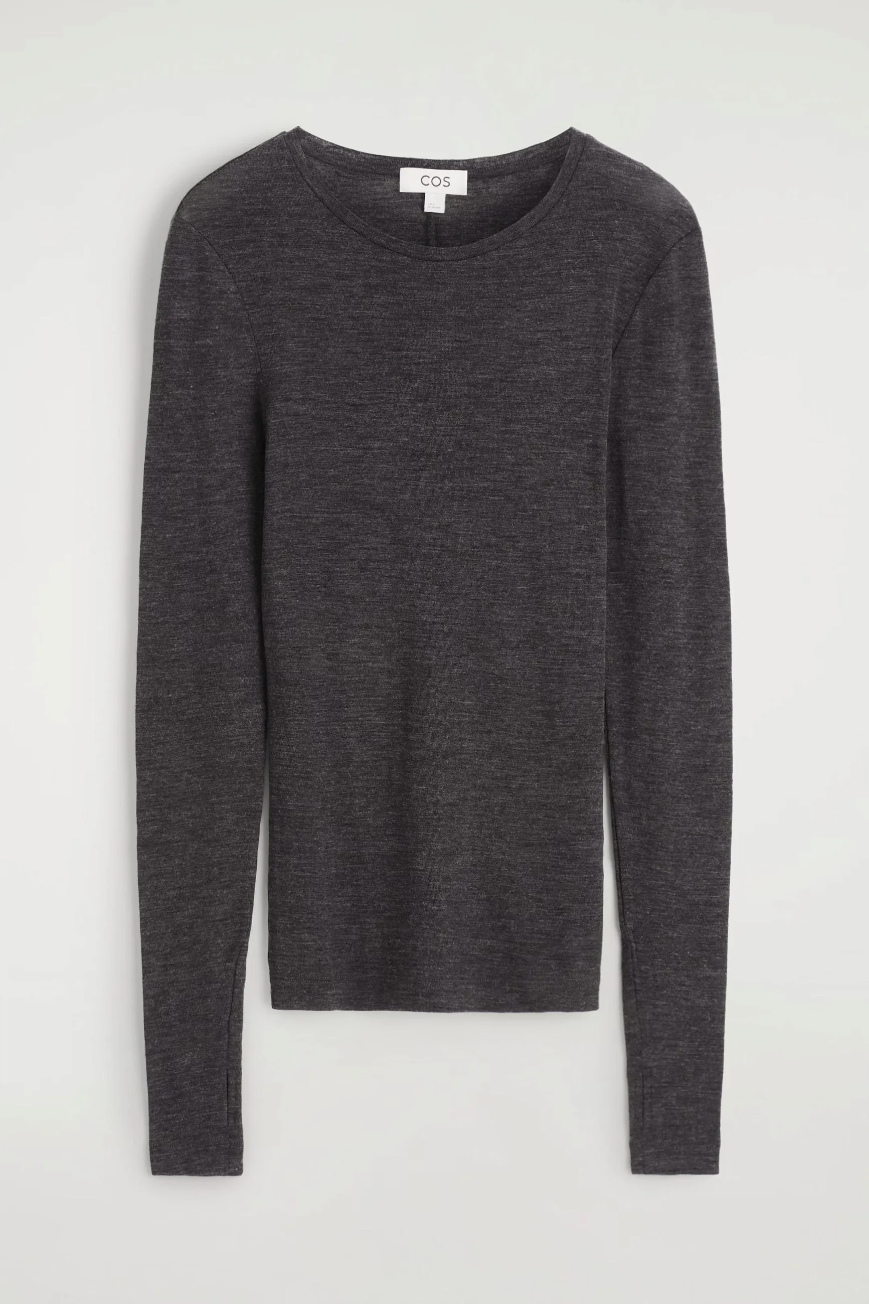 Представляем капсульный гардероб: сезонное обновление классических моделей COS. Этот лонгслив с длинными рукавами — изысканная базовая вещь. Он сшит из высококачественной мериносовой шерсти, которая отличается лёгкостью, комфортом и непревзойдённой мягкостью. Лонгслив с длинными рукавами, манжетами с отверстиями для больших пальцев и облегающим силуэтом идеально подходит для многослойности в образах.