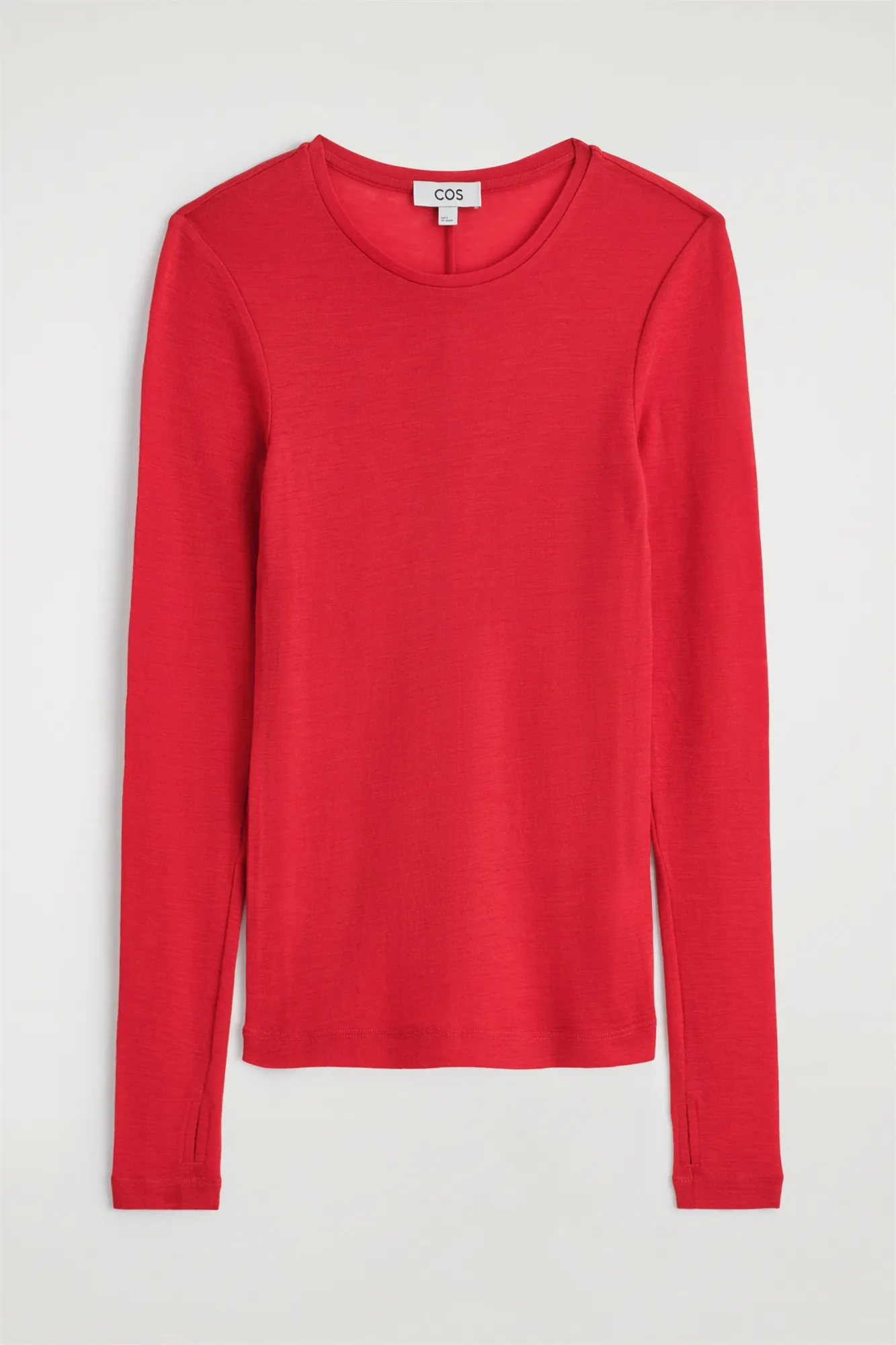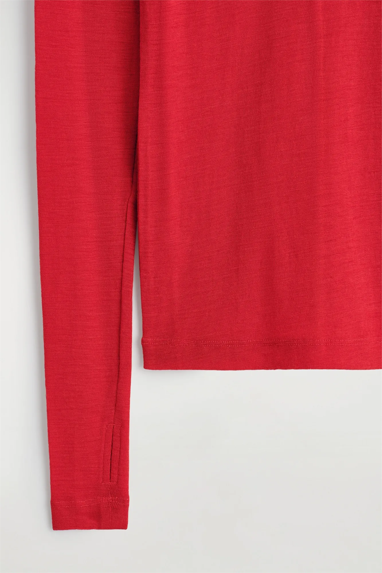 Этот лонгслив станет изысканным базовым элементом любого гардероба. Он изготовлен из высококачественной мериносовой шерсти, известной своей лёгкостью, комфортом и непревзойдённой мягкостью. Кроме того, лонгслив с длинными рукавами, манжетами с отверстиями для больших пальцев и облегающим силуэтом идеально подходит для многослойного ношения.