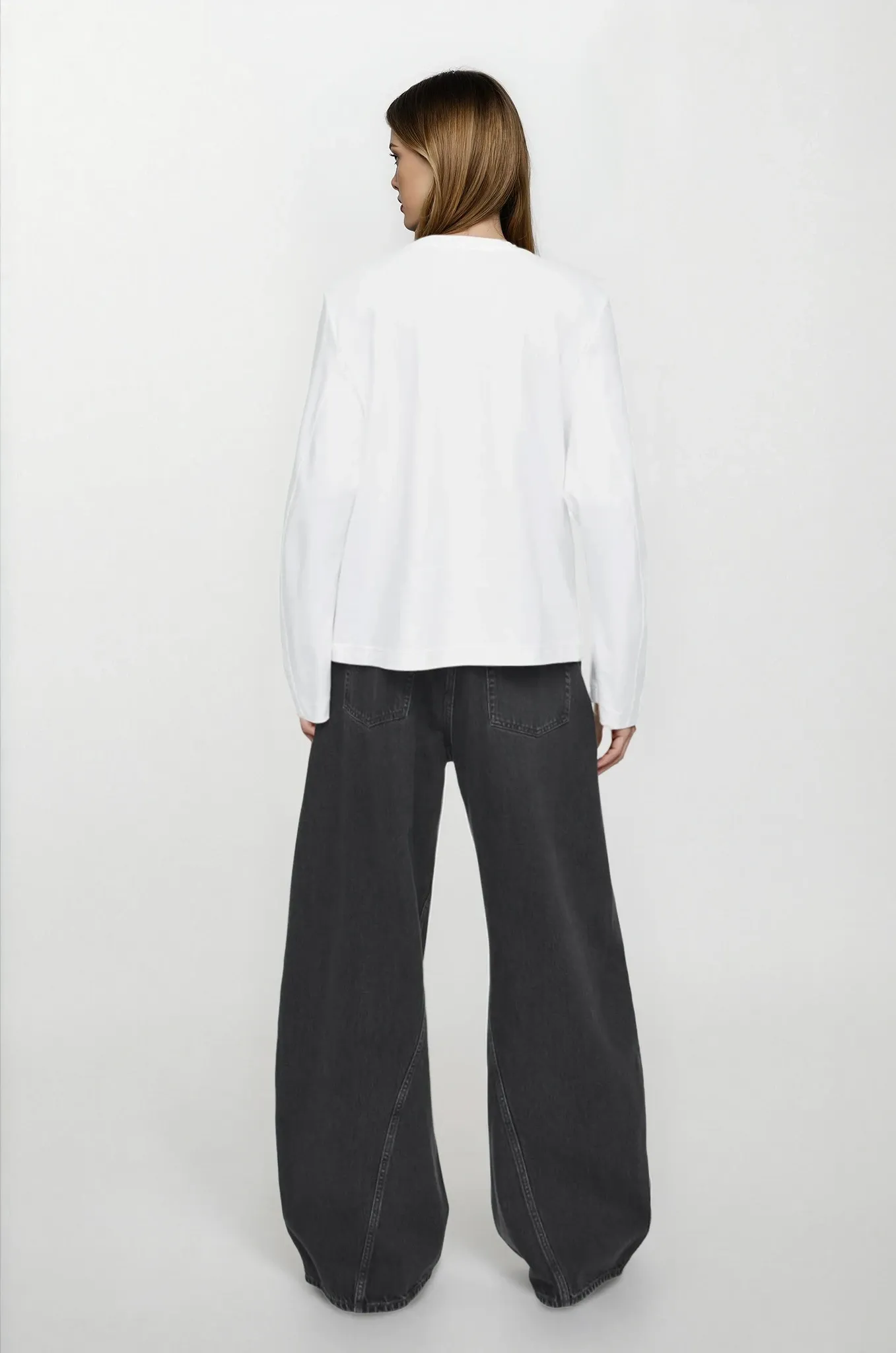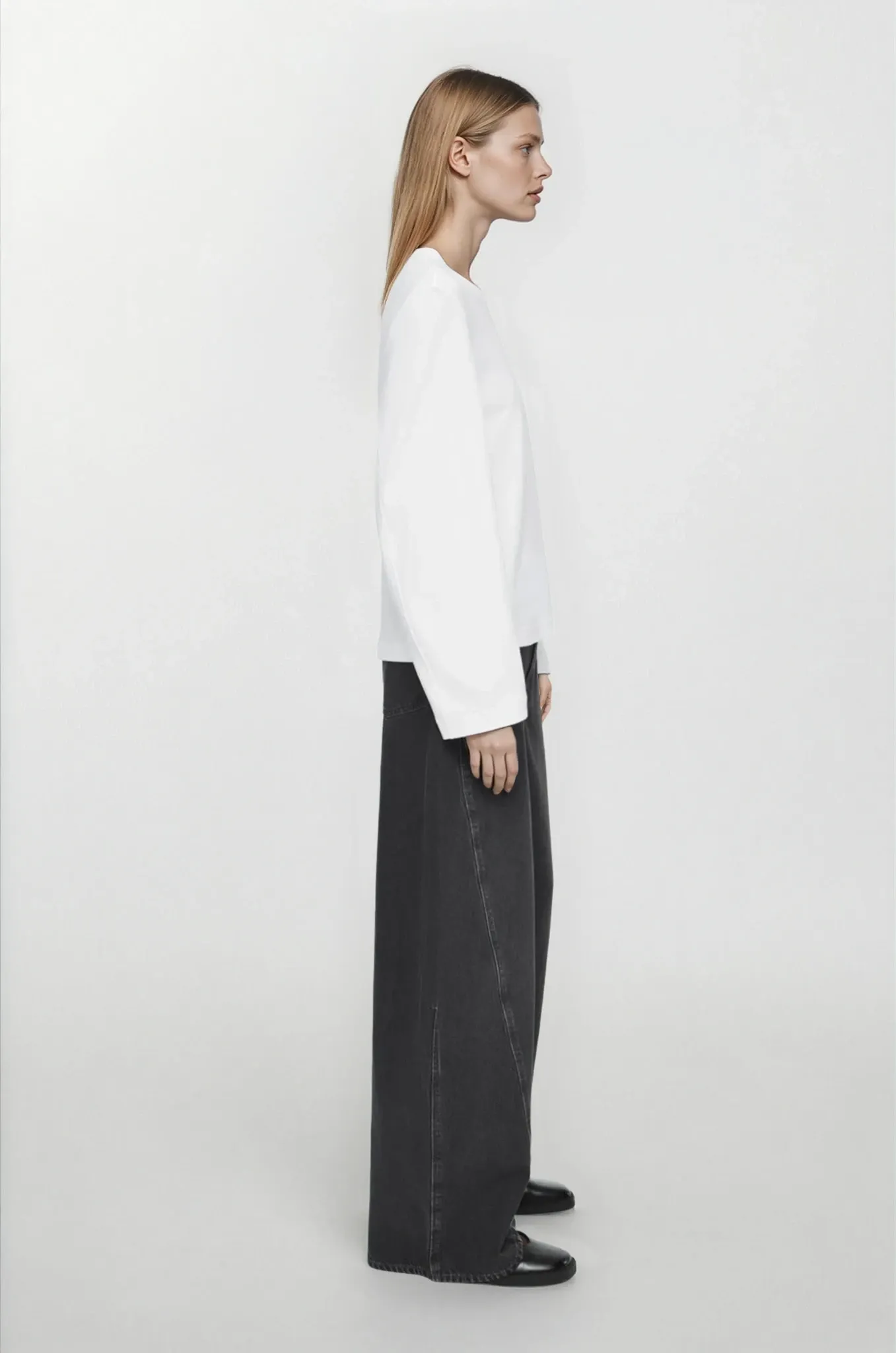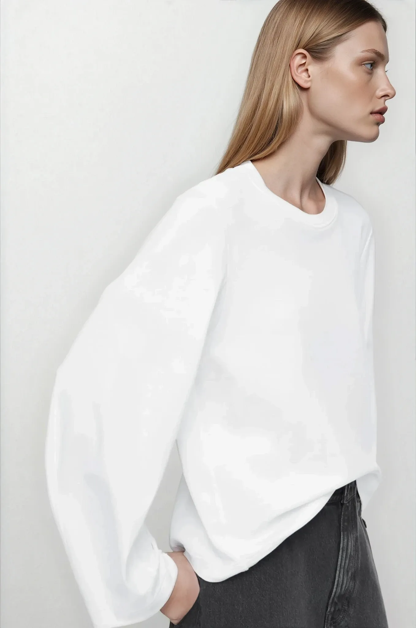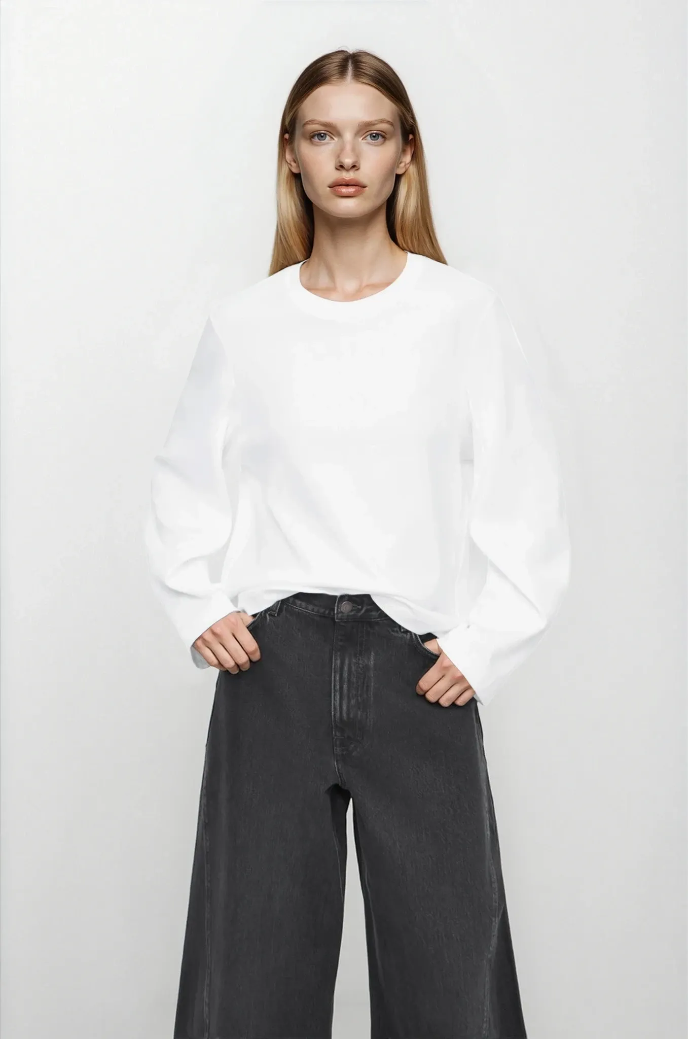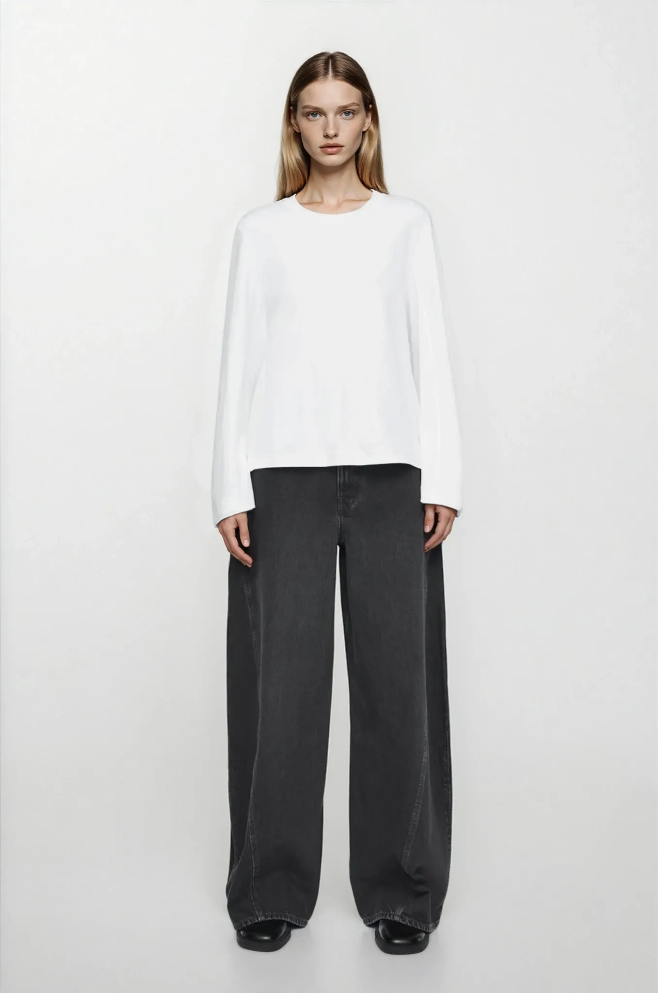 Идеальные основы занимают центральное место в женской коллекции COS. Этот белый лонгслив изготовлен из мягкого хлопкового трикотажа плотностью 220 г/м2 в классическом стиле и имеет закругленные длинные рукава и изогнутые боковые швы.