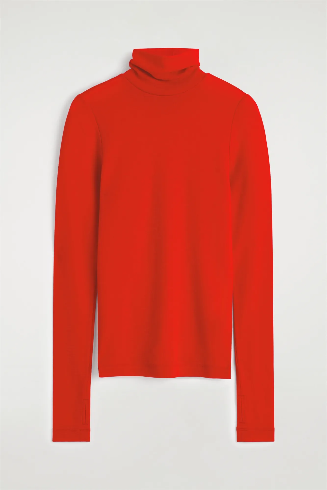 Продуманные базовые вещи составляют важную часть женской коллекции COS. Эта изысканная водолазка изготовлена из высококачественной шерсти плотностью 165 г/м². Она имеет отверстия для больших пальцев на манжетах и двойной высокий воротник. Благодаря облегающему силуэту и невероятно легкой ткани, она идеально подходит для создания продуманных многослойных образов.