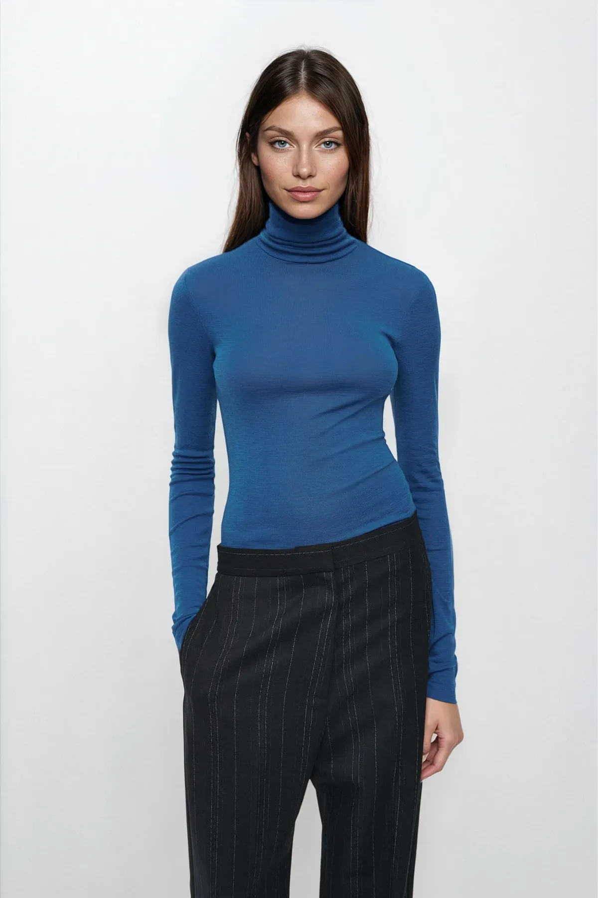 Эта классическая вещь, предлагаемая в ярком кобальтовом цвете, изготовлена из чистой мериносовой шерсти и имеет высокий воротник-стойку. Она имеет аккуратный облегающий крой, что делает ее идеальной многослойной вещью для межсезонья.