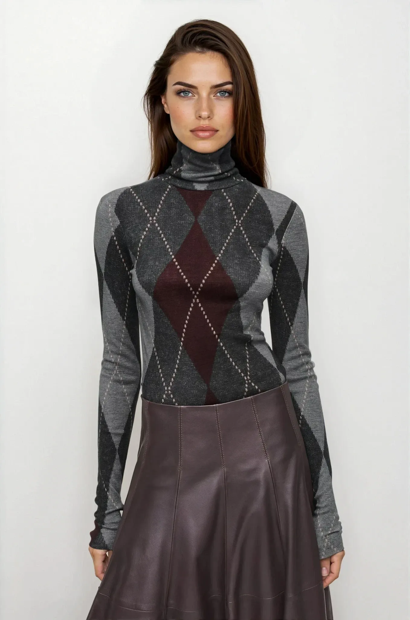 Эта водолазка с узором, предлагаемая в модернизированной вязке Argyle, изготовлена из чистой мериносовой шерсти и имеет высокий воротник-стойку. Она имеет аккуратный облегающий крой, что делает ее идеальным многослойным предметом одежды для межсезонья.
