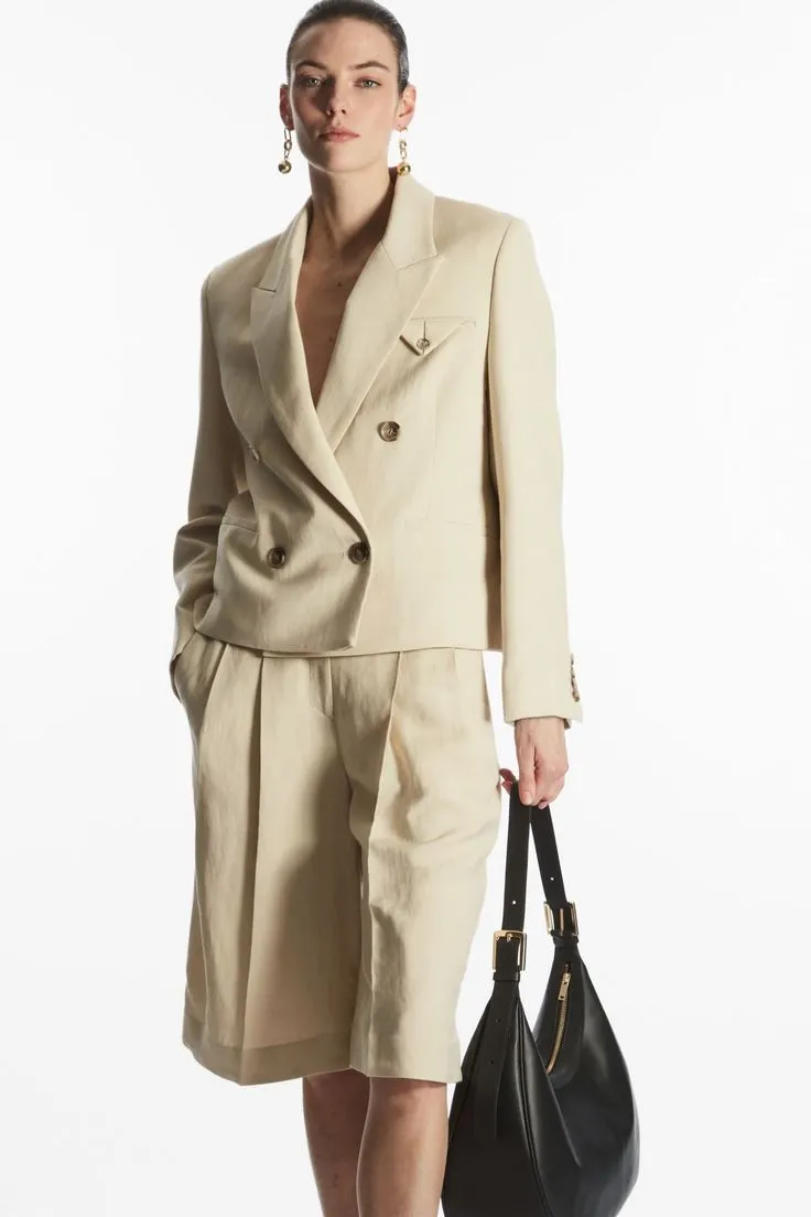 Двубортный укороченный пиджак из льна COS