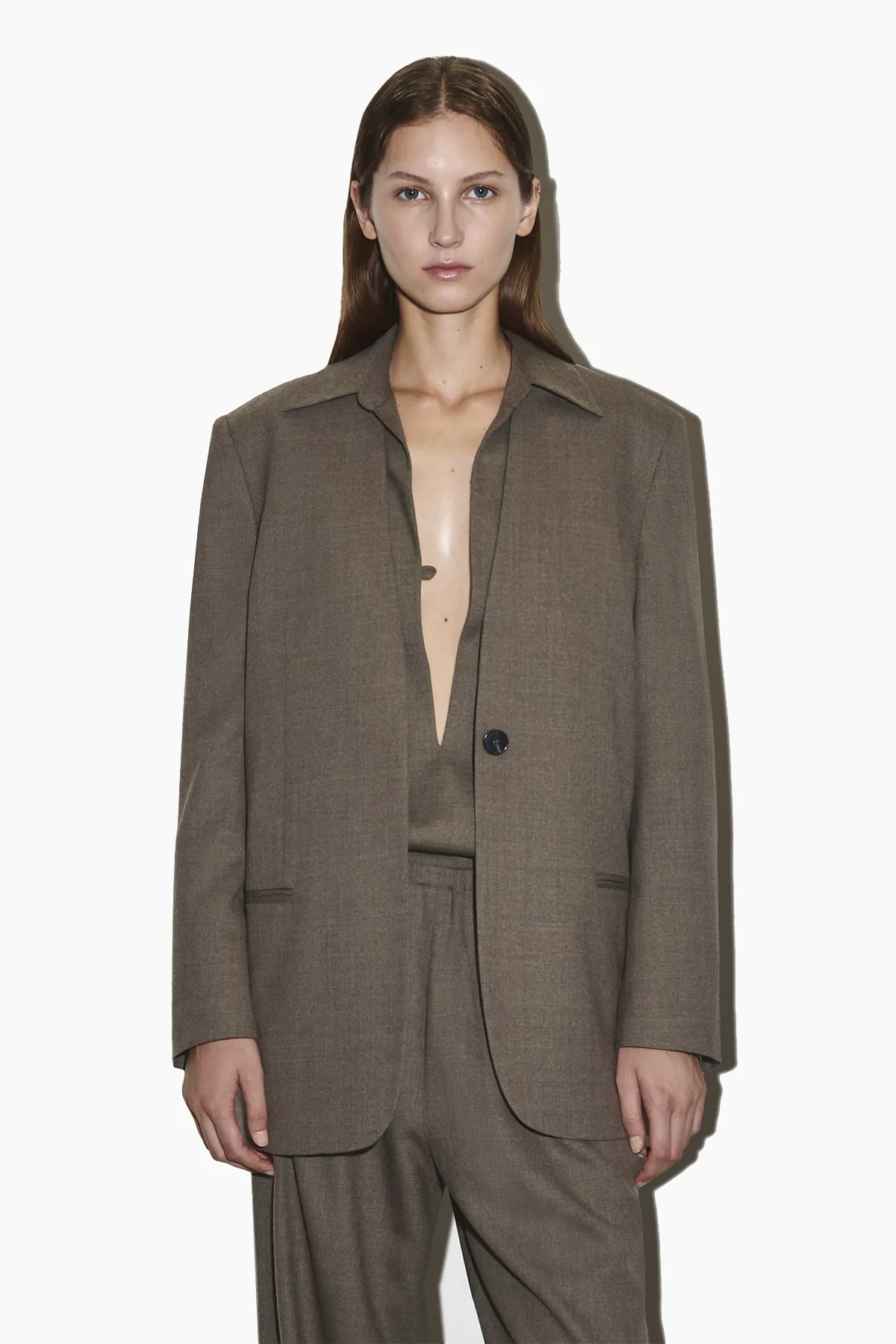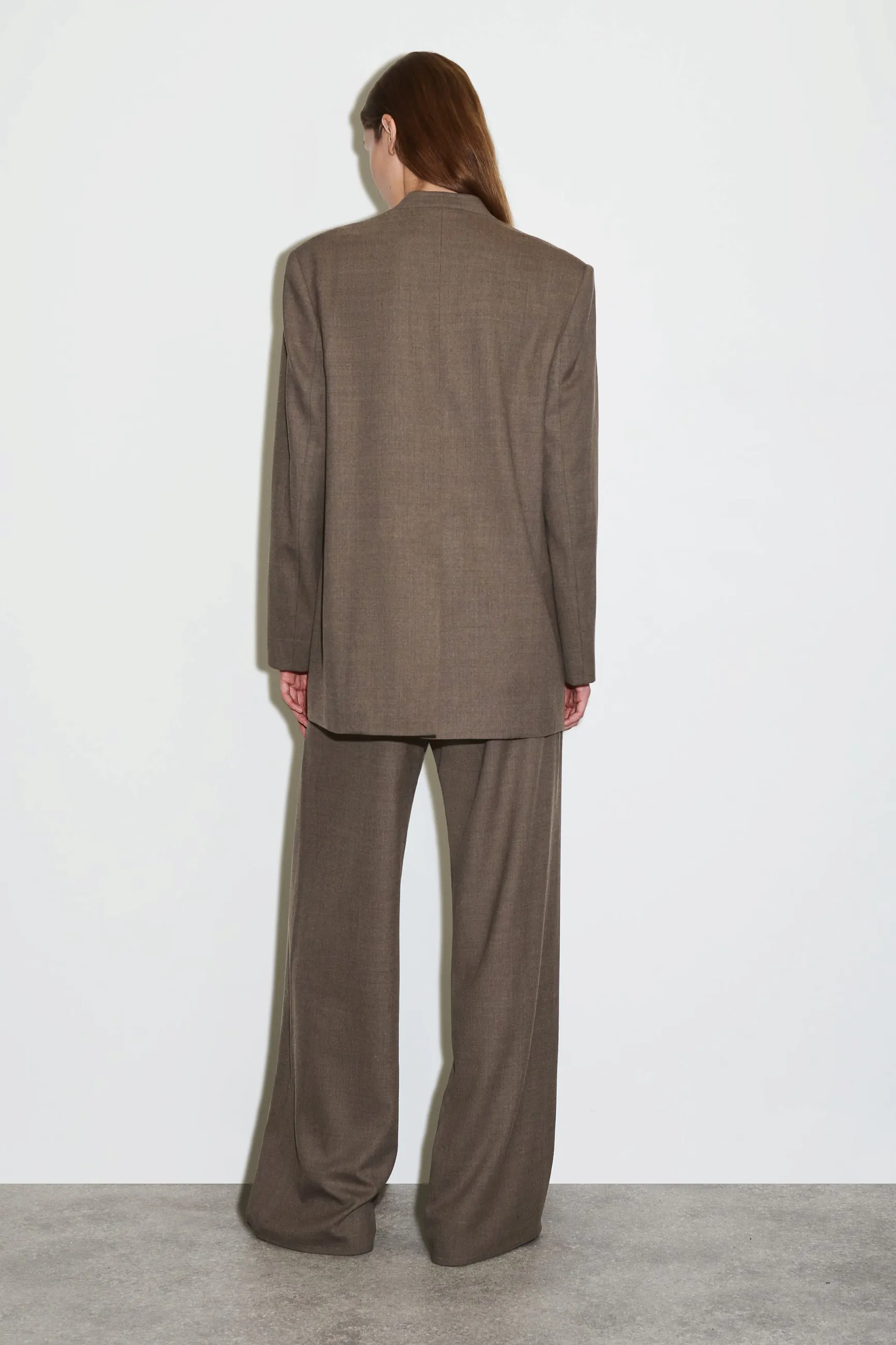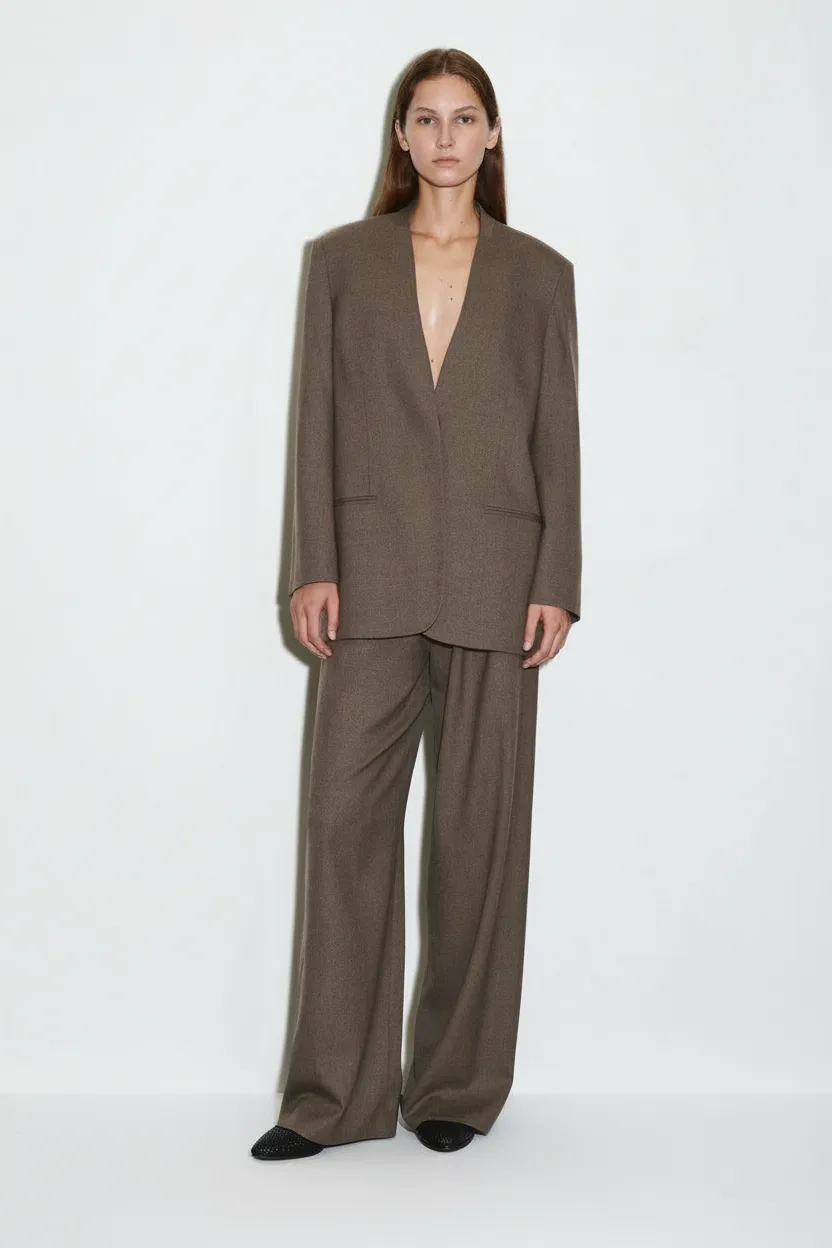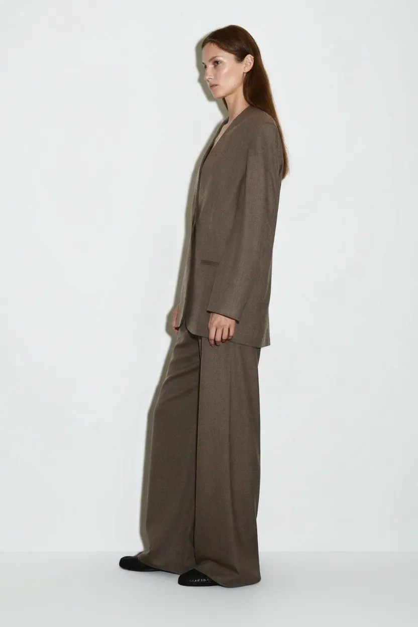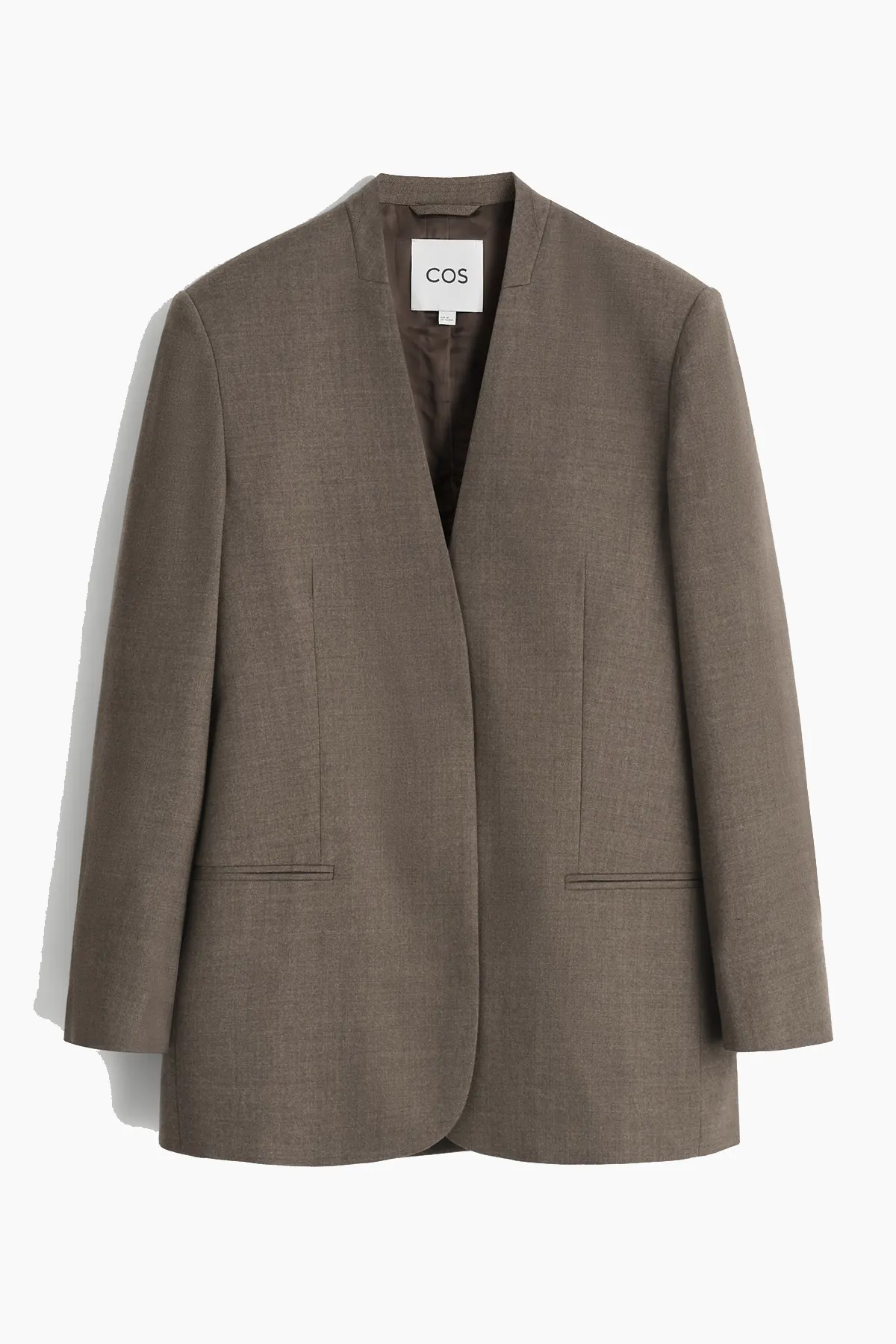 Коллекция классических моделей этого сезона отличается изысканными силуэтами и продуманными элементами дизайна. Этот элегантный пиджак без воротника из струящейся шерстяной ткани RWS отличается строгими вытачками и потайными пуговицами, что создаёт особенно сдержанный образ. Сочетайте его с подходящими брюками.