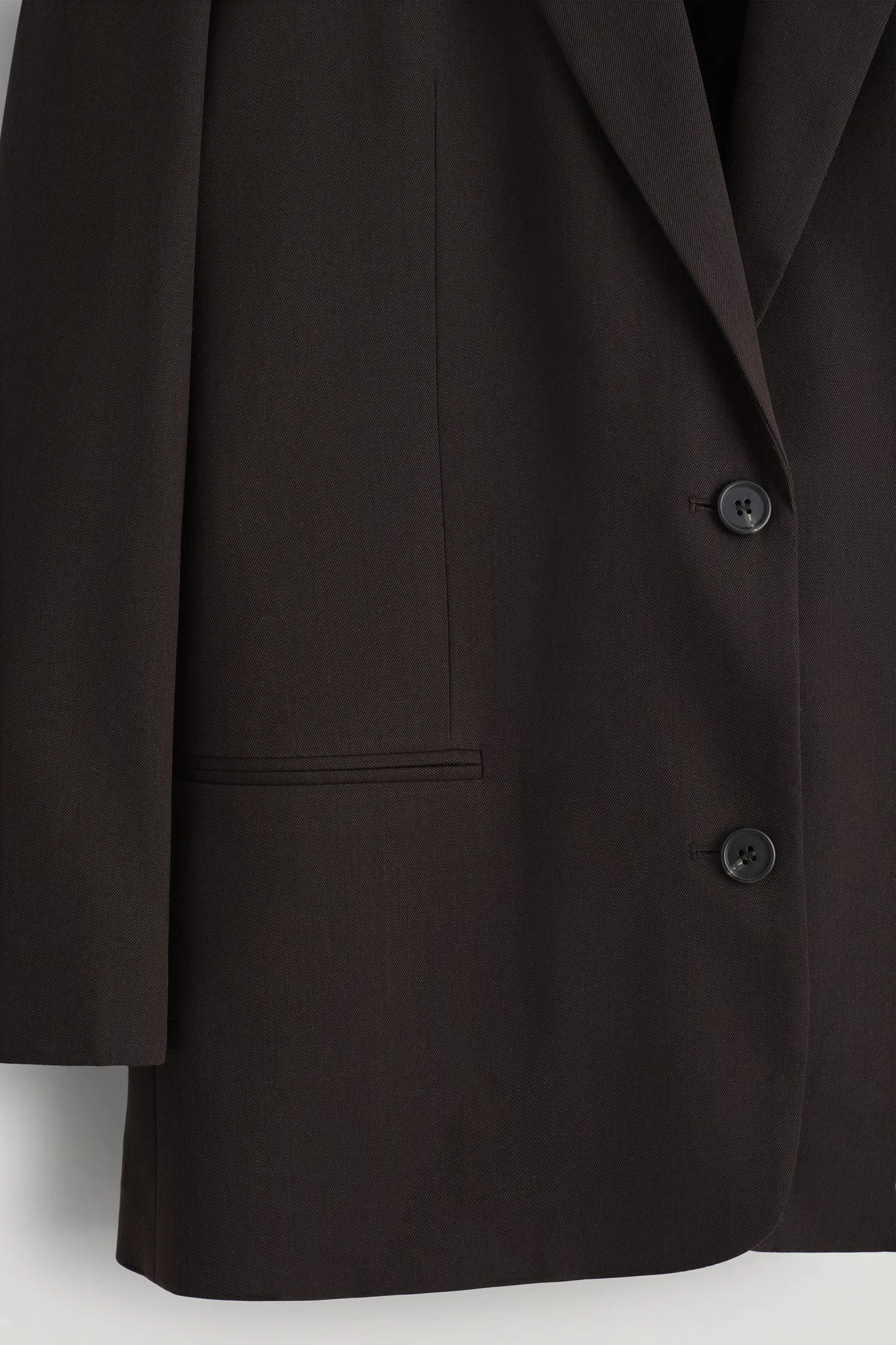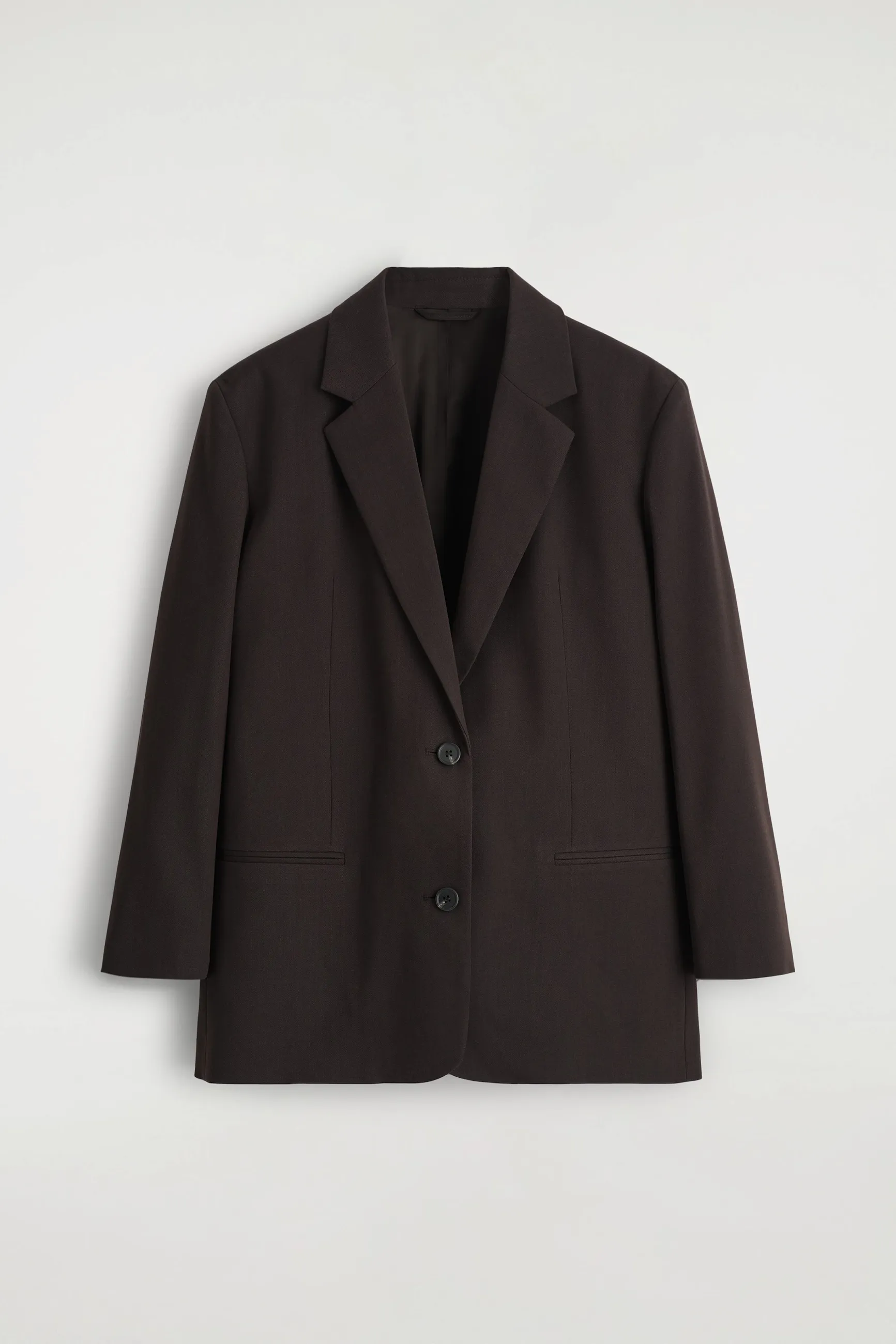 Представляем капсульный гардероб: сезонную эволюцию постоянных икон COS. Этот современный пиджак, выполненный в насыщенном кофейном оттенке, отличается строгим кроем с острыми лацканами, подчеркивающими талию вытачками и подкладкой для легкого создания многослойности. Он изготовлен из мериносовой шерсти, отобранной вручную за ее естественную легкость и изысканную отделку.