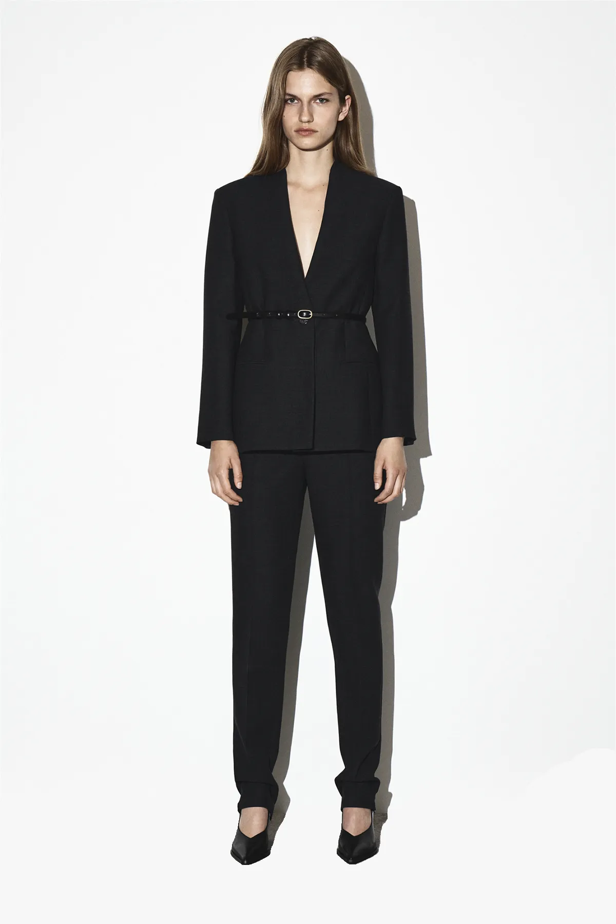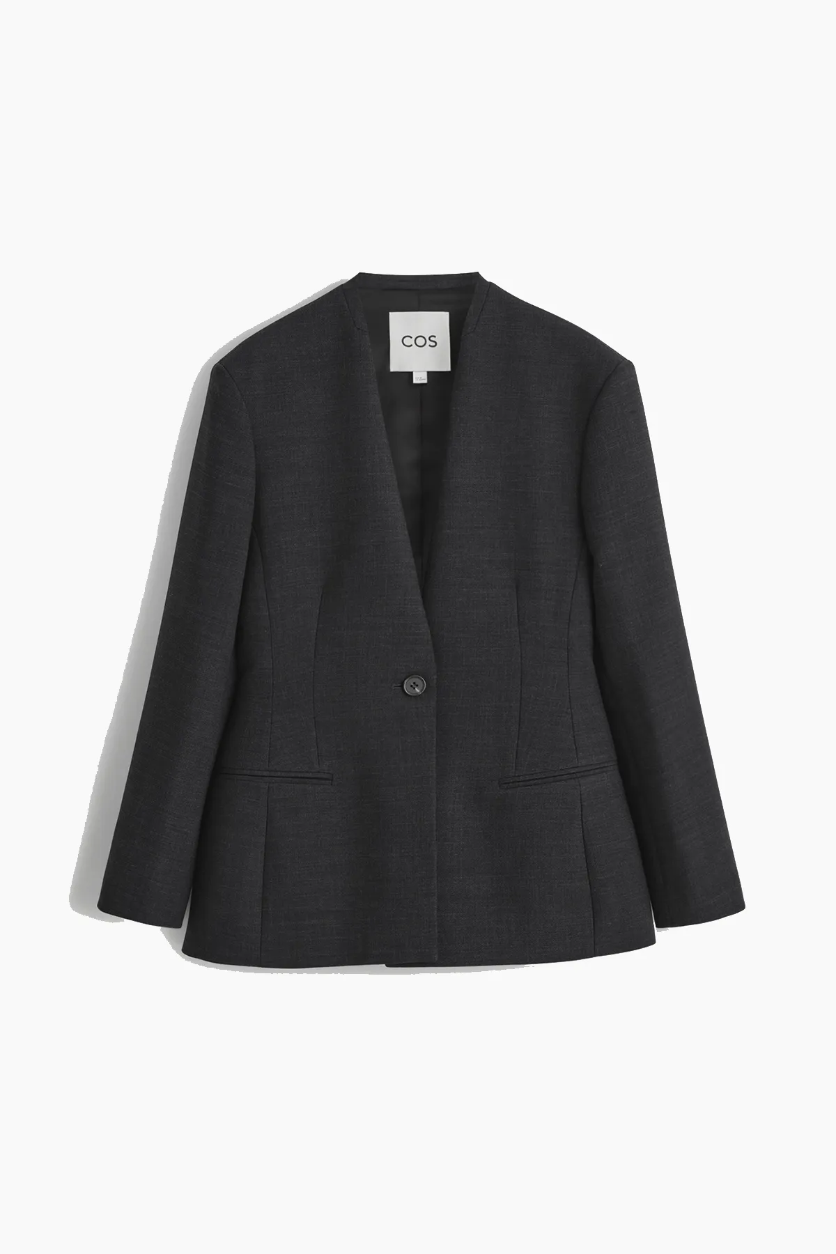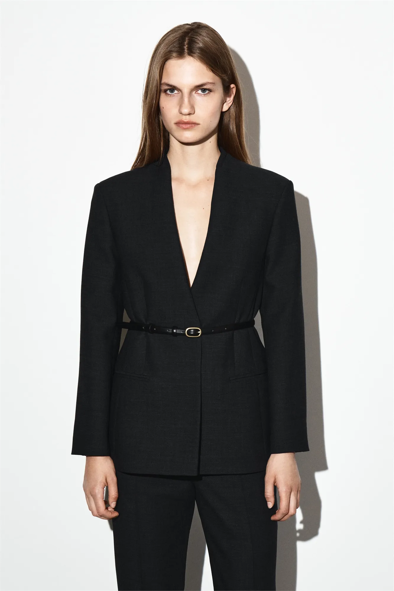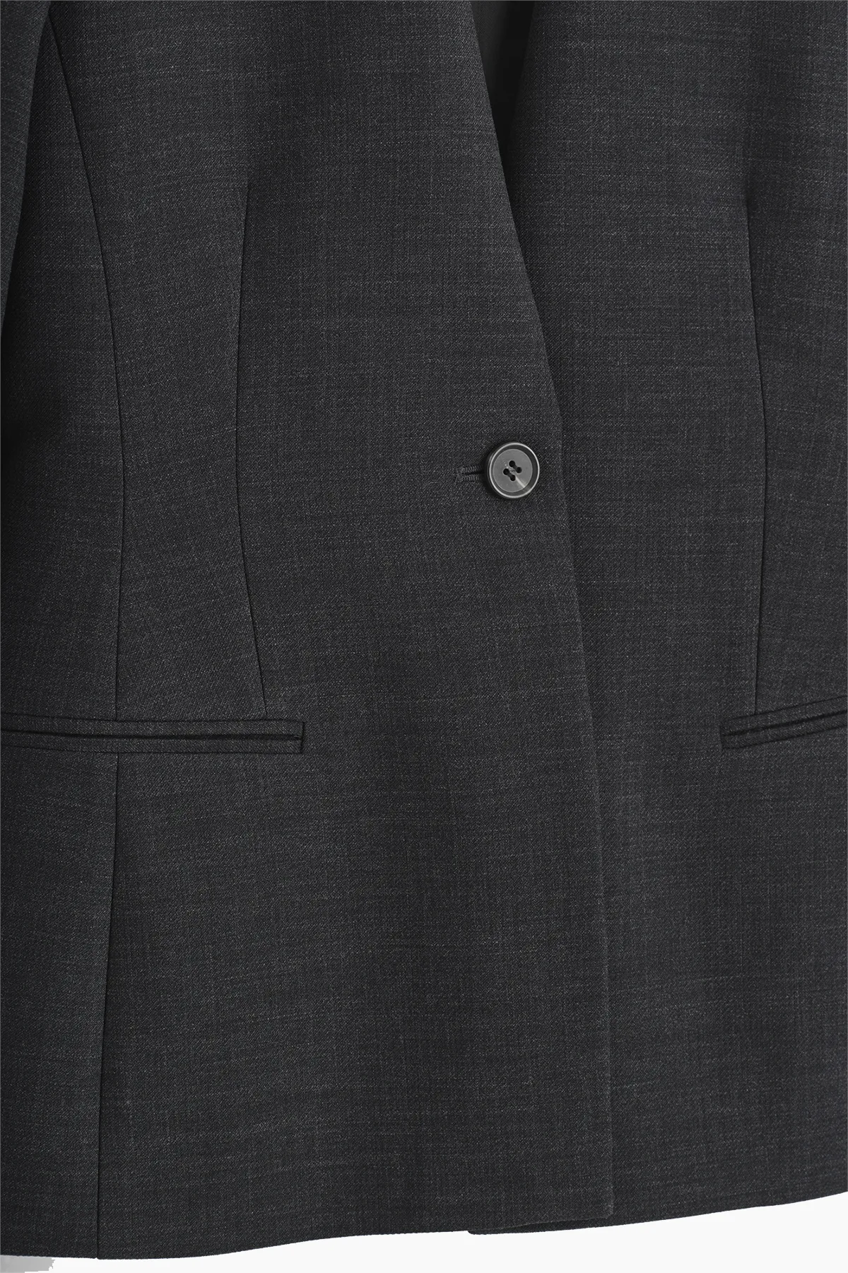 В этом сезоне коллекция классических моделей COS характеризуется приталенными силуэтами. Этот изысканный пиджак выполнен из шерстяной смеси RWS и имеет скульптурный силуэт. Вытачки и швы точно подчеркивают талию. Структурированные плечи и вырез без воротника завершают образ. Сочетайте его с подходящими брюками.