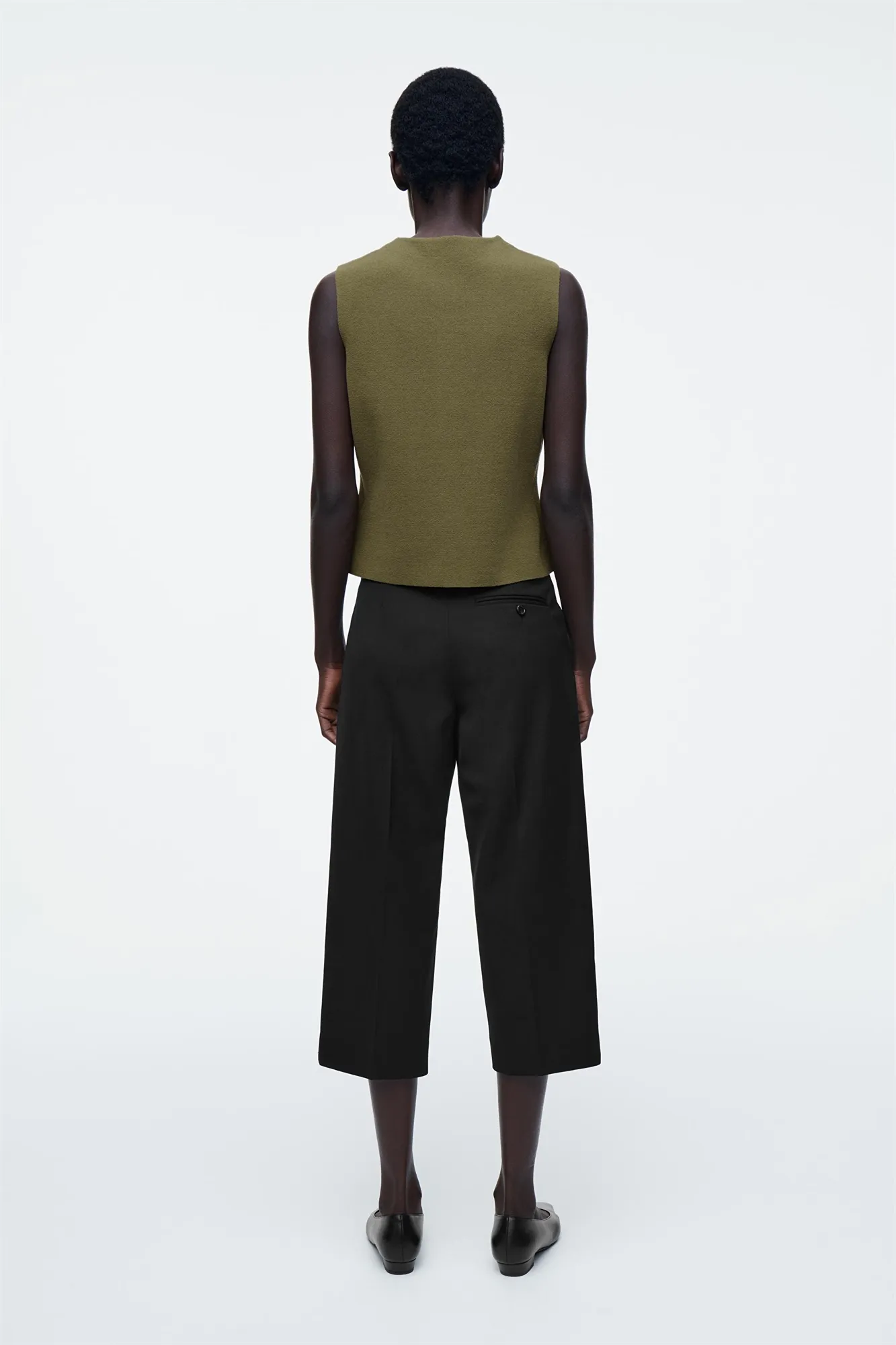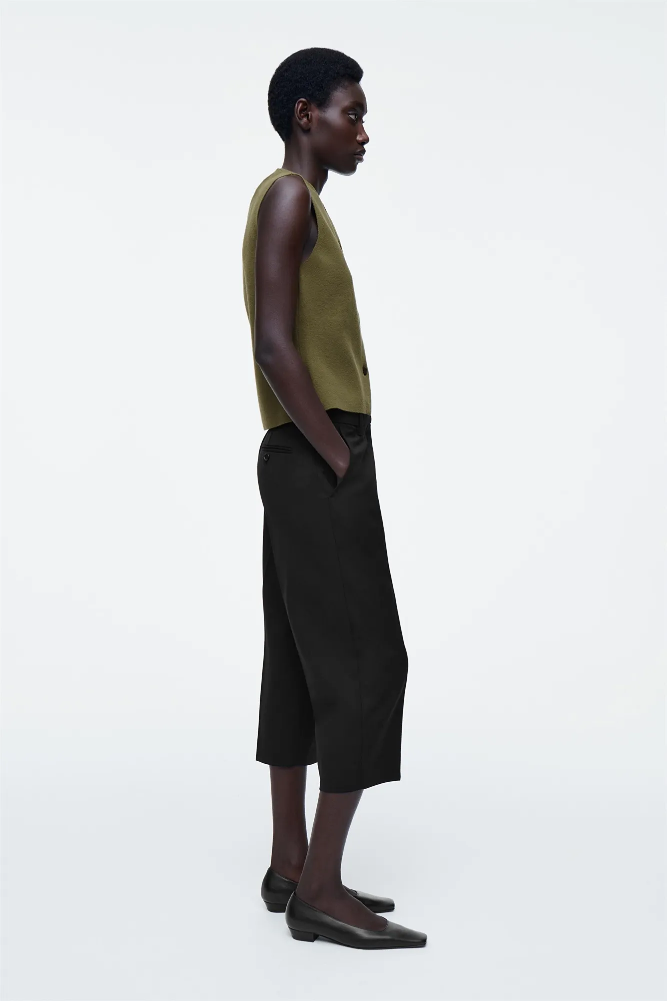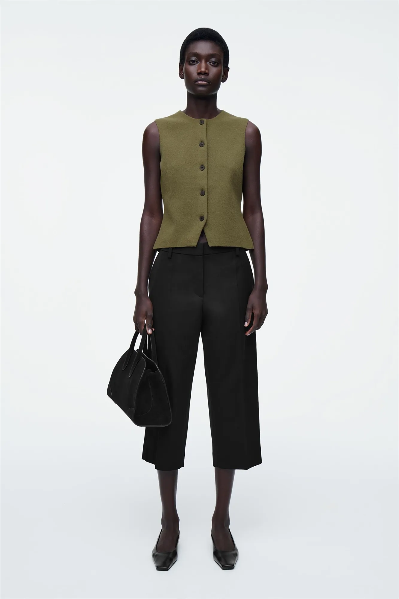 Коллекция одежды COS отличается чистотой линий и сдержанной простотой. Этот трикотажный жилет из хлопка оливкового цвета имеет круглую горловину и V-образный вырез по подолу. Сочетайте их с джинсами или брюками.