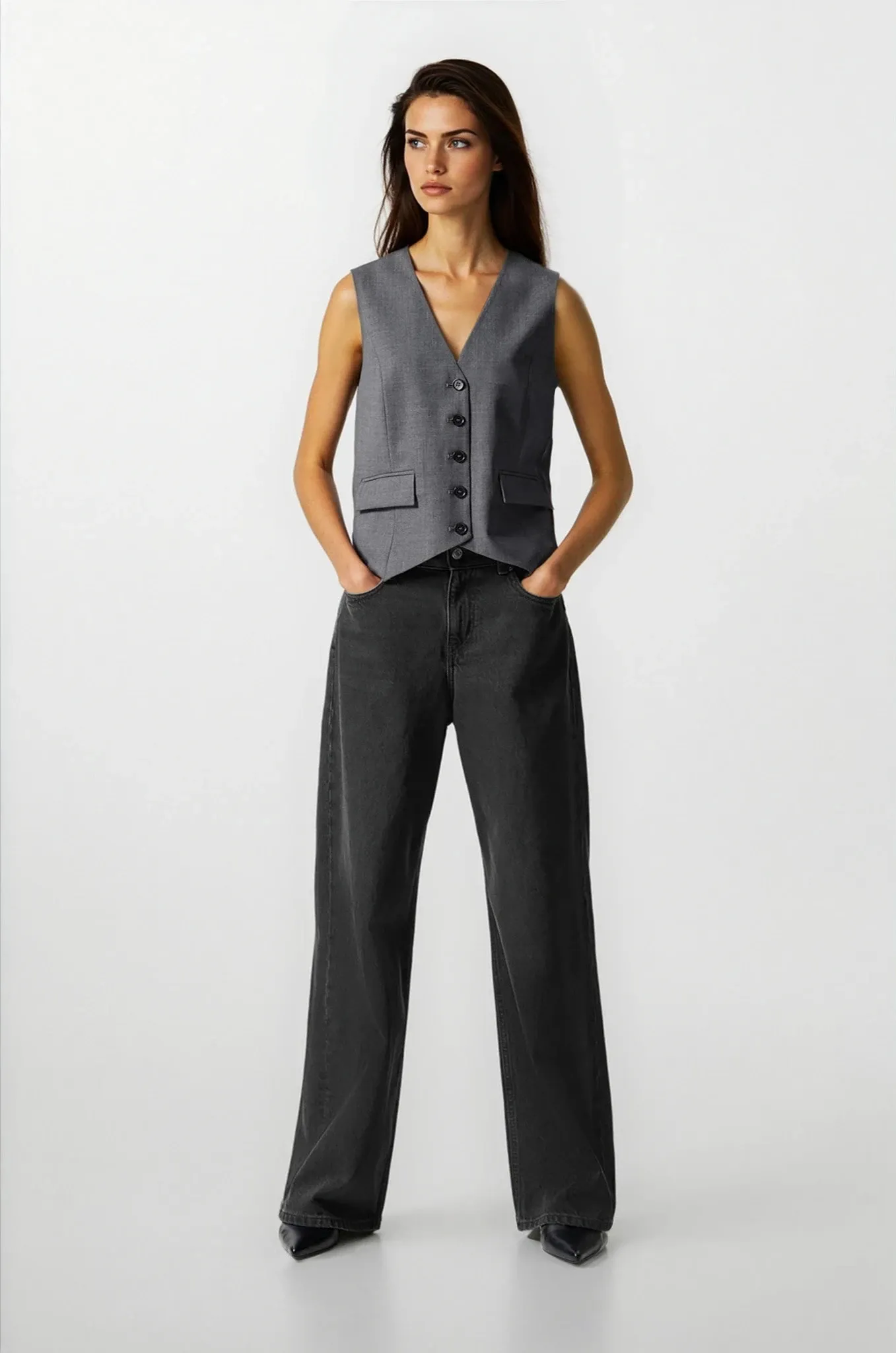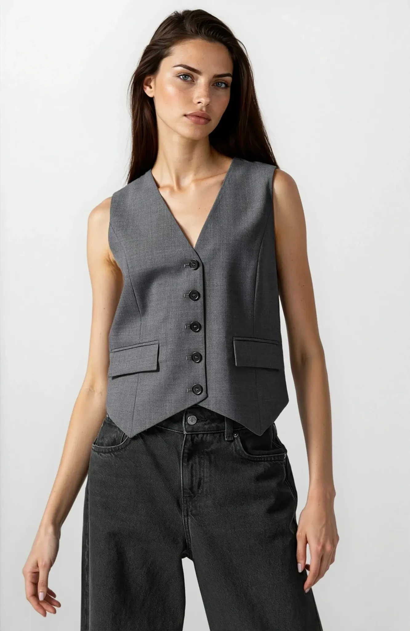 Жилет из шерстяной ткани с узором, застегивающийся на пуговицы по центру спереди. Собери образ с подходящими брюками.