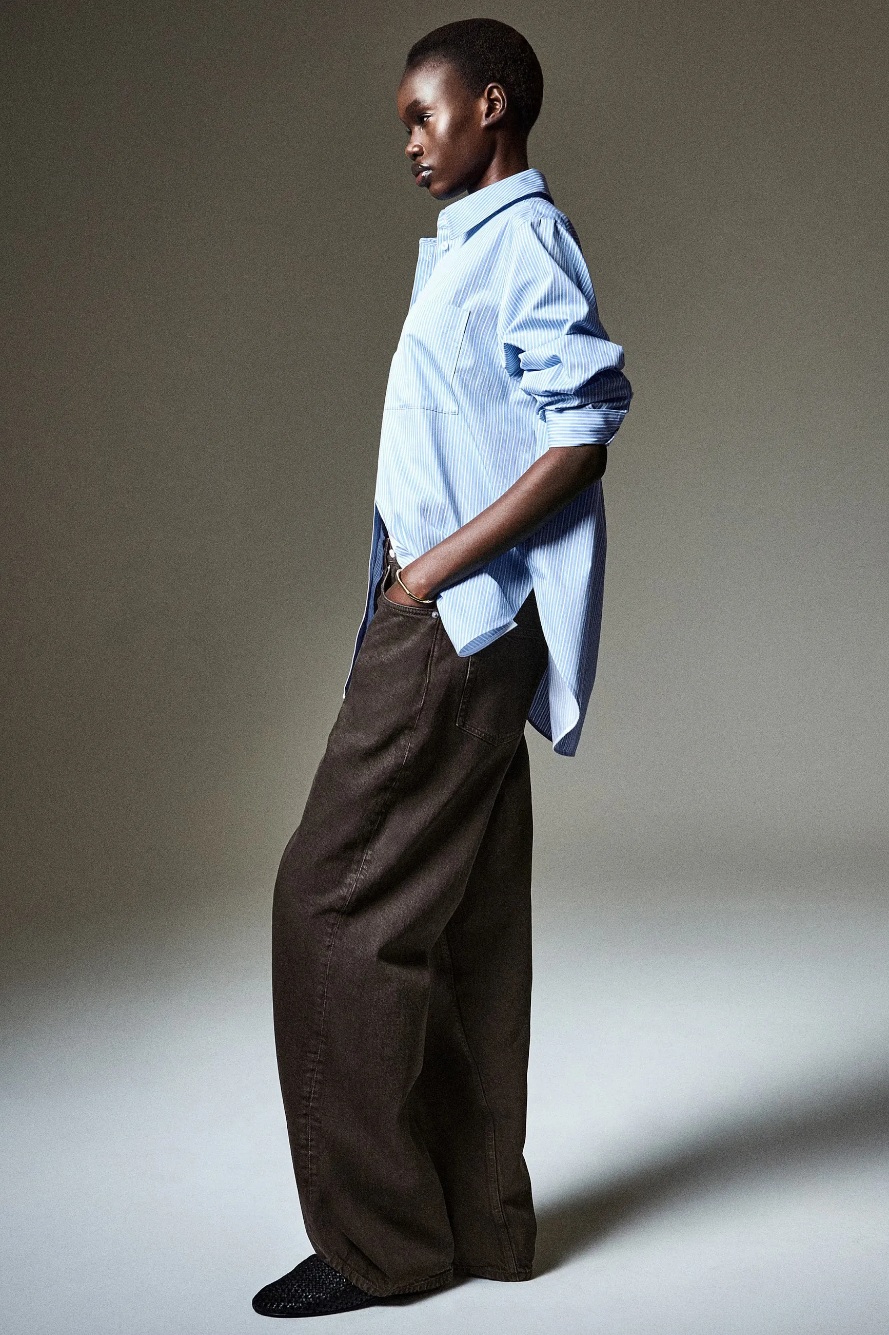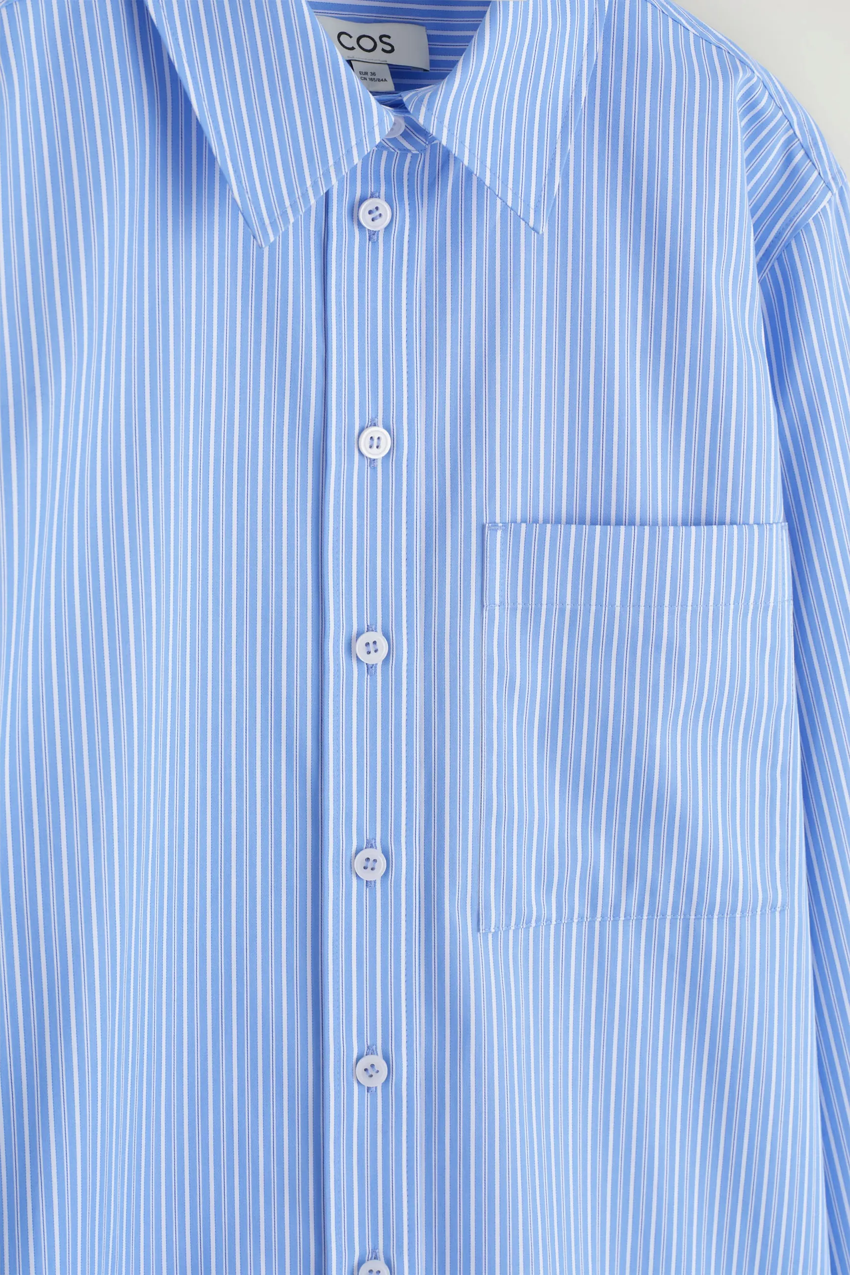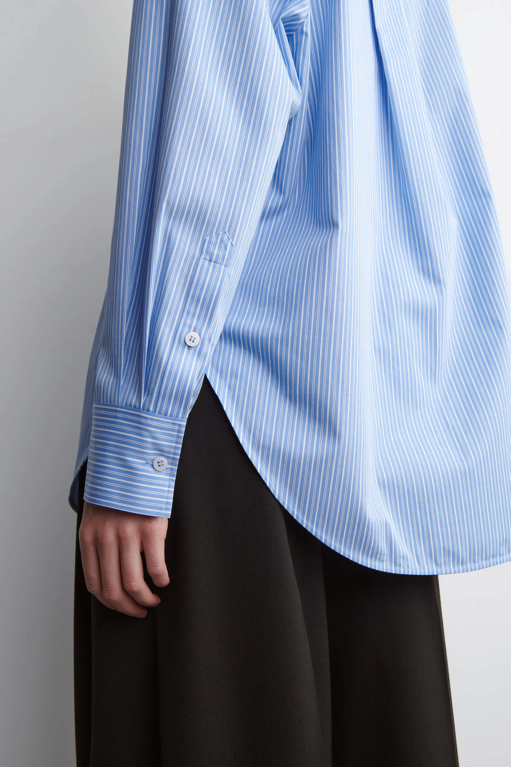 В этом сезоне женская команда модного бренда представляет современный взгляд на классический крой. Эта классическая элегантная рубашка в тонкую полоску выполнена из ультрамягкого хлопка пима. Она имеет накладной нагрудный карман, манжеты на пуговицах и закруглённый подол.