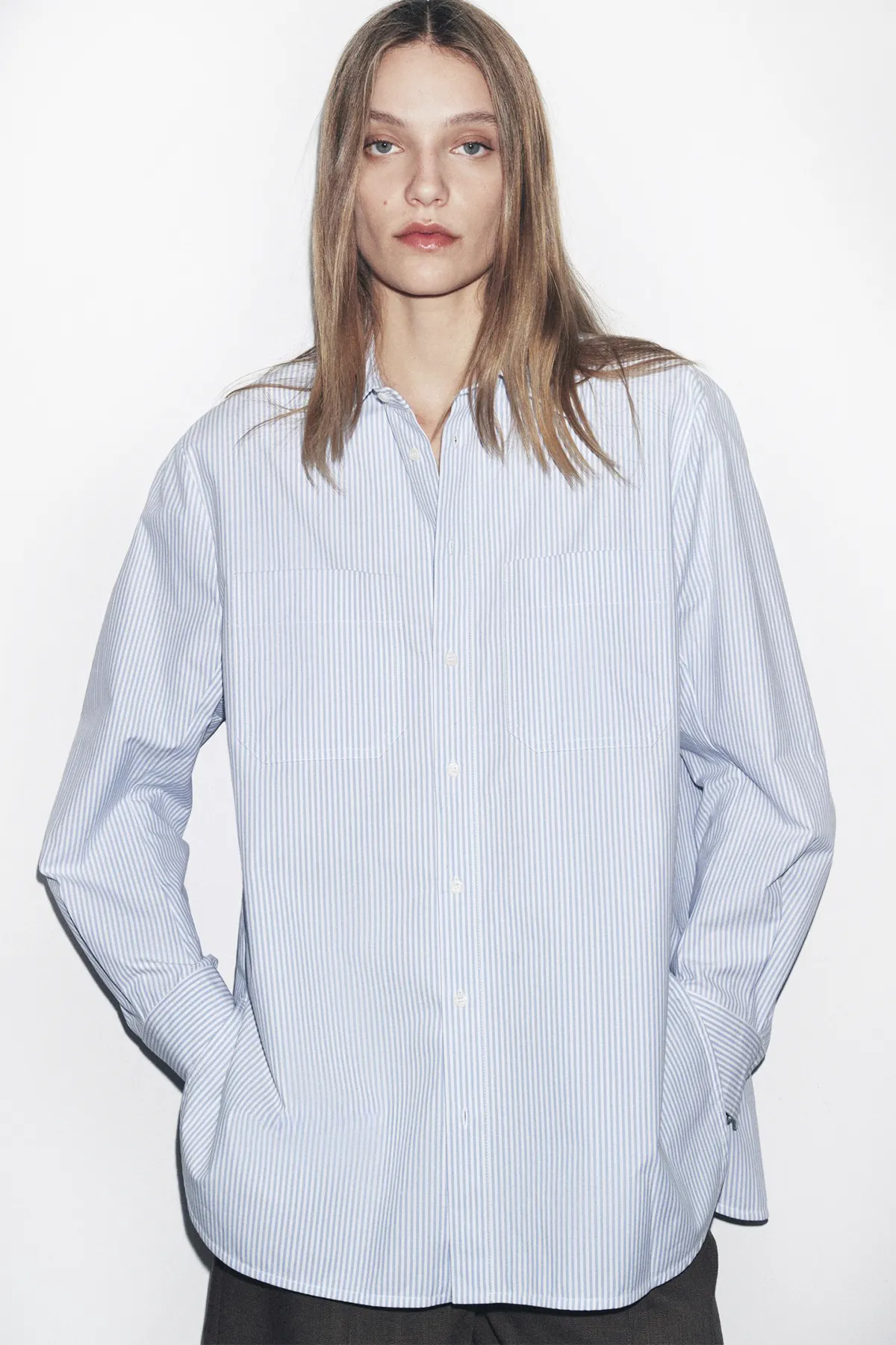 Рубашка в полоску с карманами ZARA