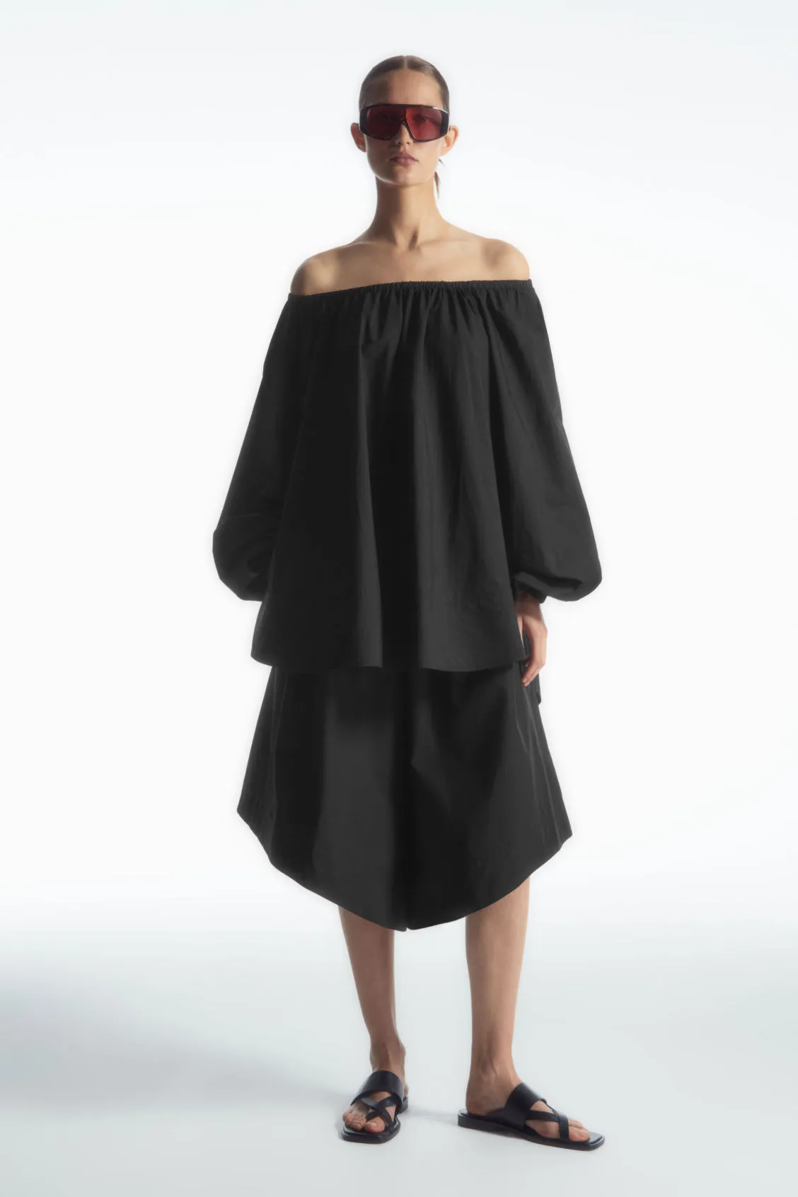Неожиданные и в то же время сдержанные, эти свободные хлопковые шорты используют технику работы с тканью, чтобы создать фактурный, объемный силуэт. Изогнутые манжеты спускаются вниз к штанине, придавая уникальную форму, которая округляет широкую ногу. Благодаря этой форме шорты можно носить как днем, так и вечером. Носите их с подходящей блузкой.