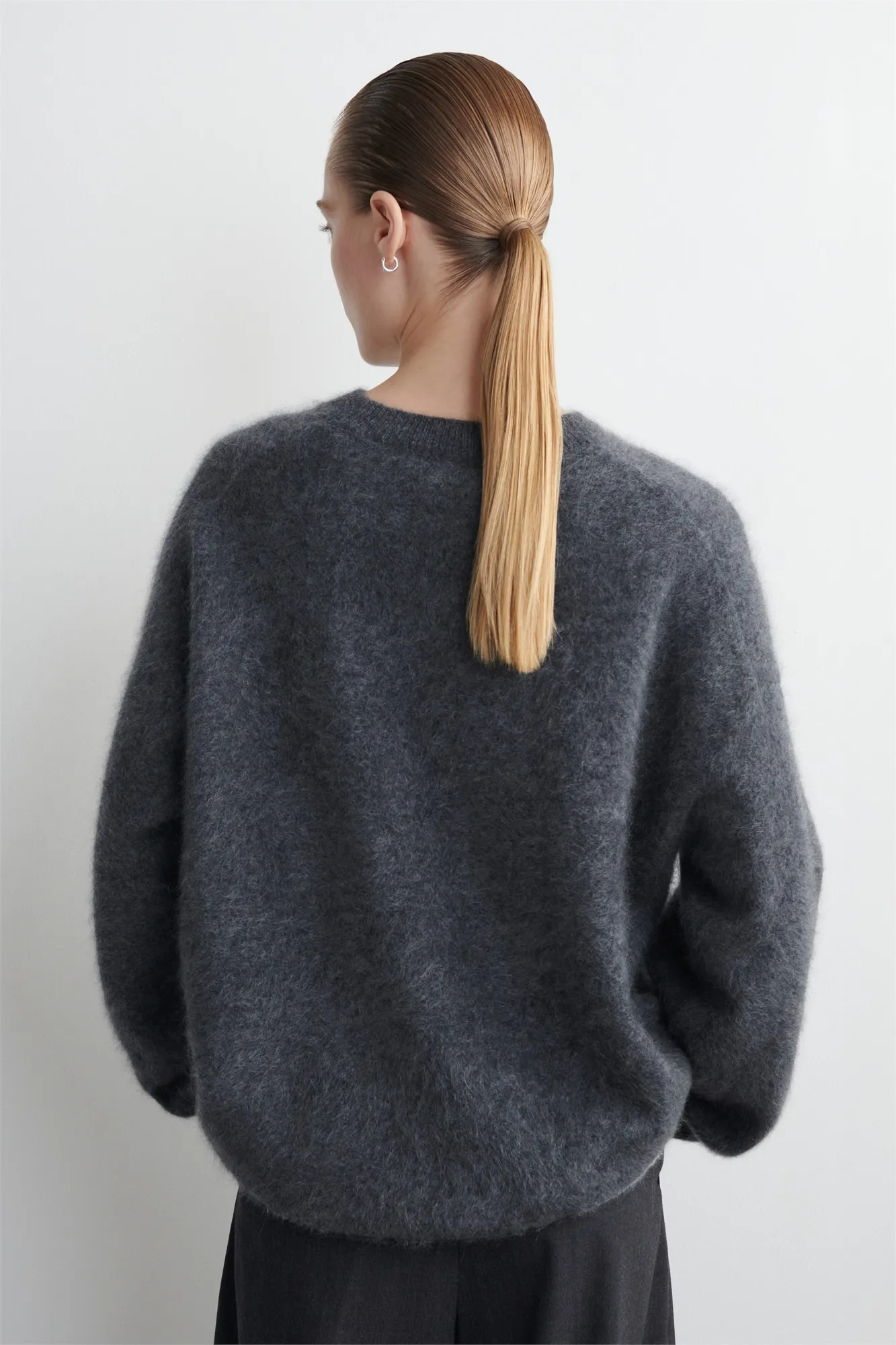 Классический джемпер с круглым вырезом обновлён в фактурной гамме к коллекции осень/зима 2025. Этот джемпер связан из кашемира Good Cashmere Standard®, прошедшего процедуру чесания для придания мягкости и эластичности. Тёмно-серый цвет позволяет легко сочетать его с другими вещами вашего гардероба.
