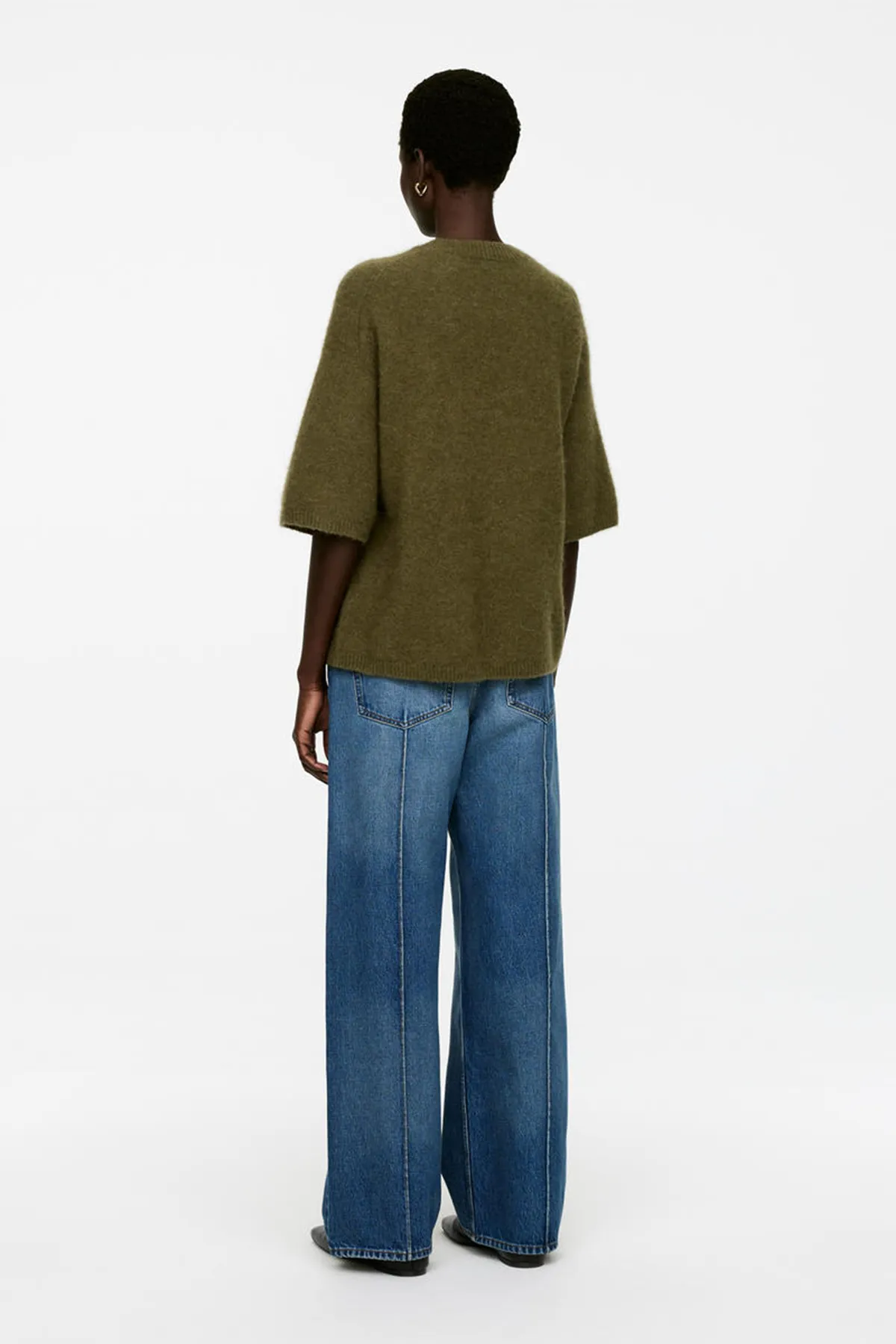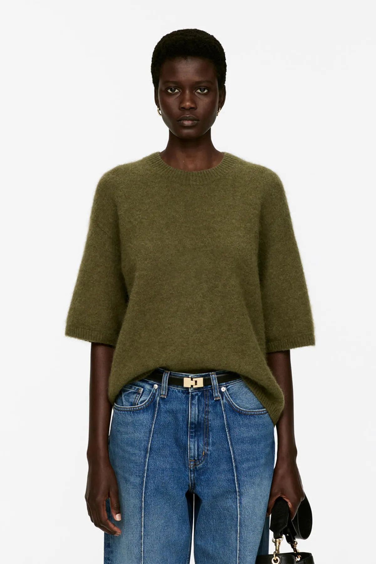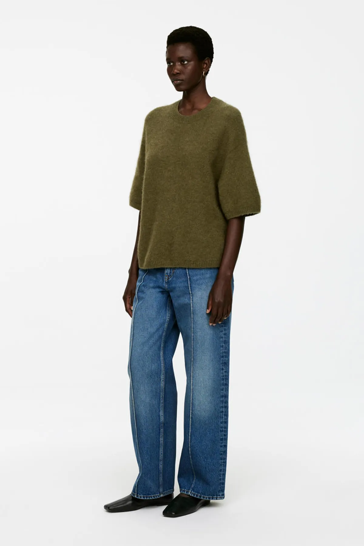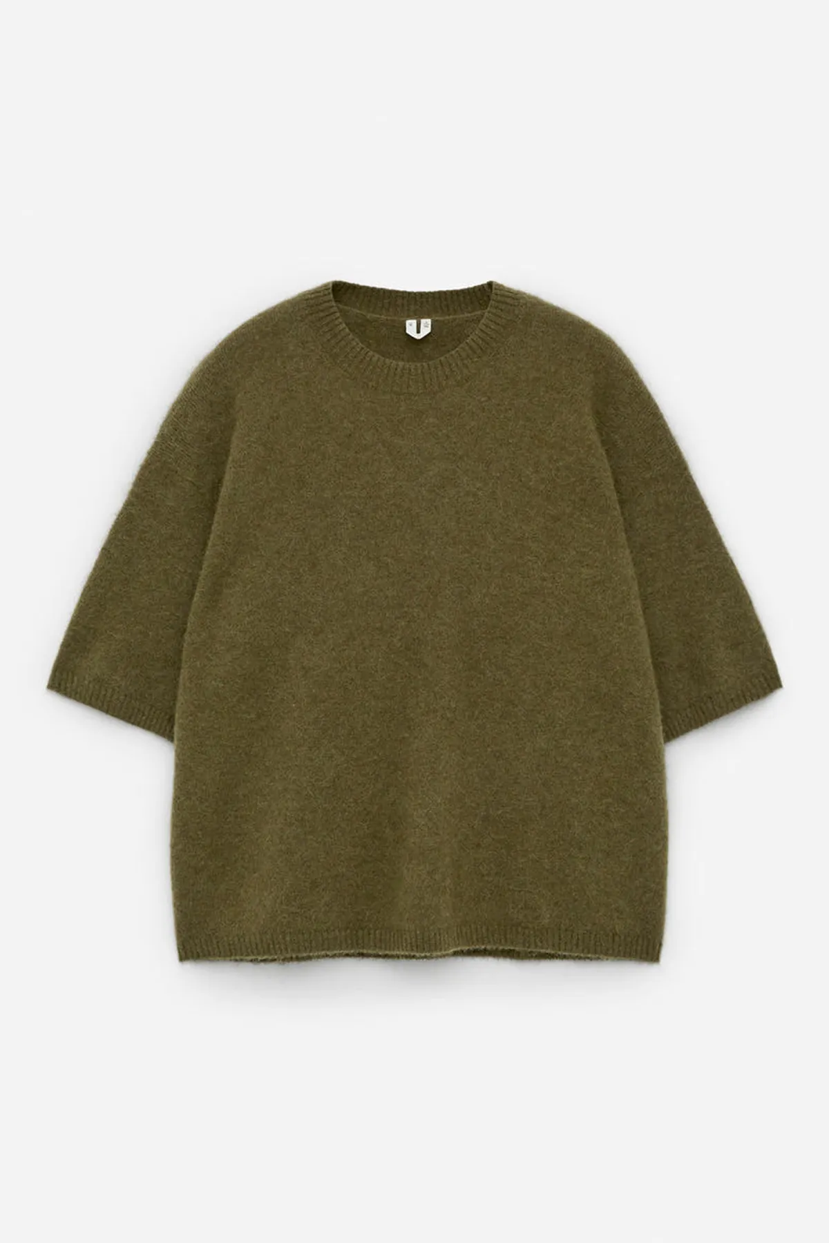 Джемпер с короткими рукавами из альпаки и шерсти, обеспечивающих комфорт. Модель с круглым вырезом и свободным кроем. Ребристая отделка дополняет образ.
