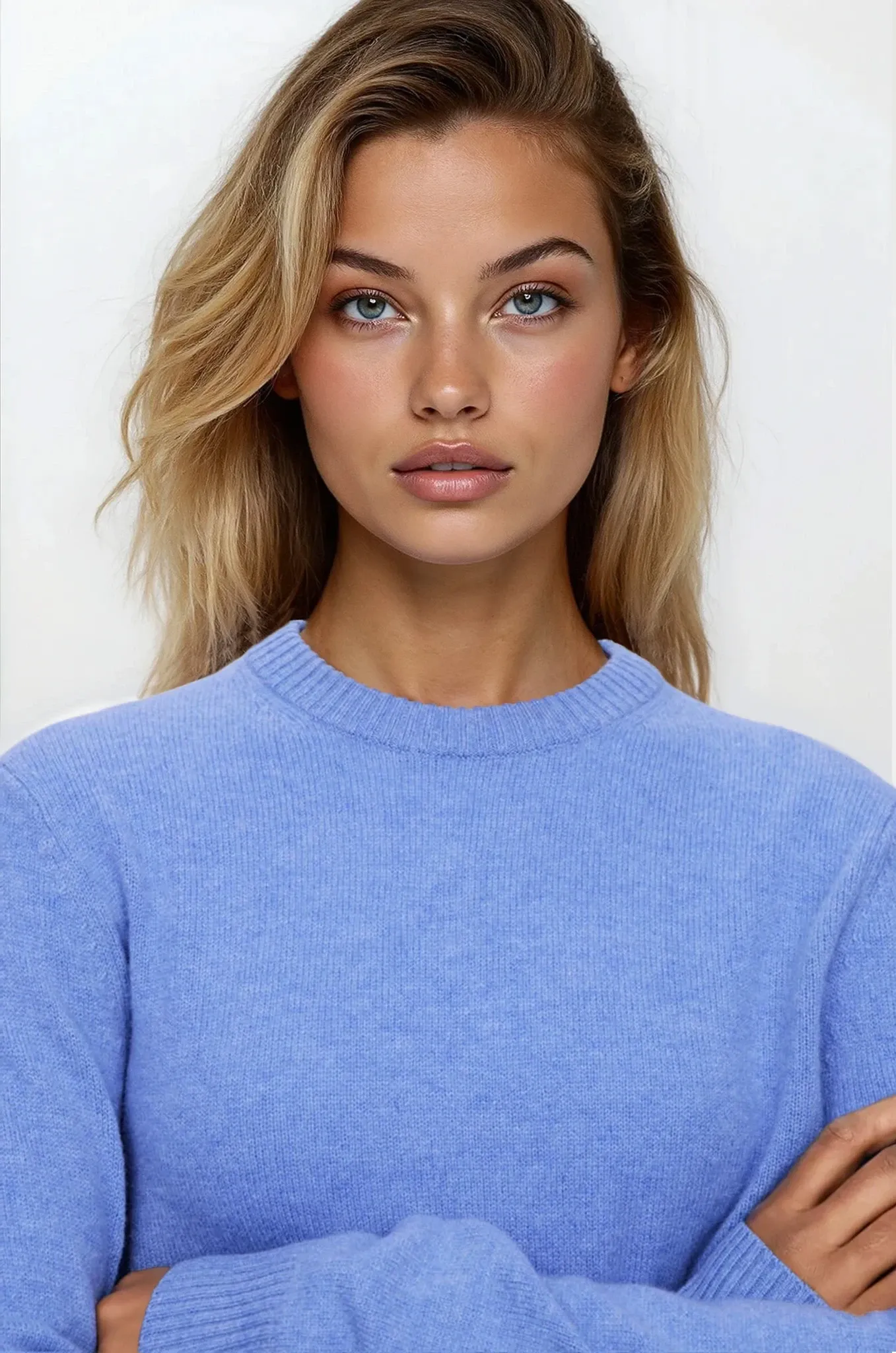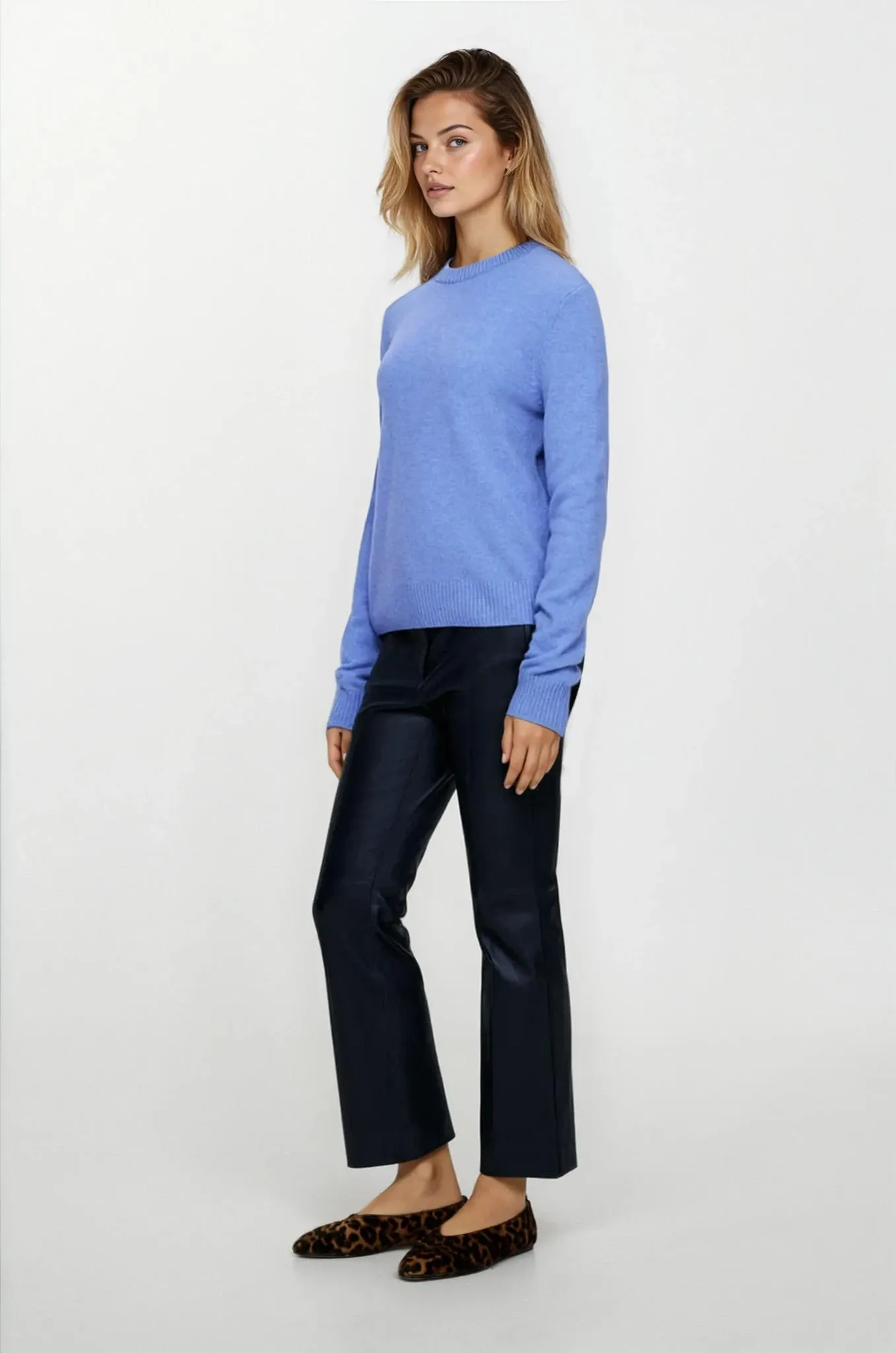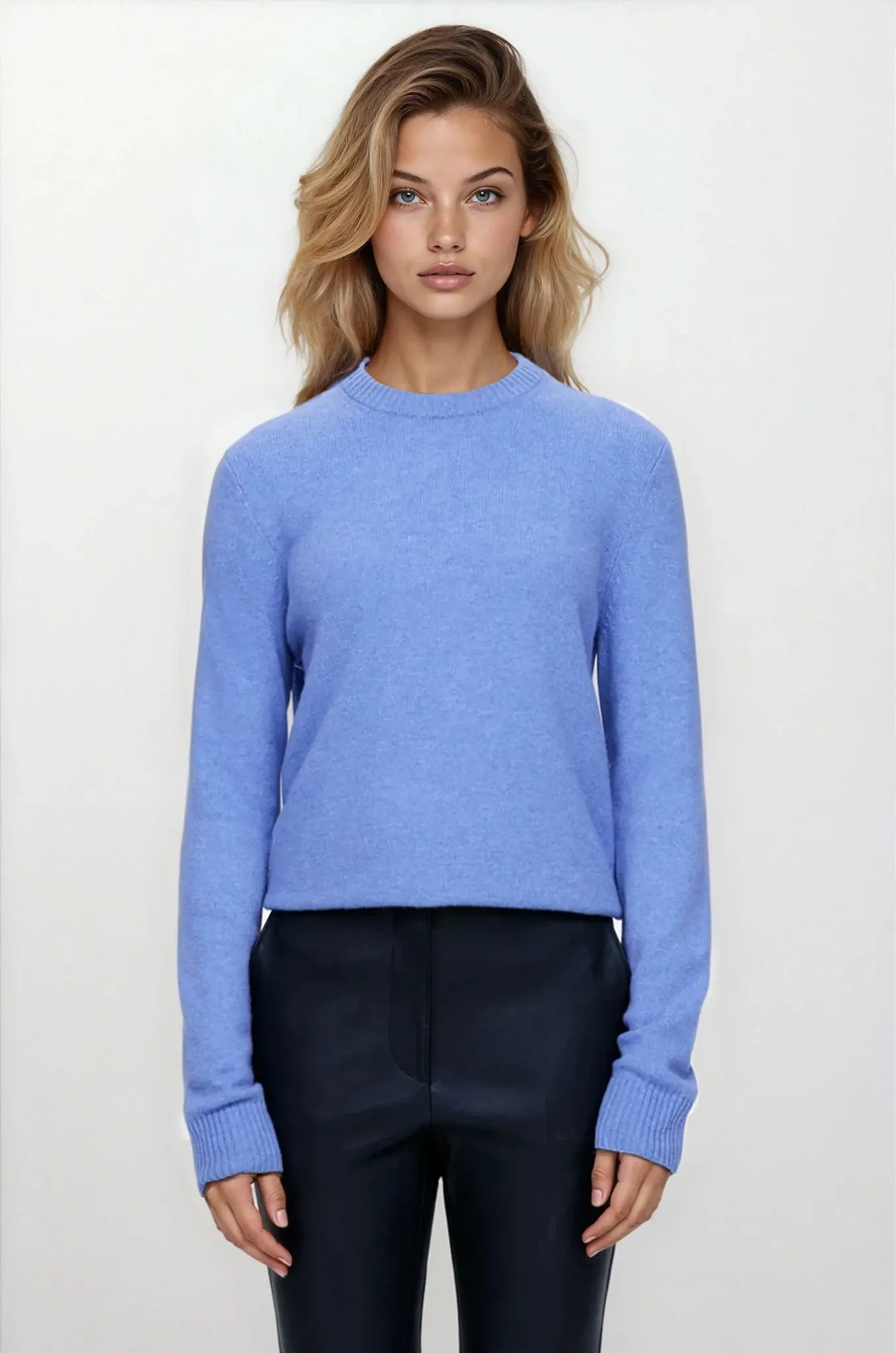 Джемпер с круглым вырезом из шерсти. Длинные рукава и классический крой.