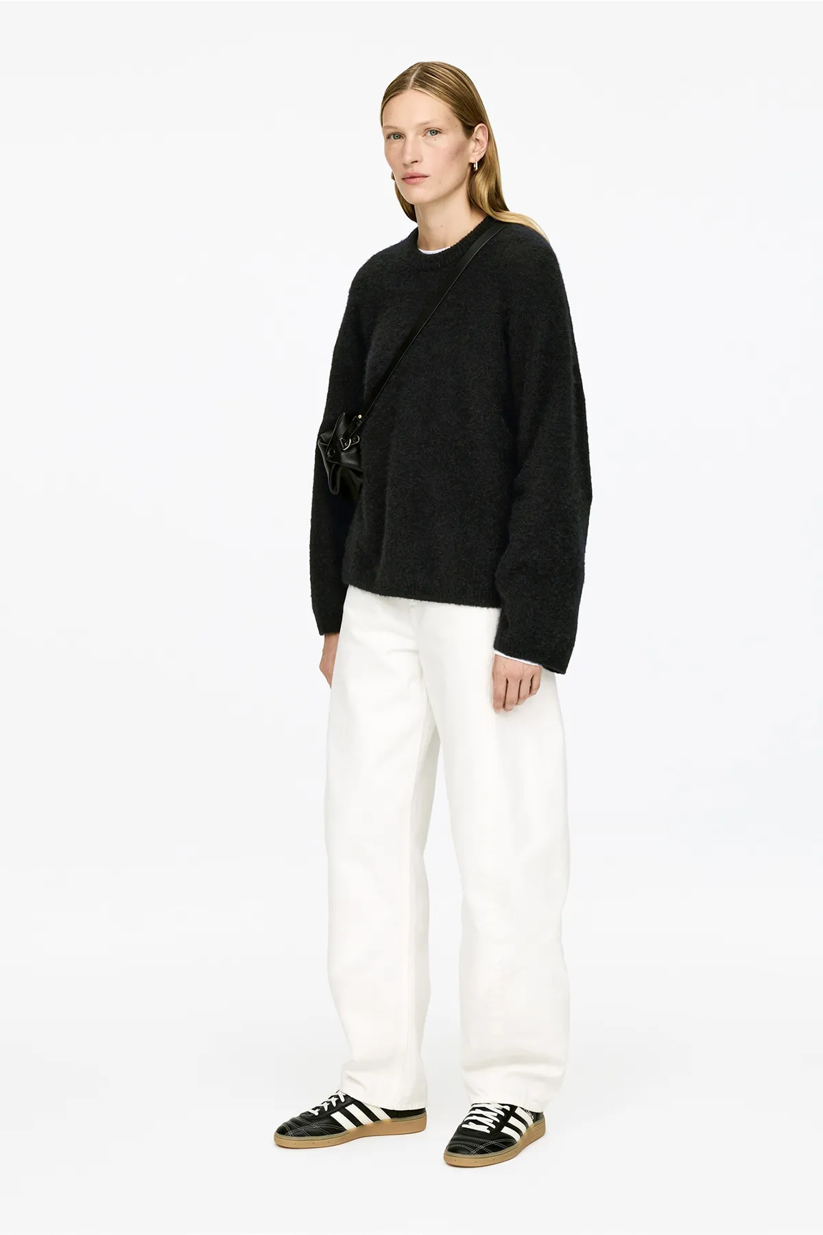 Пушистый свободный джемпер из комфортной смеси альпаки и шерсти. Ребристые края дополняют образ. Джемпер изготовлен из 31% шерсти альпаки, сертифицированной RAS, и 31% шерсти, сертифицированной RWS (TE-00047206).