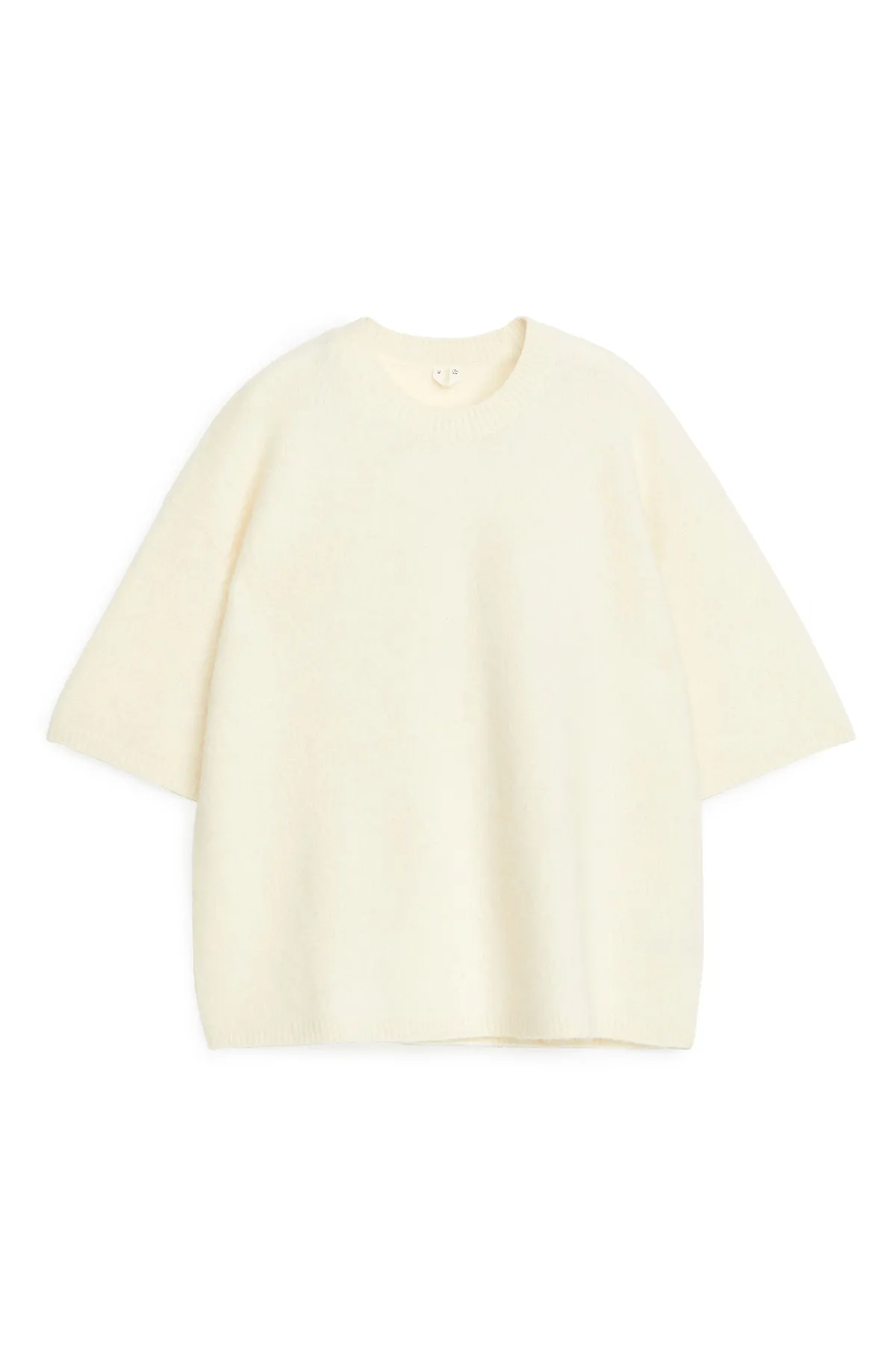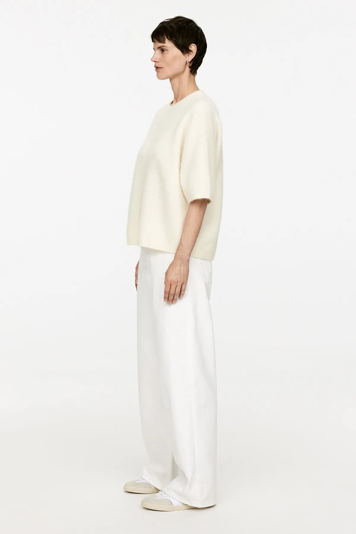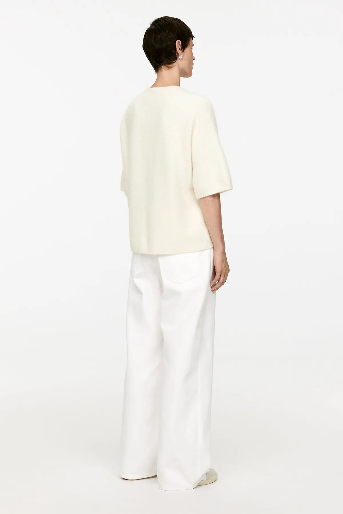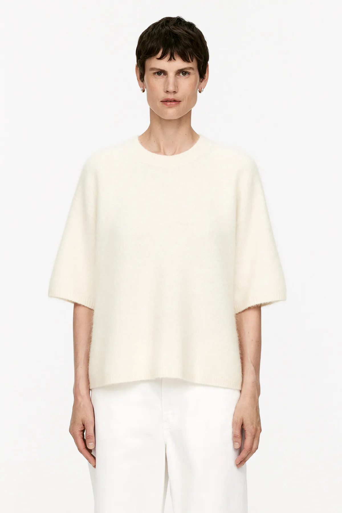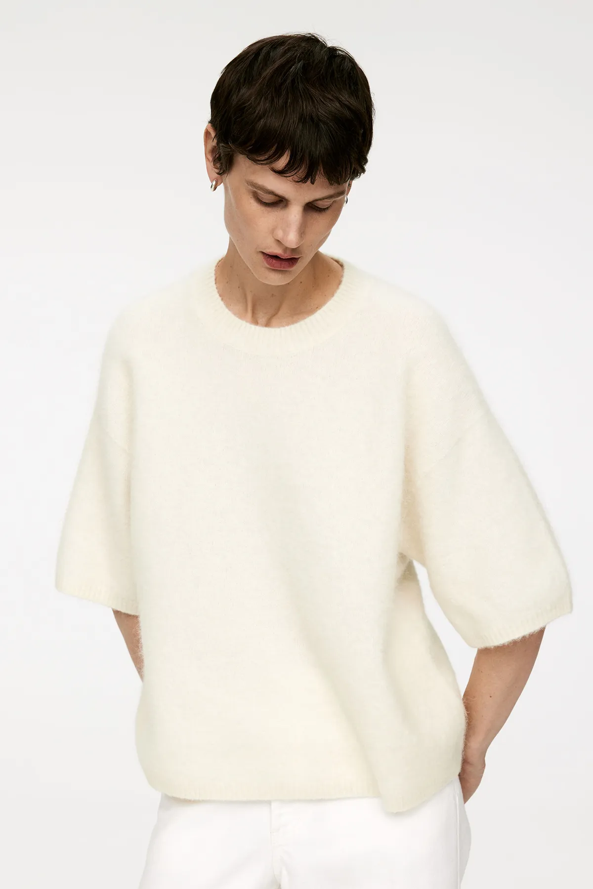 Джемпер с короткими рукавами изготовлен из комфортной смеси шерсти и альпаки. Модель имеет круглый вырез и свободный крой. Ребристые края завершают образ. Свитер на 31% изготовлен из шерсти, сертифицированной RWS (TE-00047206). Продукты, сертифицированные по стандарту ответственной шерсти (RWS), содержат шерстяные волокна с ферм, которые независимо сертифицированы на соответствие требованиям защиты животных и землепользования.