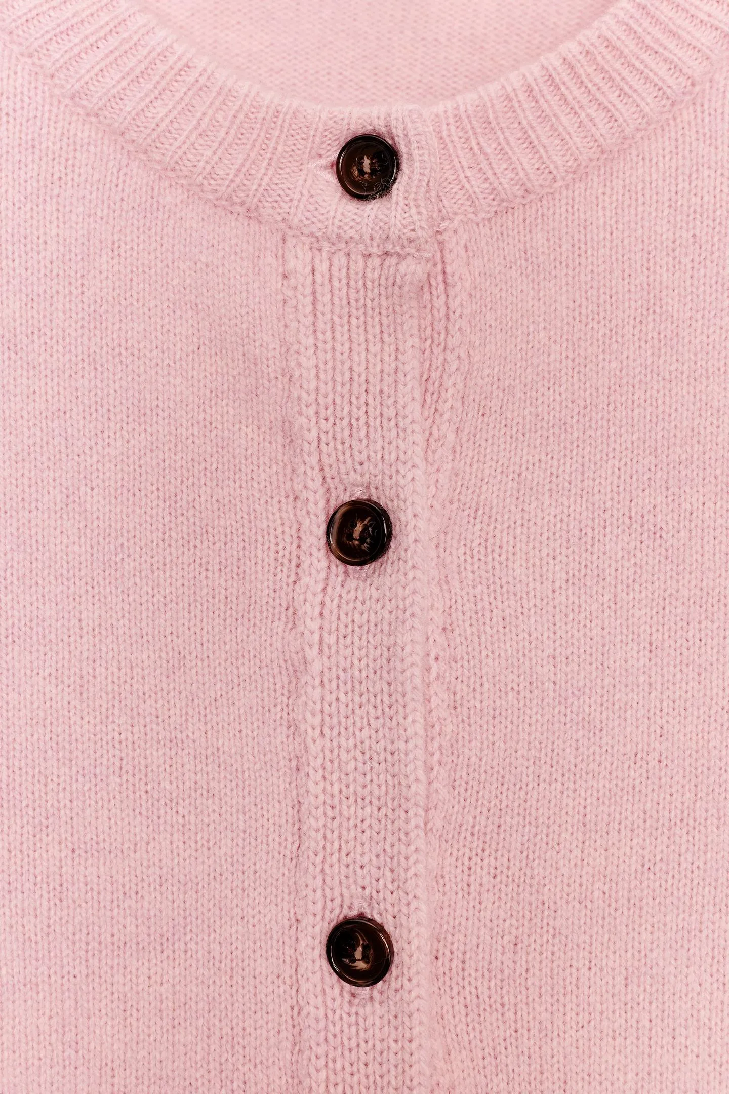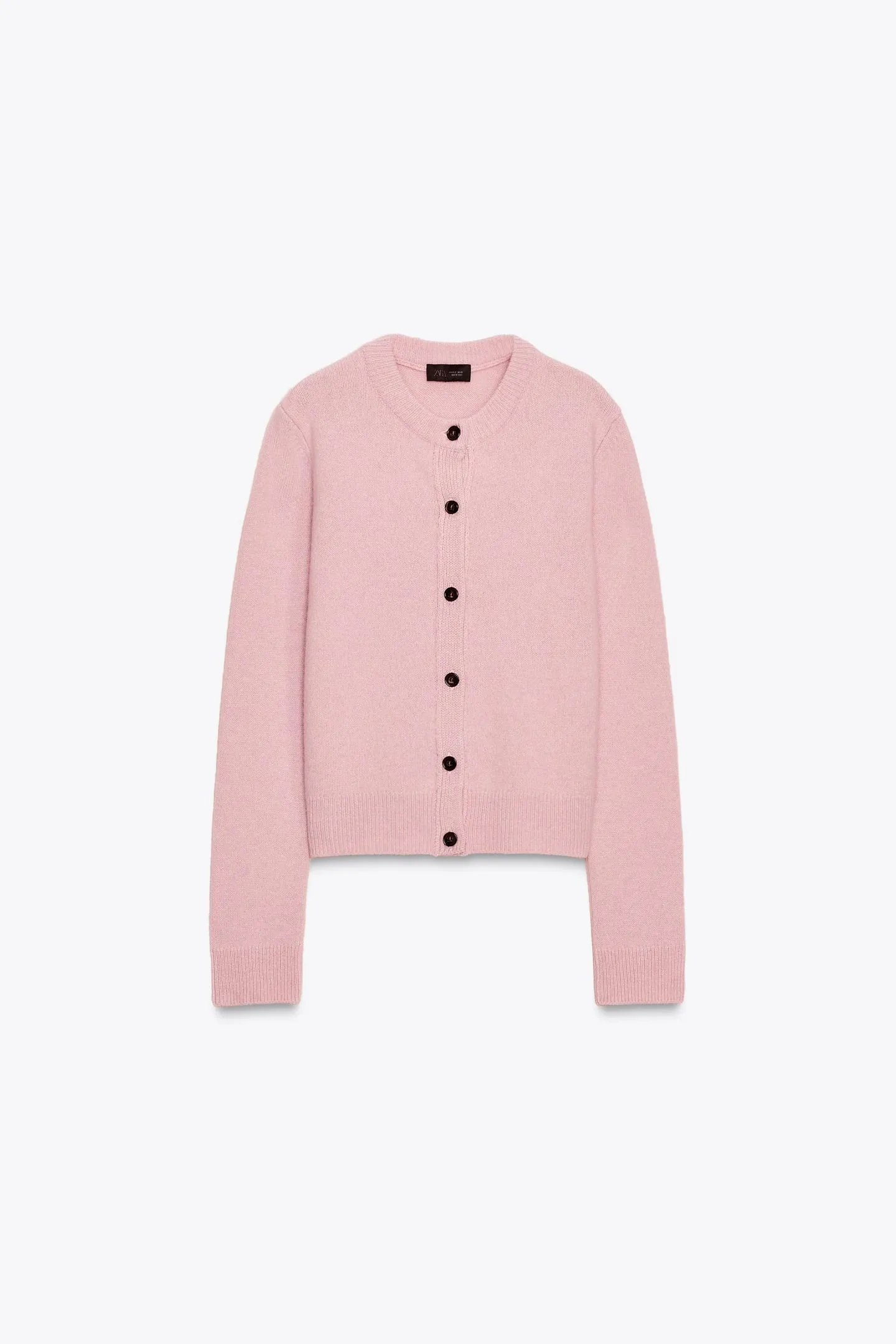 Кардиган из кашемира и шерсти. Круглый вырез горловины и длинные рукава. Ребристая отделка. Застежка на пуговицы спереди.