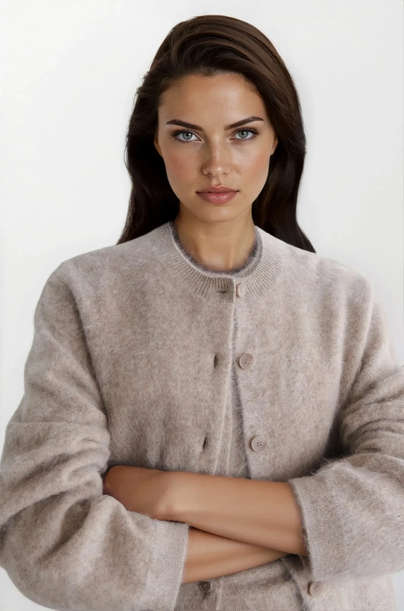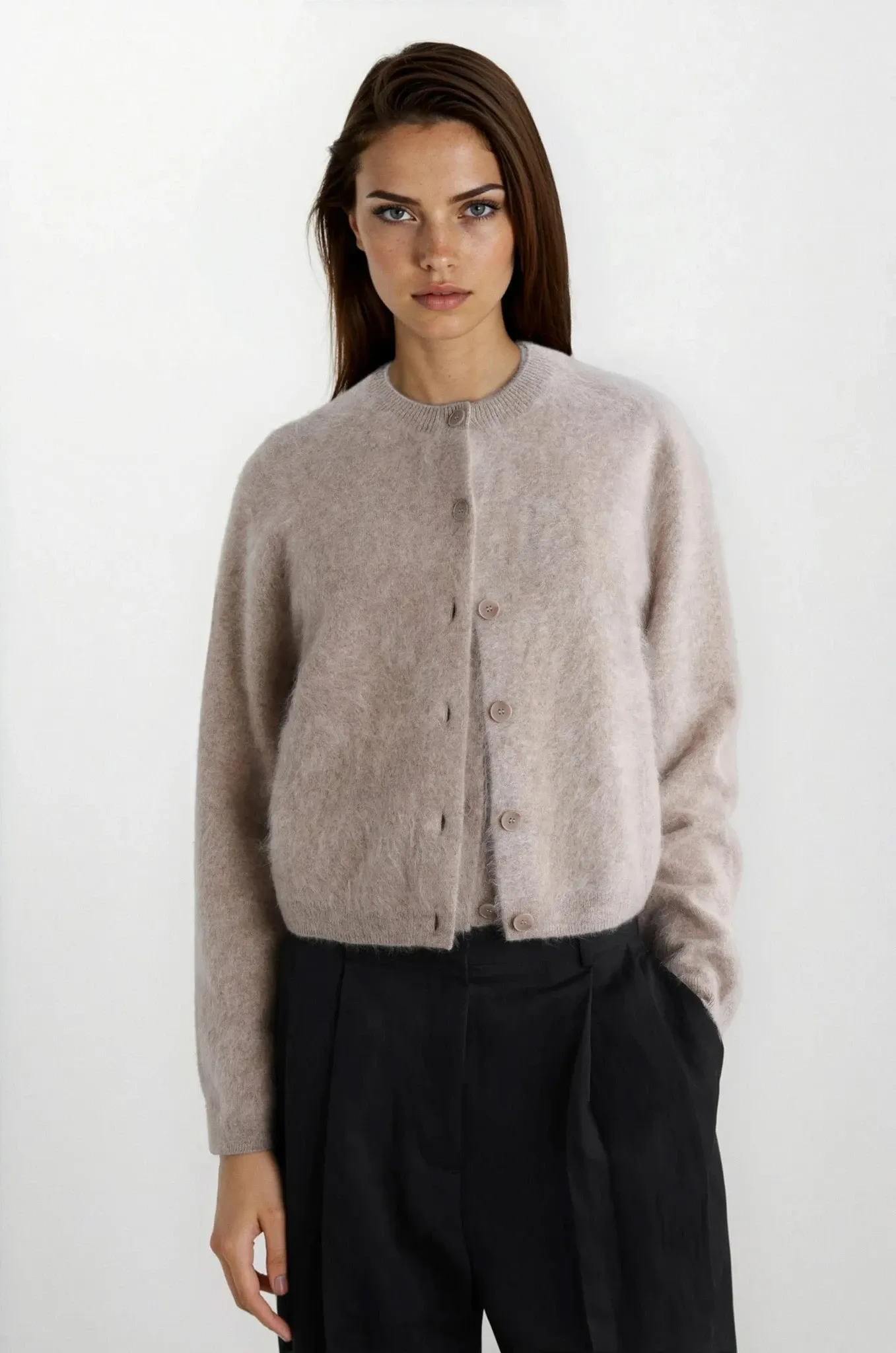 Классический кардиган с круглым вырезом обновлён в коллекции Pre-Fall 2025. Эта модель выполнена из кашемира, сертифицированного GCS, с начёсом, обеспечивающим мягкость и свежесть. Светло-коричневый оттенок позволяет сочетать его с множеством образов в вашем гардеробе. Носите кардиган отдельно или с подходящим жилетом .
